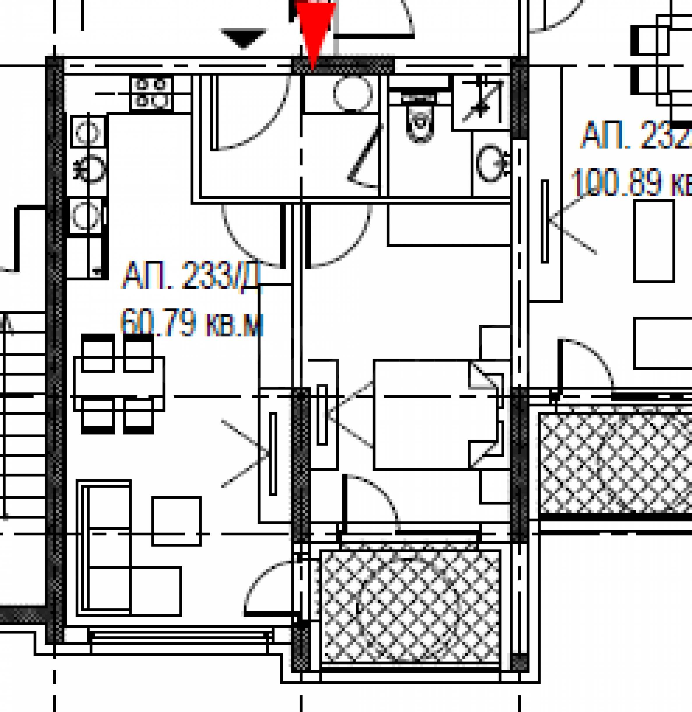 The property is located on the 2nd floor and has a total area of 70.24 m2, net area - 60.79 m2, on which are distributed: entrance hall, bathroom with toilet, living room with kitchen, terrace, one bedroom. The apartment is being rented out in a degree of completion according to BDS, with five-chamber PVC joinery Rehau, with triple glazing and an armored entrance door.