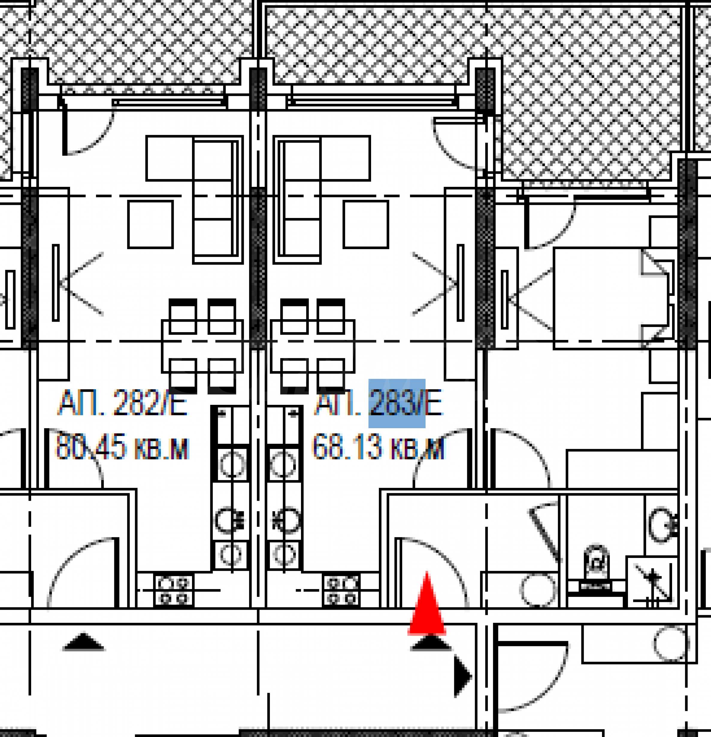 The property is located on the 2nd floor and has a total area of 78.72 m2, net area - 68.13 m2, on which are distributed: entrance hall, bathroom with toilet, living room with kitchen, terrace, one bedroom. The apartment is being rented out in a degree of completion according to BDS, with five-chamber PVC joinery Rehau, with triple glazing and an armored entrance door.