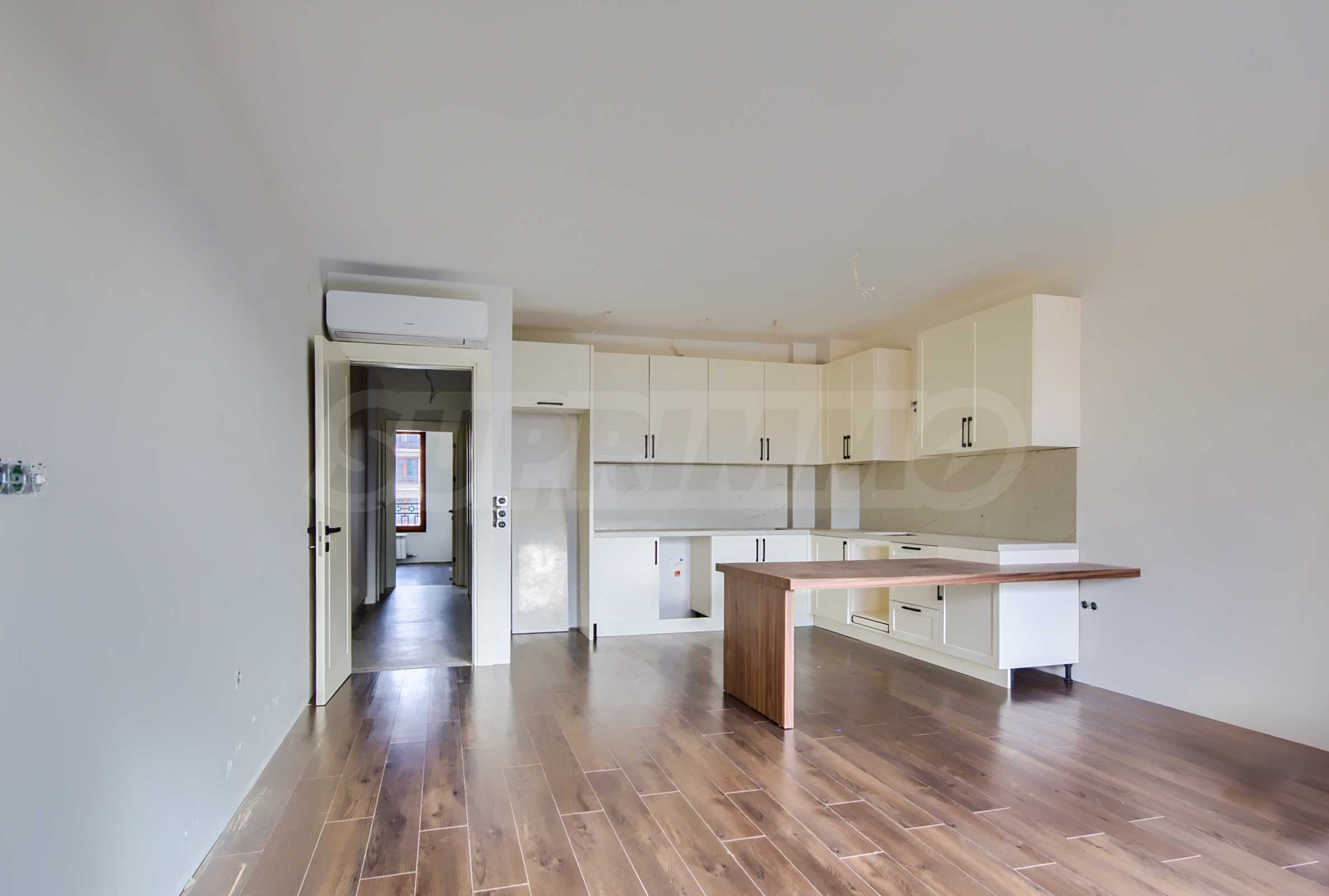 The apartment is completed "turnkey", with fully equipped bathrooms and a fitted kitchen, without furniture and white goods - an ideal basis for the future owner to finish the interior to his own taste.