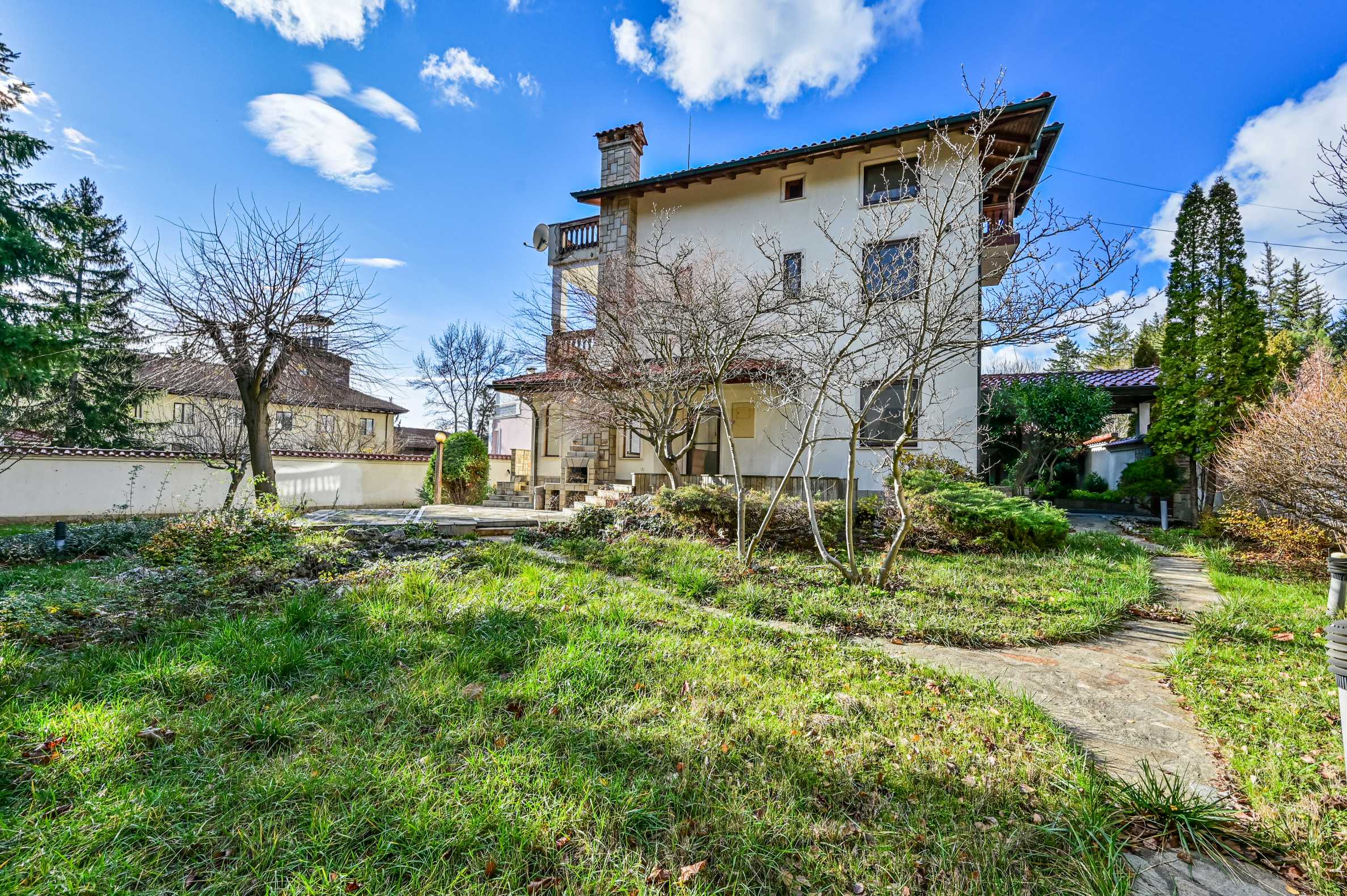 The garden is beautifully landscaped, level and maintained, offering ideal conditions for relaxation, family gatherings and living amidst nature, combining comfort, privacy and prestige.