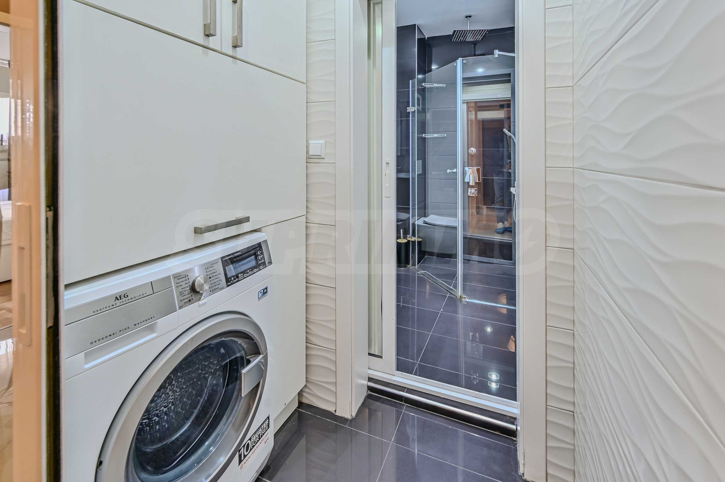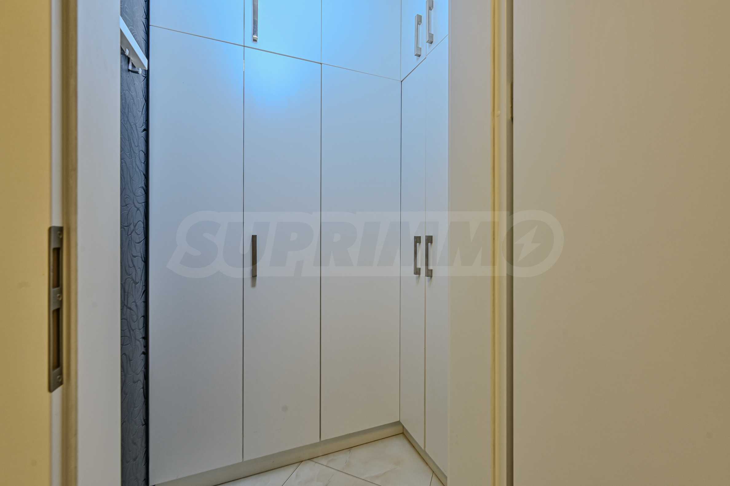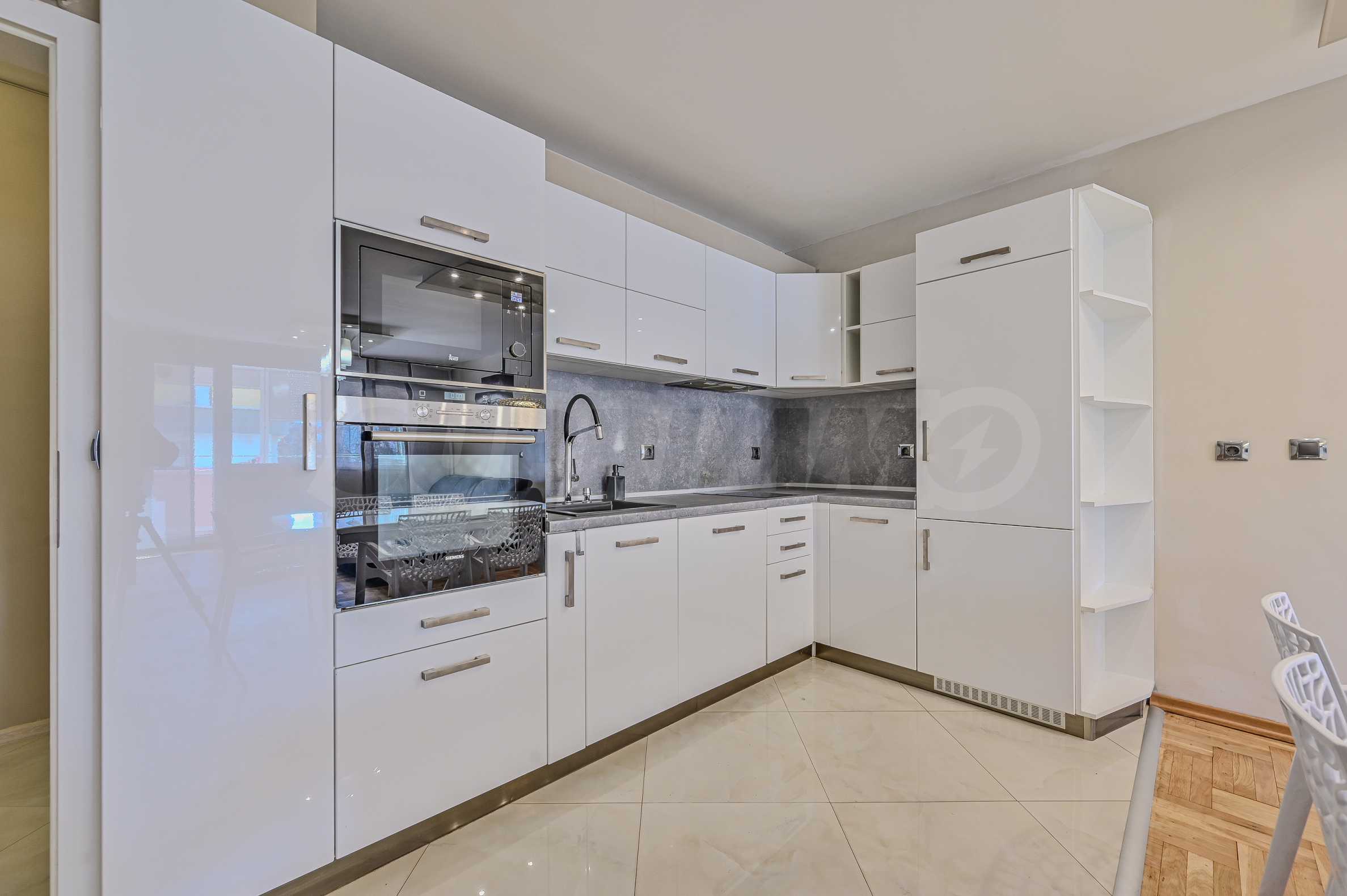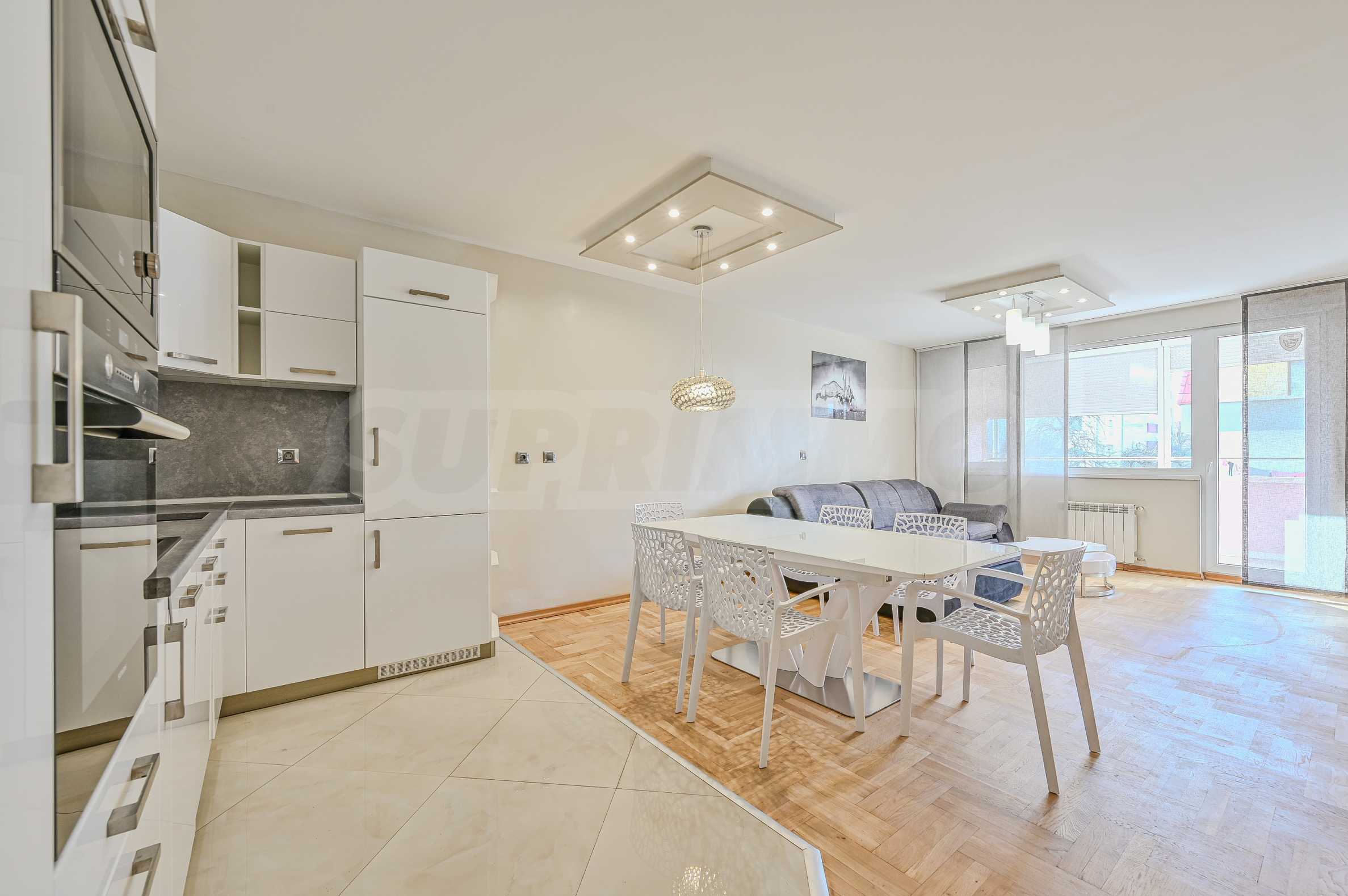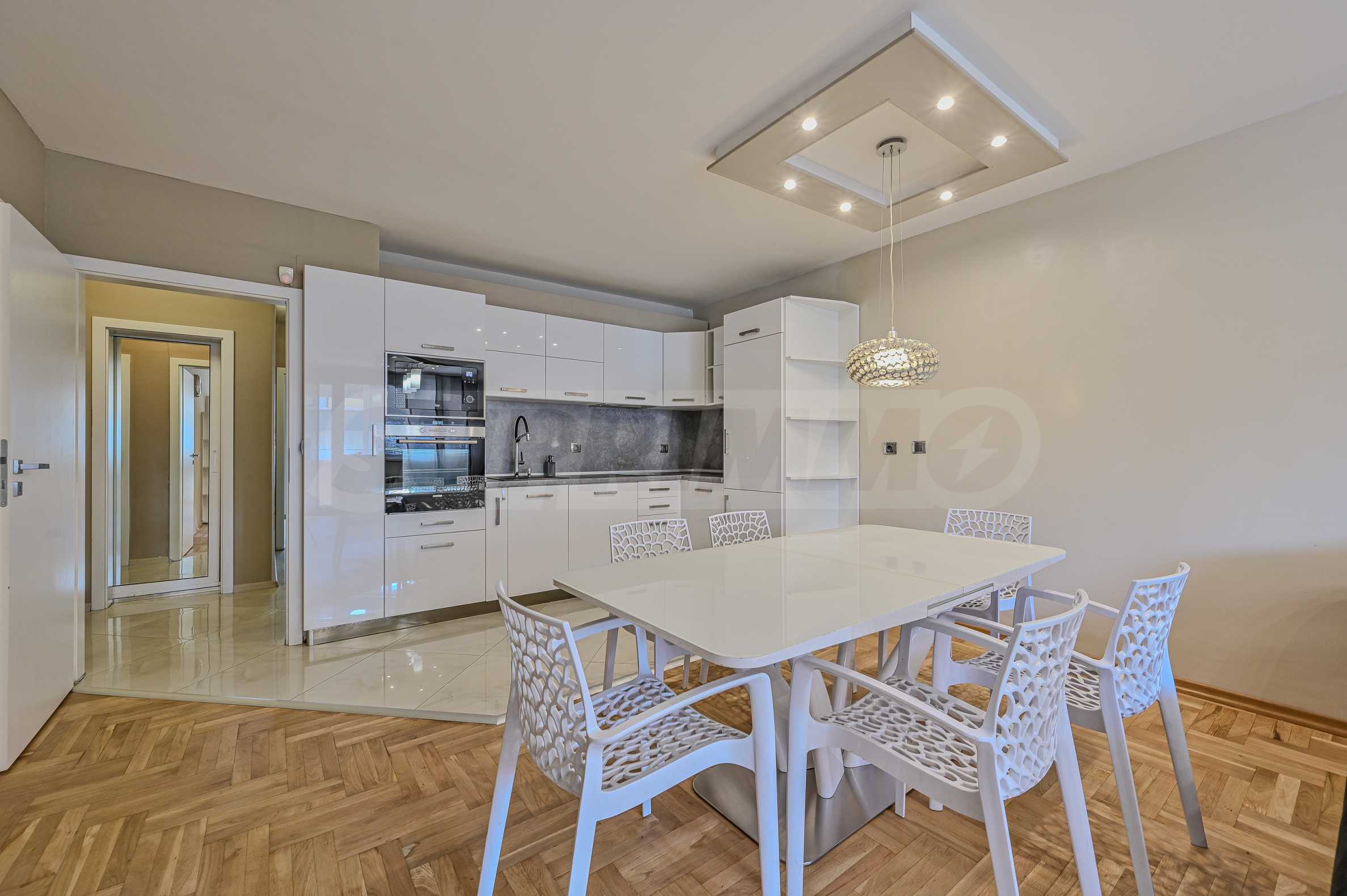 We present to you a three-room apartment with an area of 110 m2. located on the 2nd floor in a well-maintained residential building on a quiet and preferred street in the Geo Milev district. The apartment impresses with a huge living room, excellent functionality and lots of natural light. It is being rented fully furnished and equipped, with the interior filled with modern and high-quality furniture and appliances.