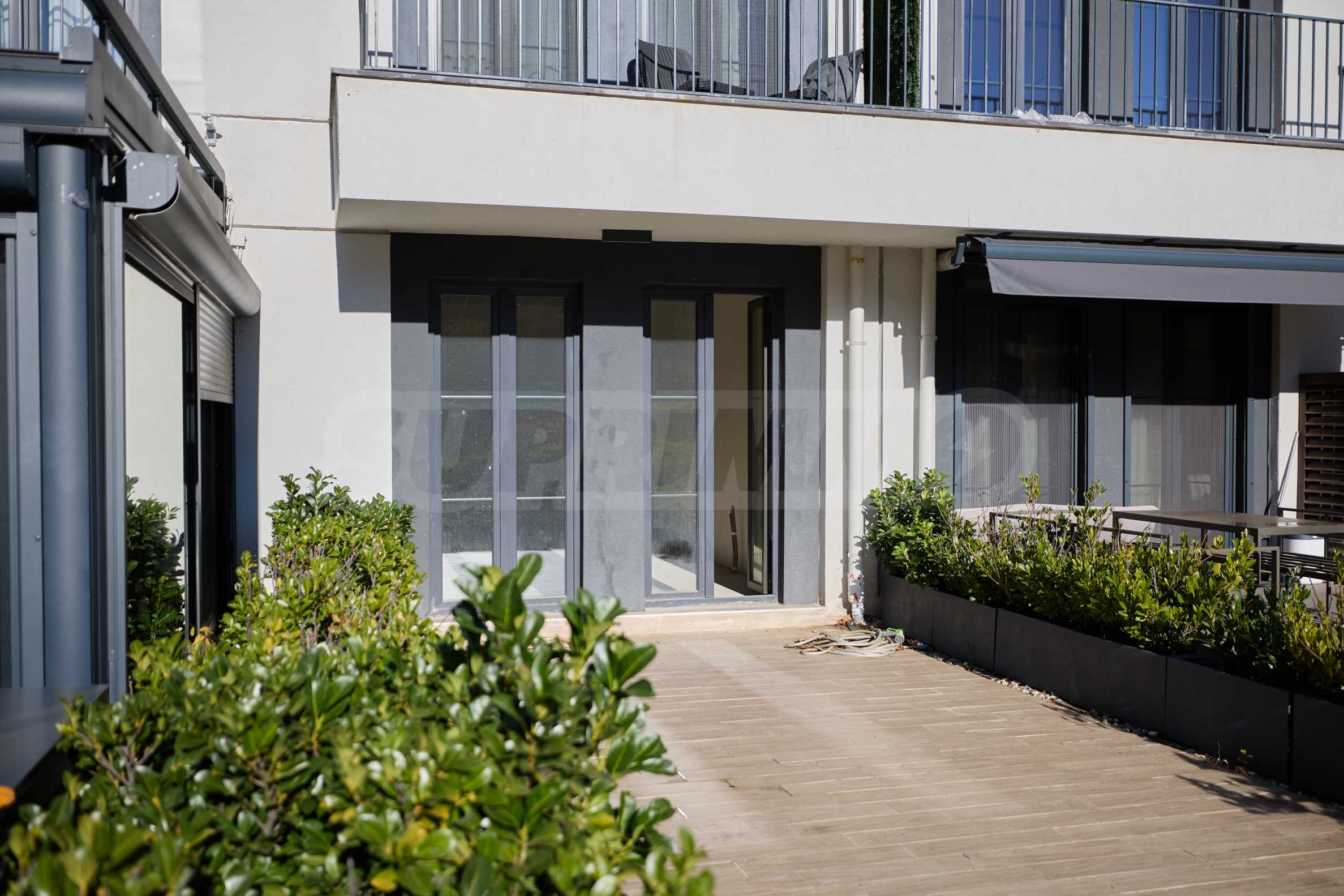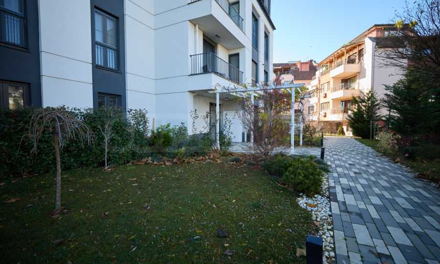 We present a two-bedroom apartment with an adjoining yard in the Dragalevtsi district, located in the gated residential complex Residence Dragalevtsi at the foot of Vitosha Mountain. The area is distinguished by a quiet and green environment, combined with convenient access to main city connections. Close by are the Ring Road, Aleko Ski Area, Paradise Center, as well as a number of well-established educational institutions, including the Victor Hugo French School, the British School and ESPA.