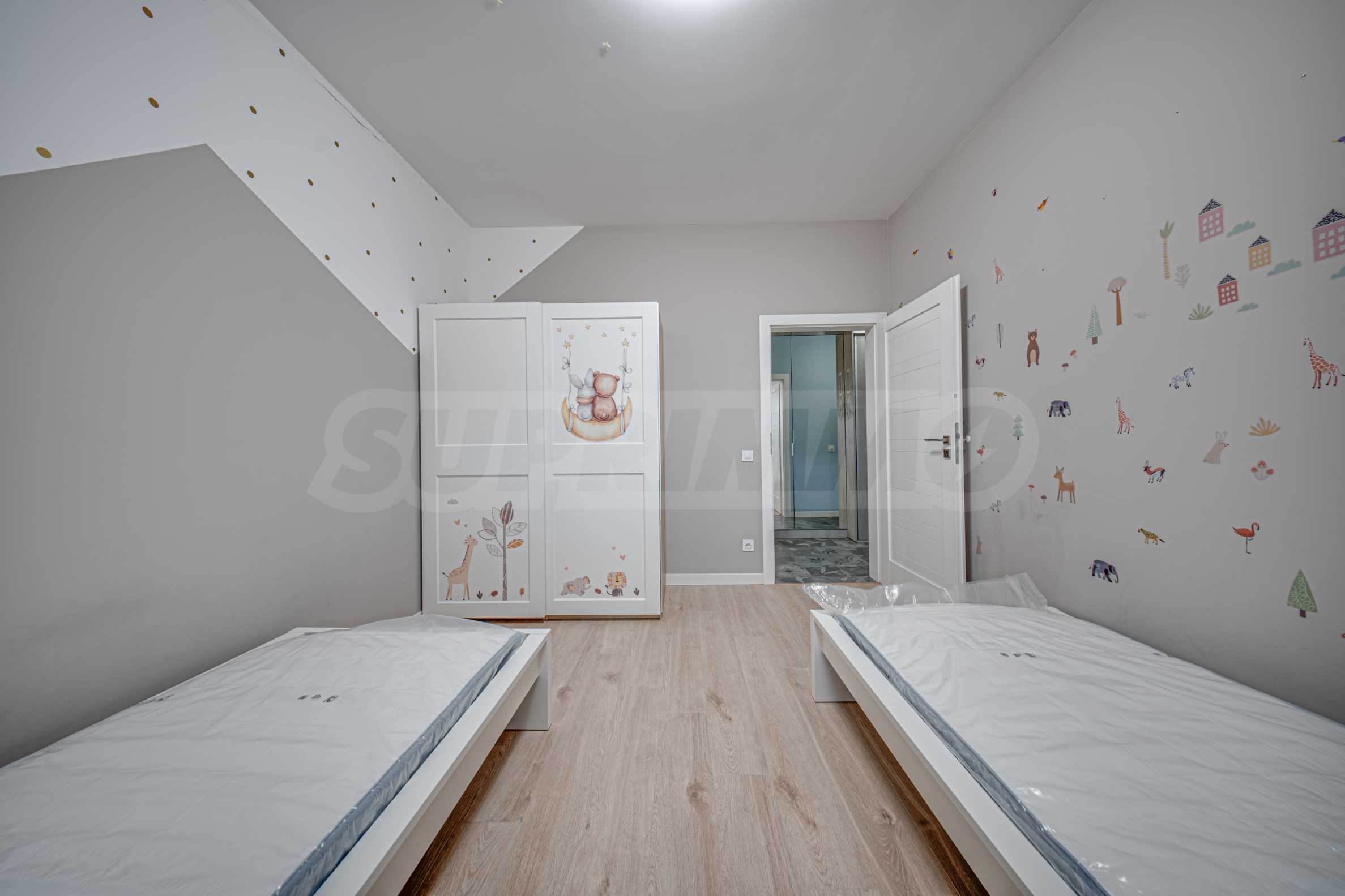 The bedrooms are equipped with top-of-the-line sleep systems, upholstered beds, large built-in wardrobes and separate work areas.