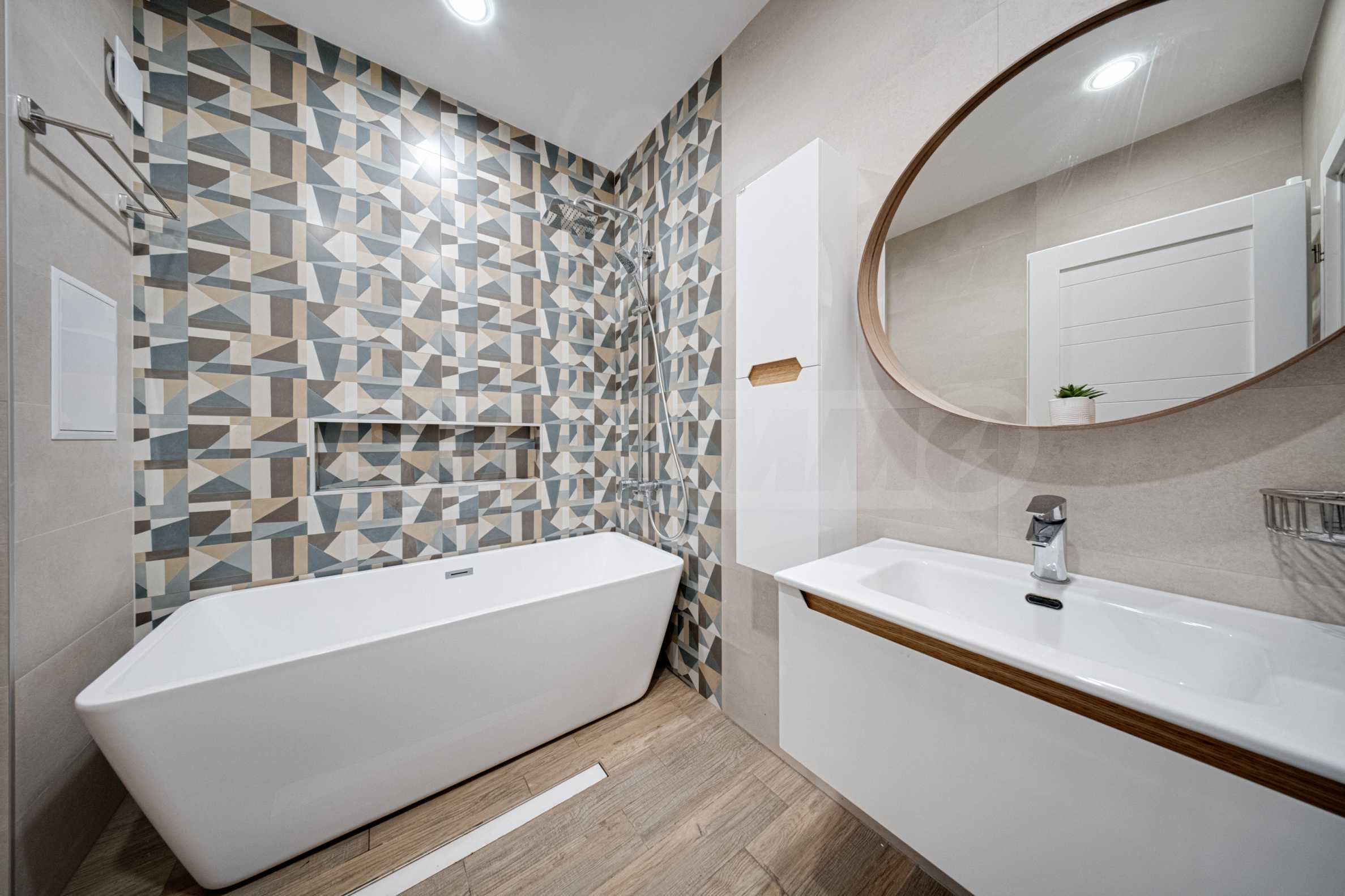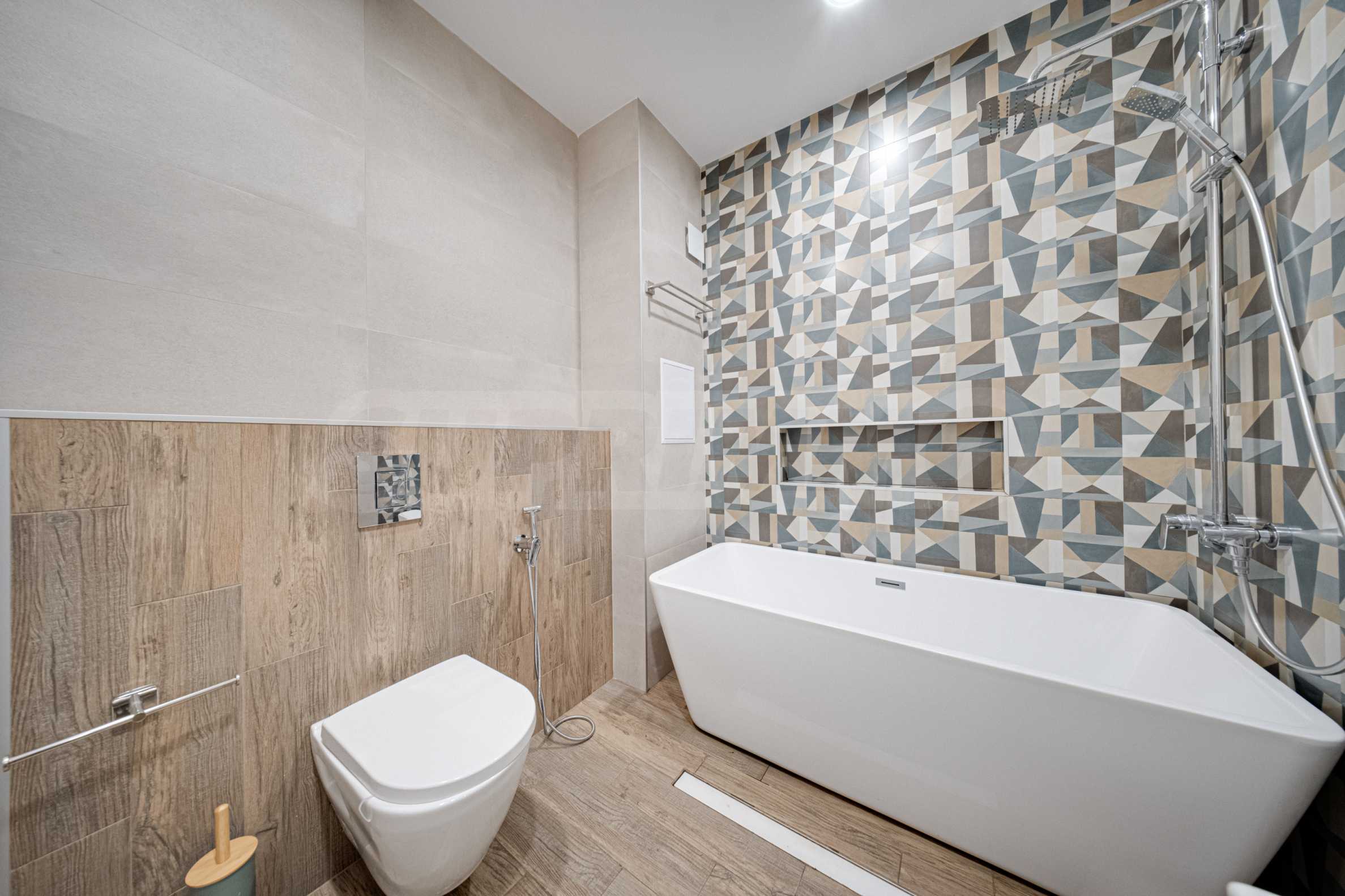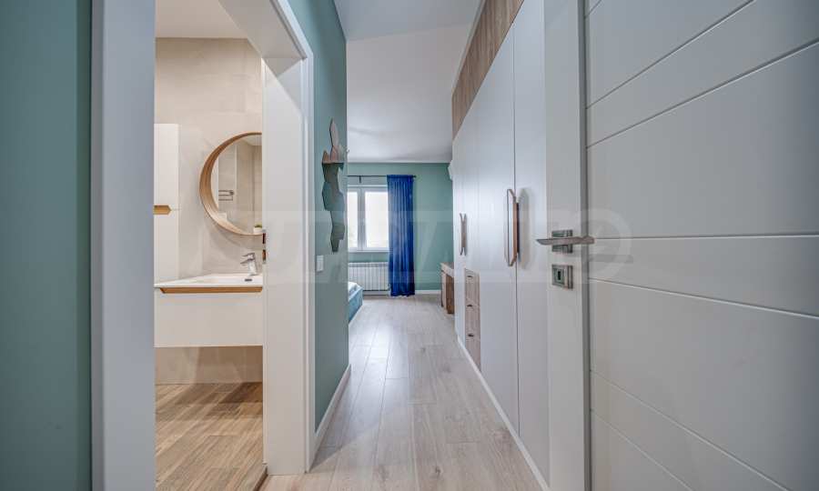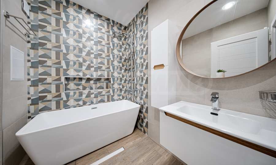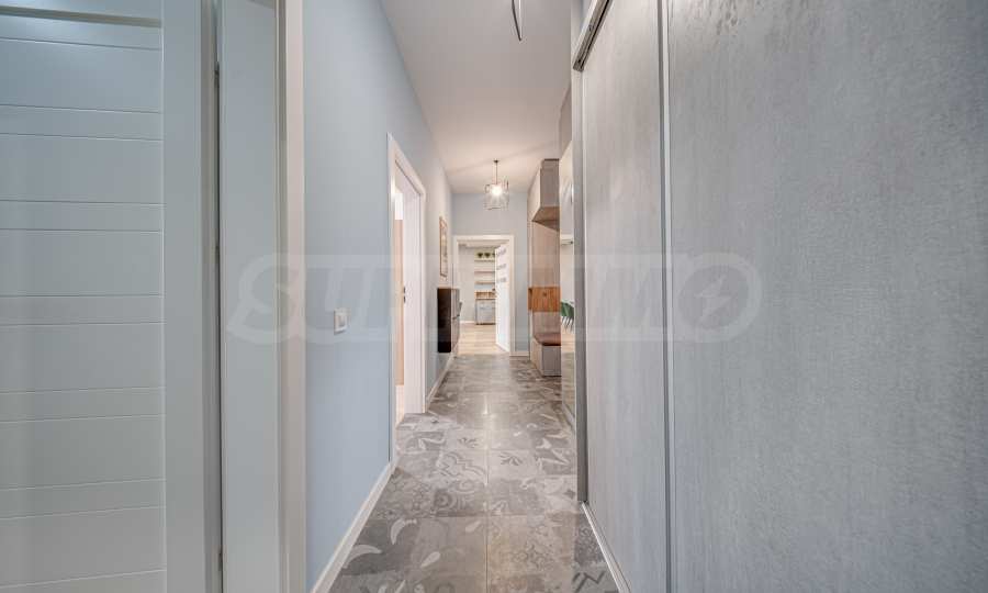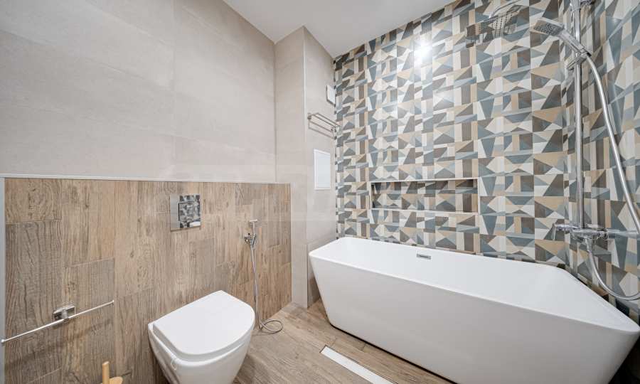 The apartment is finished according to a designer project and with high quality of finishing works and materials used, with lots of natural light. Located on the seventh floor, the apartment offers 128.5 sq m of total area, with a comfortable layout, spacious rooms and high ceilings of 2.80 m.
