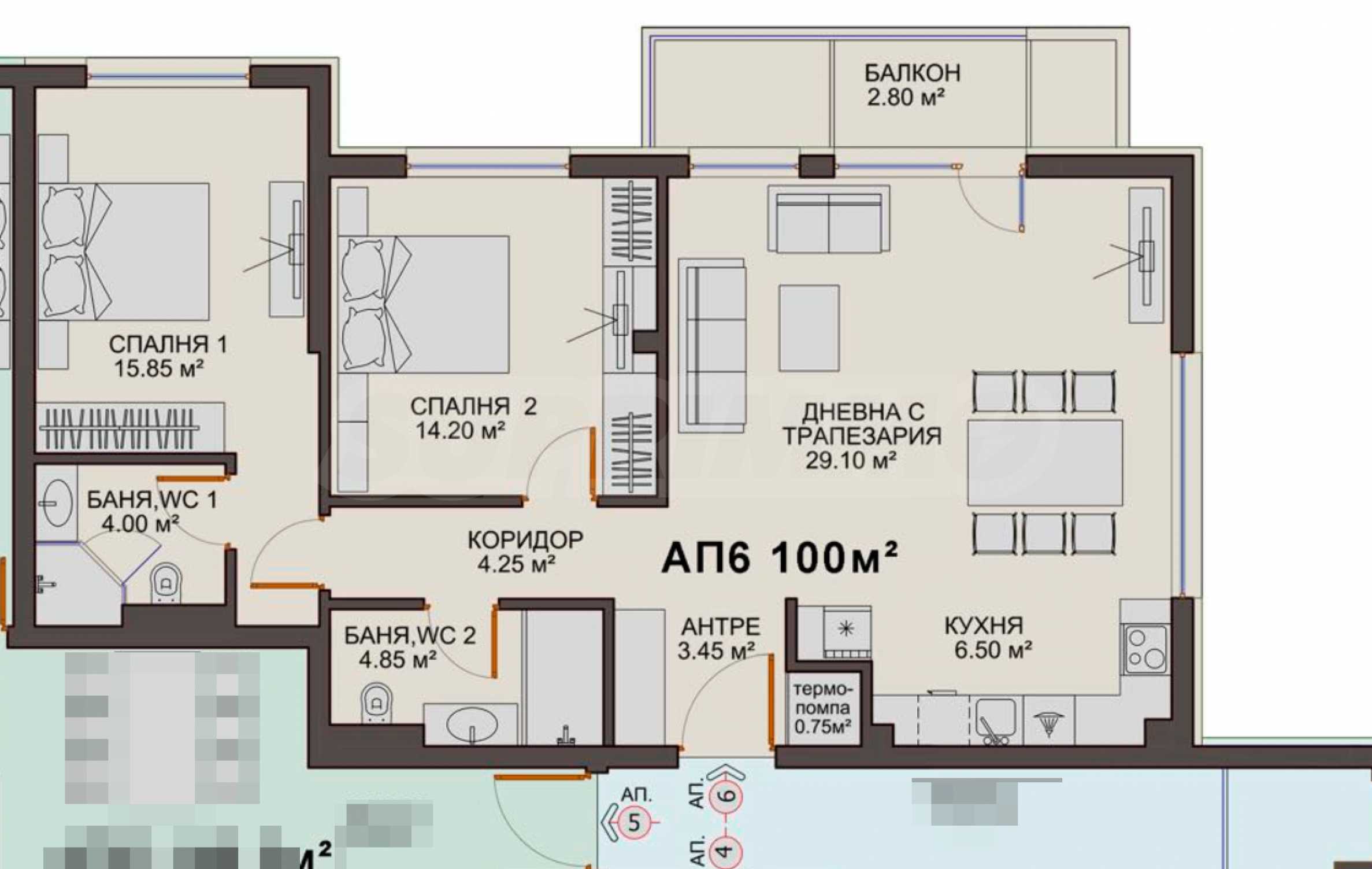 We present a spacious two-bedroom apartment in the villa area "Malinova Dolina". The building is located at the foot of Vitosha Mountain and is designed for people who are looking for comfort, tranquility and high quality of life, in one of the fastest developing neighborhoods of Sofia. The location provides a balance between nature, amenities and urban connectivity - an area with excellent environmental indicators, panoramic views, and is close to Sofia Ring Mall and IKEA, to "Bistrishko Shose" and the Ring Road, with quick access to Business Park Sofia.