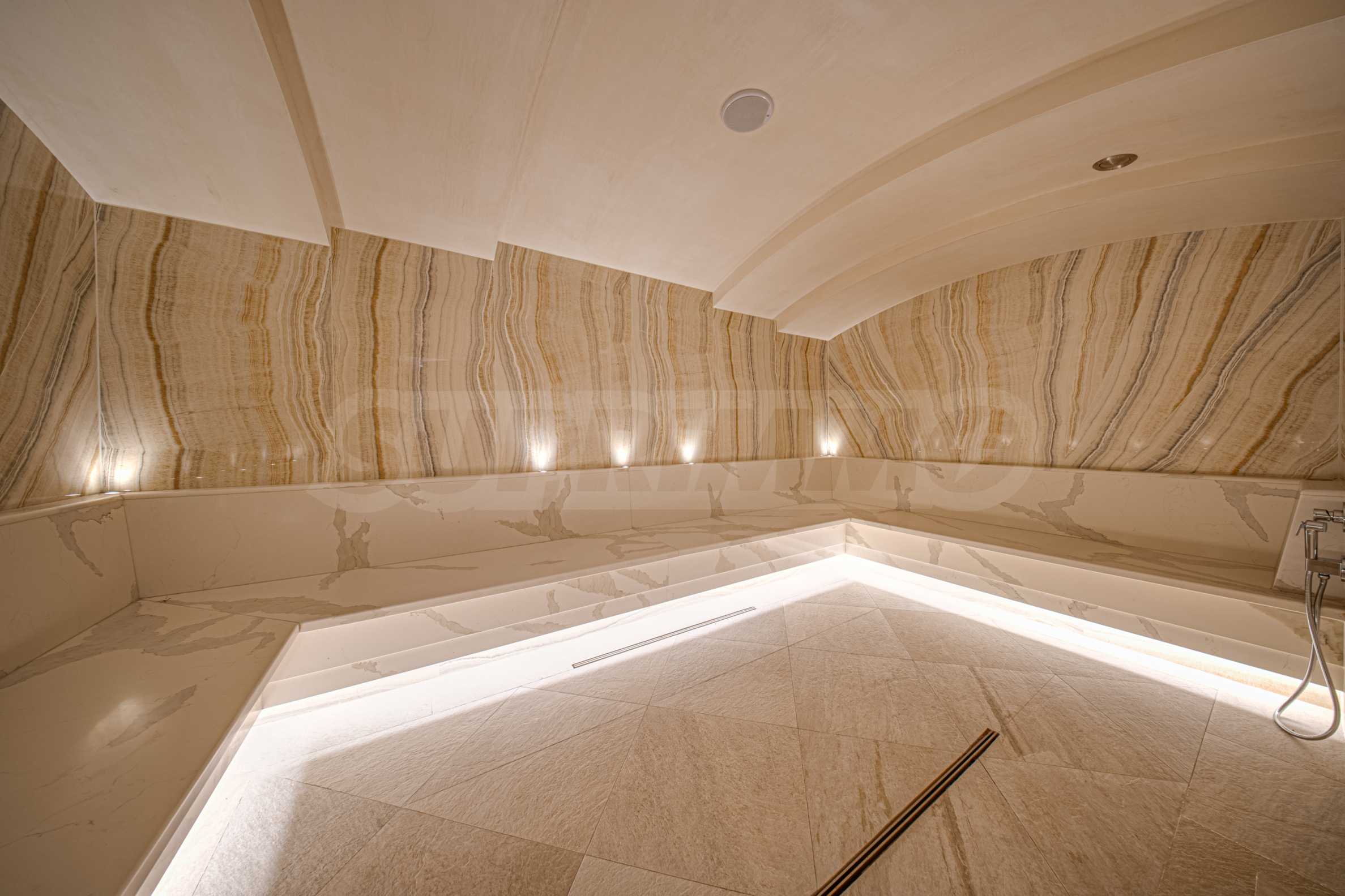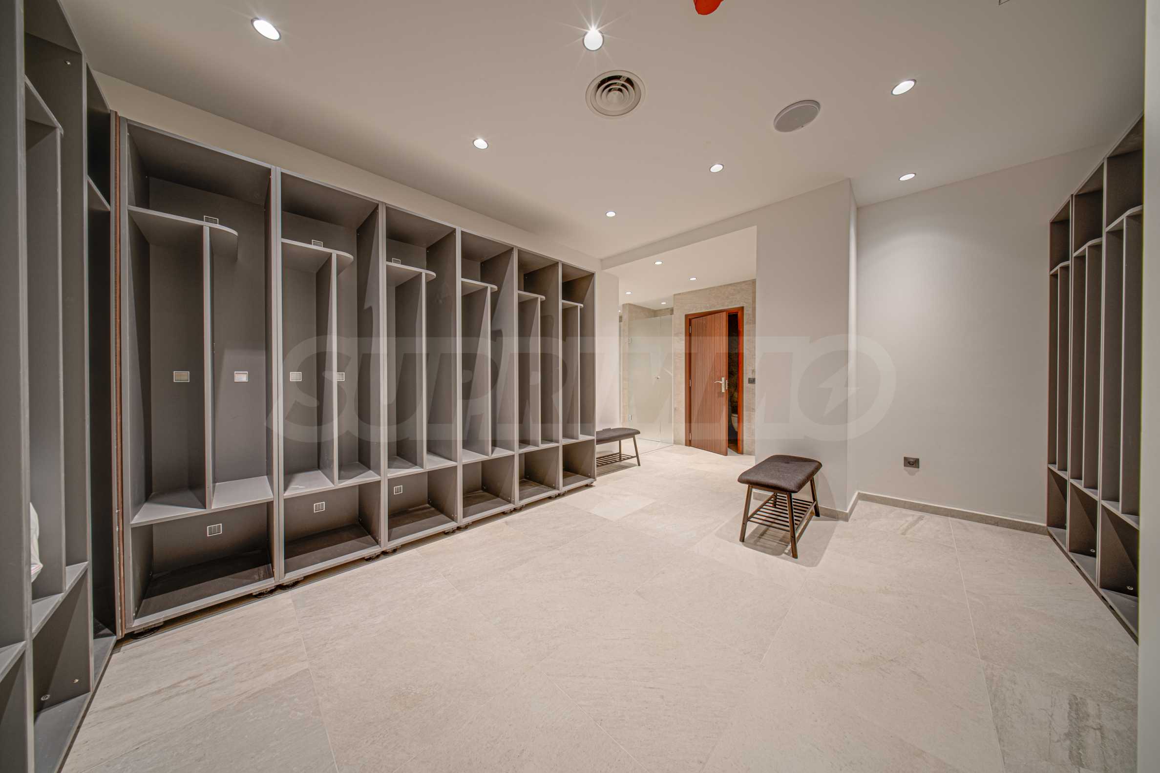 The first level is built as the core of the experience – a space where water, light and silence work together. A large indoor swimming pool with natural lighting, a cold pool, a jacuzzi and water elements create an environment for recovery and fluid movement. The thermal area – Finnish sauna, infrared sauna and steam bath – is integrated so as not to dominate, but to complement. The changing rooms, sanitary facilities and showers are designed with a precision that remains unnoticed precisely because everything functions effortlessly.