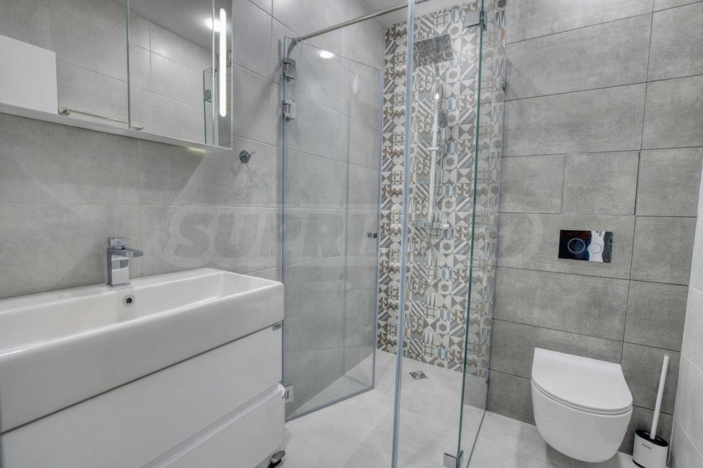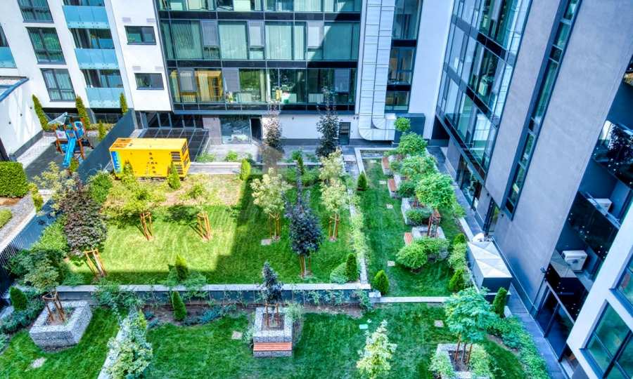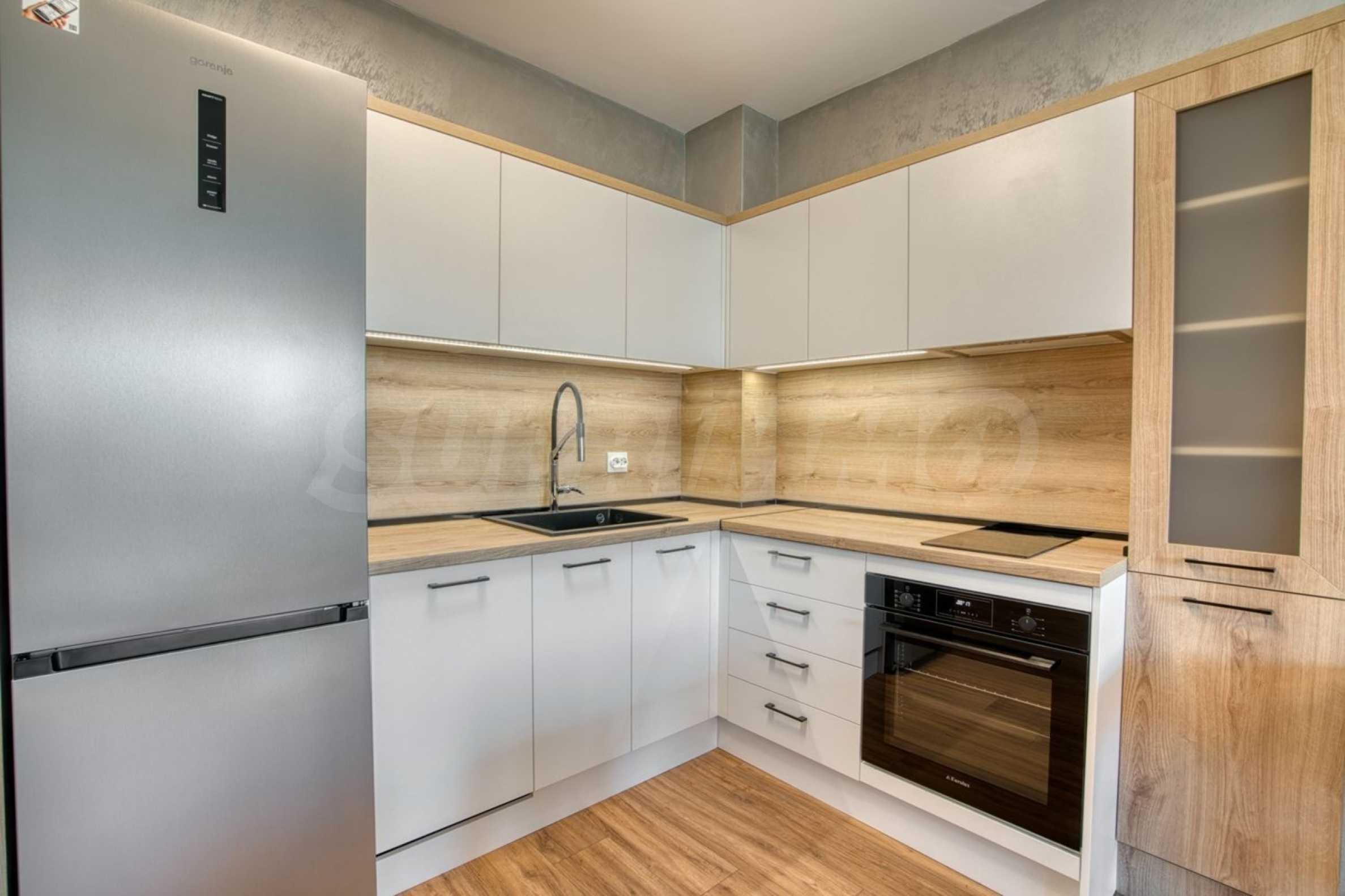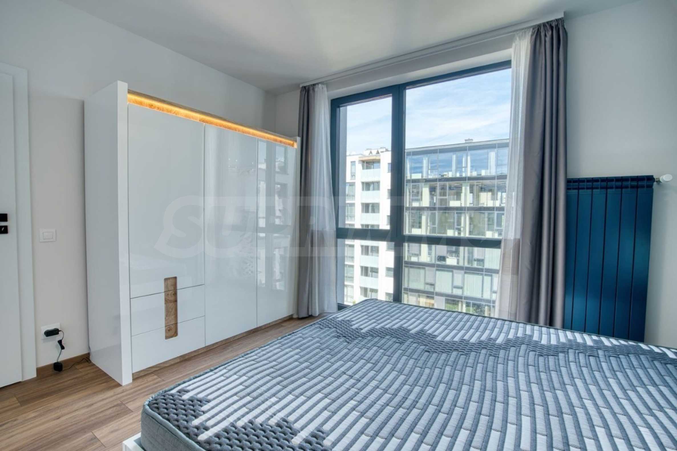 The high floor provides plenty of natural light, complete silence and wonderful views of green areas and Vitosha Mountain. From the spacious terrace, furnished with outdoor furniture, you can even hear the murmur of the small stream nearby, creating a unique feeling of peace and privacy.