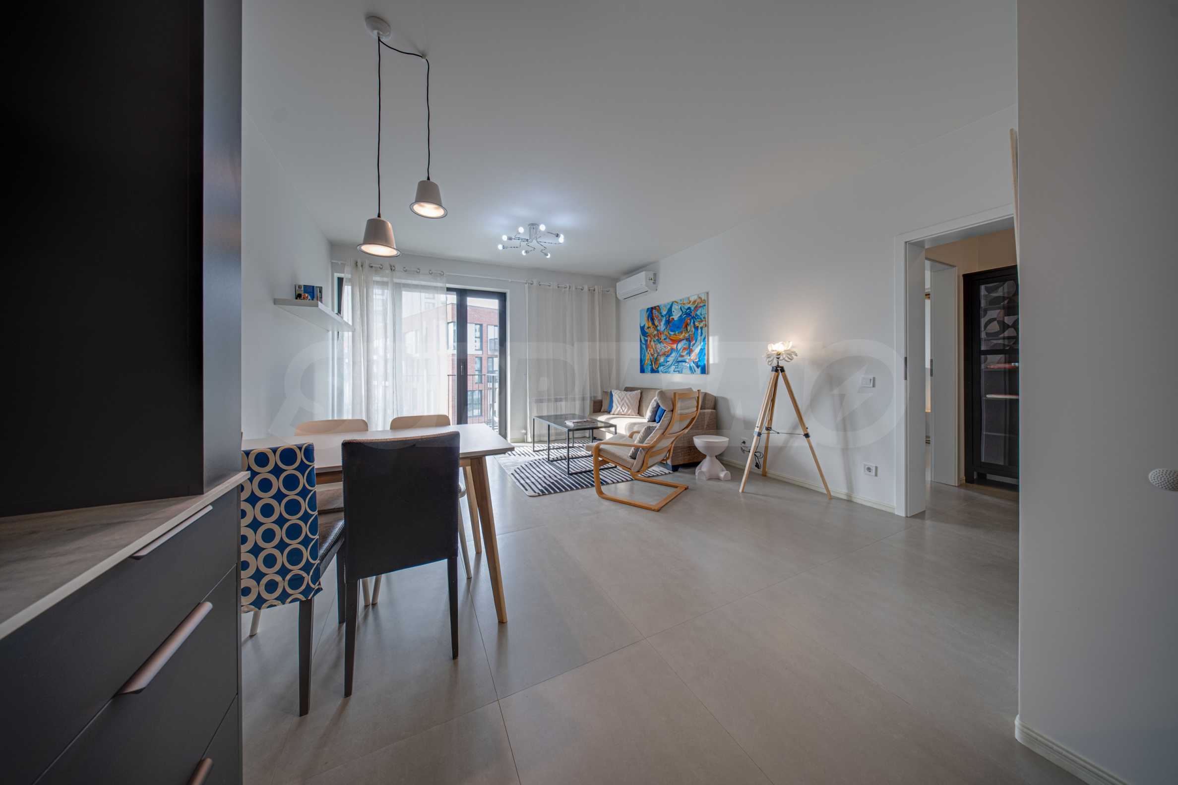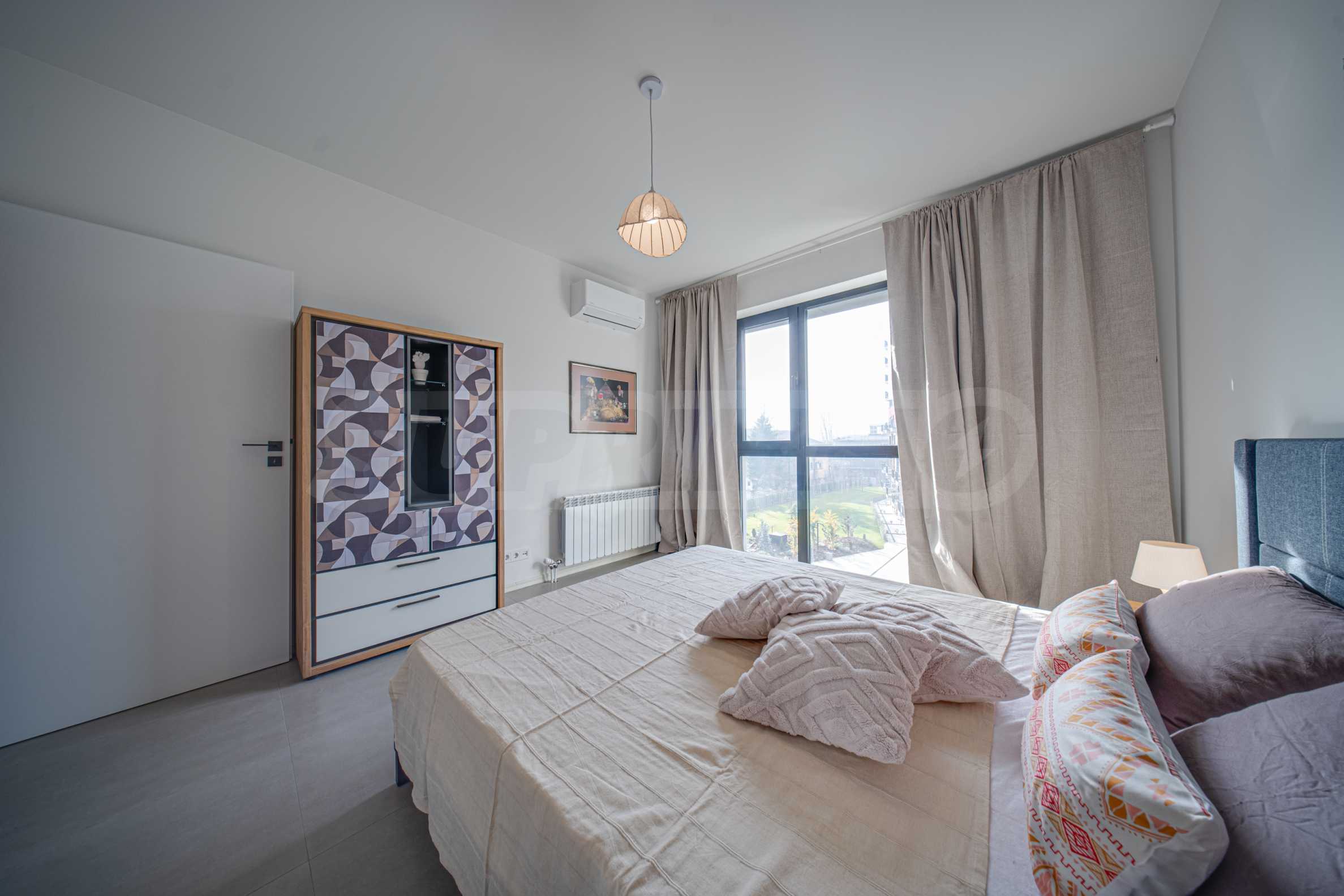 We present to your attention a brand new, cozy one-bedroom apartment for rent, with a pleasant view of the inner courtyard, providing peace and quiet. The apartment is extremely bright, with southern exposure and a view of Vitosha, functionally distributed and awaits its first tenants. It is furnished with brand new, stylish furniture and high-class electrical appliances, and has everything you need for comfortable and fulfilling living.