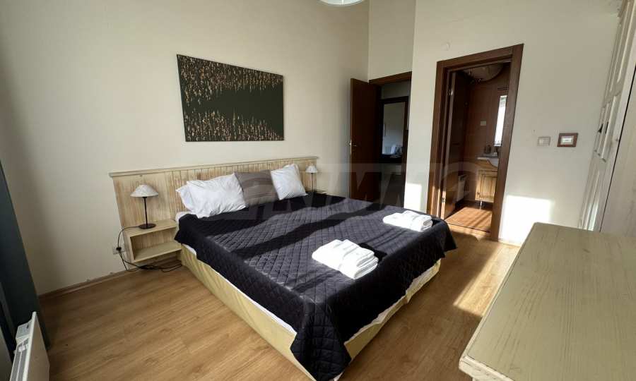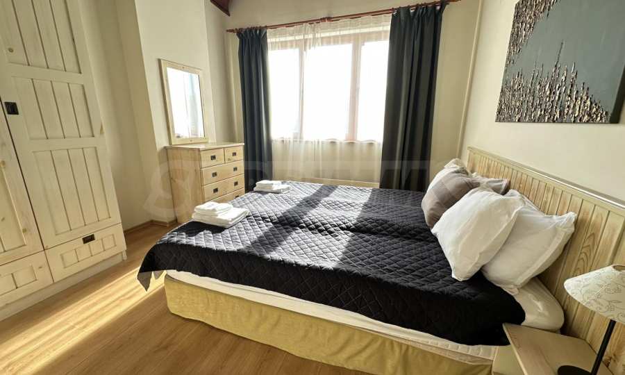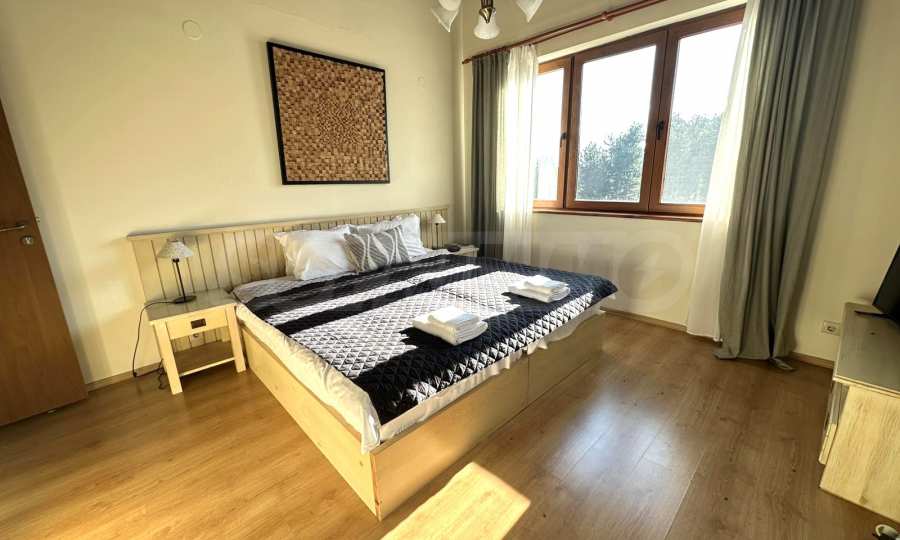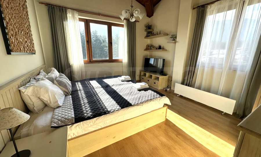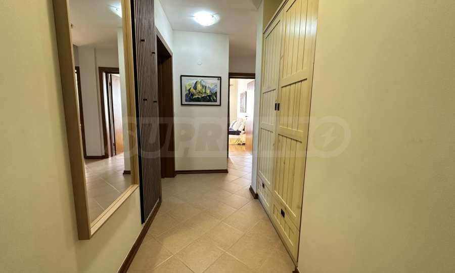 Ready to move in, large four-bedroom apartment in the 5-star Pirin Golf & Country Club holiday complex, built in the picturesque Razlog Valley, surrounded by three of the most beautiful mountains – Rila, Pirin and the Rhodopes, 10 minutes drive from Bansko and in close proximity to the most famous golf course in the country. The complex is located only 12 km from the hot mineral springs in the village of Banya, 5 km from the town of Razlog, 150 km from the shores of the Aegean Sea and 160 km from the capital Sofia.