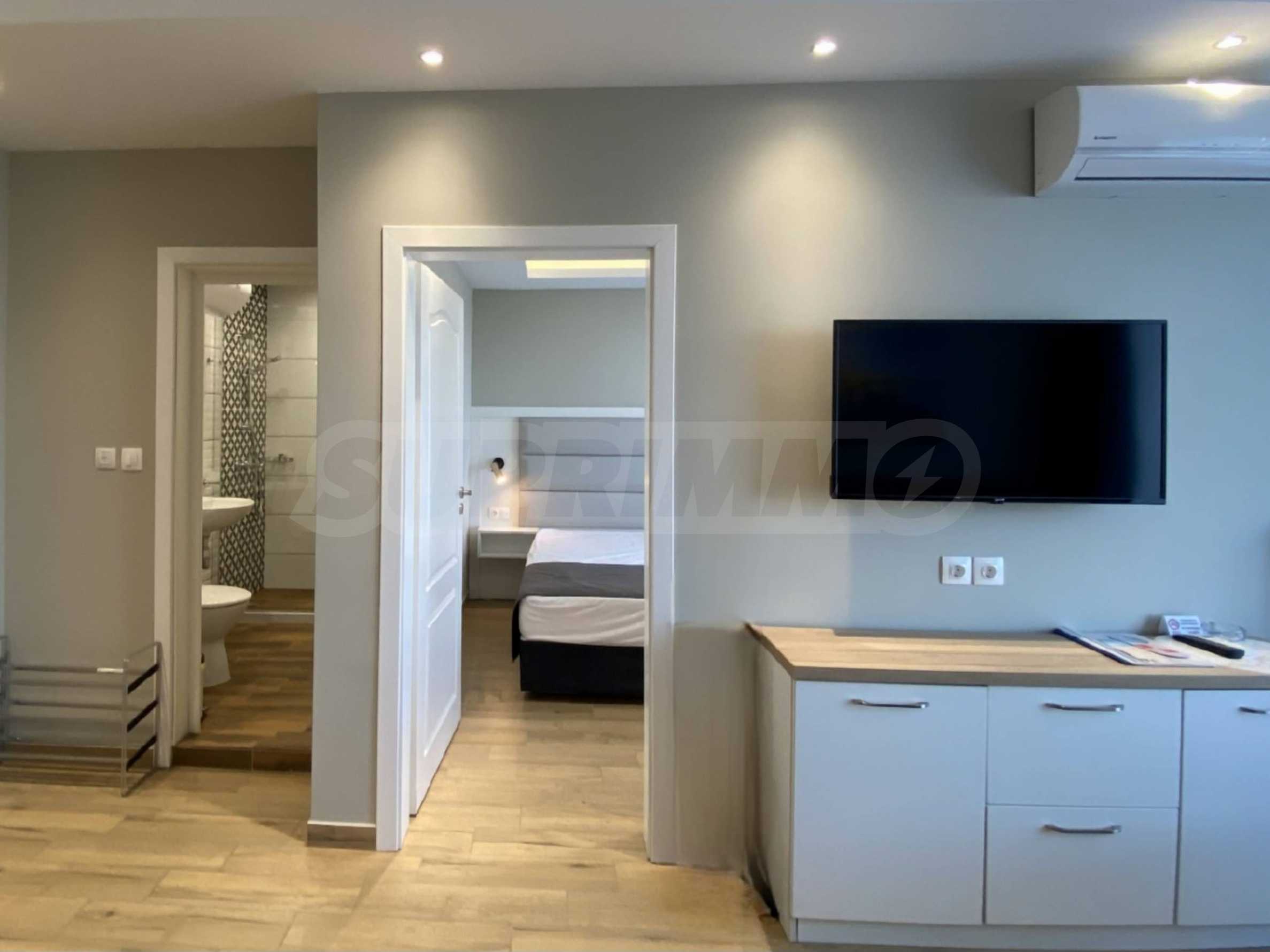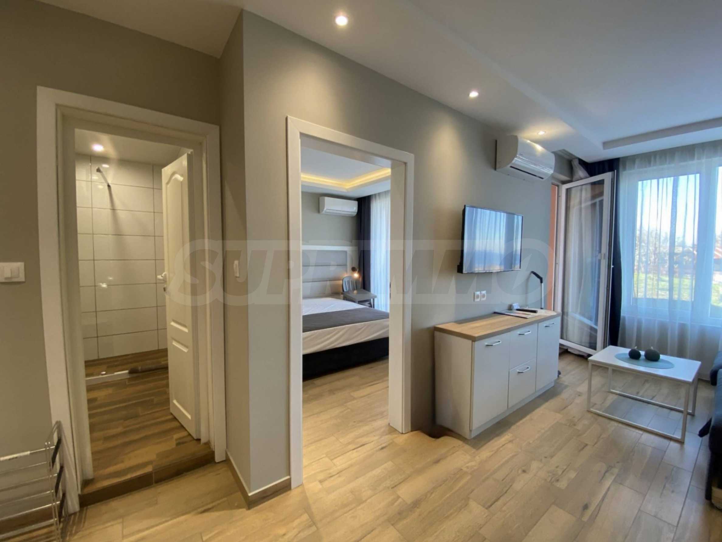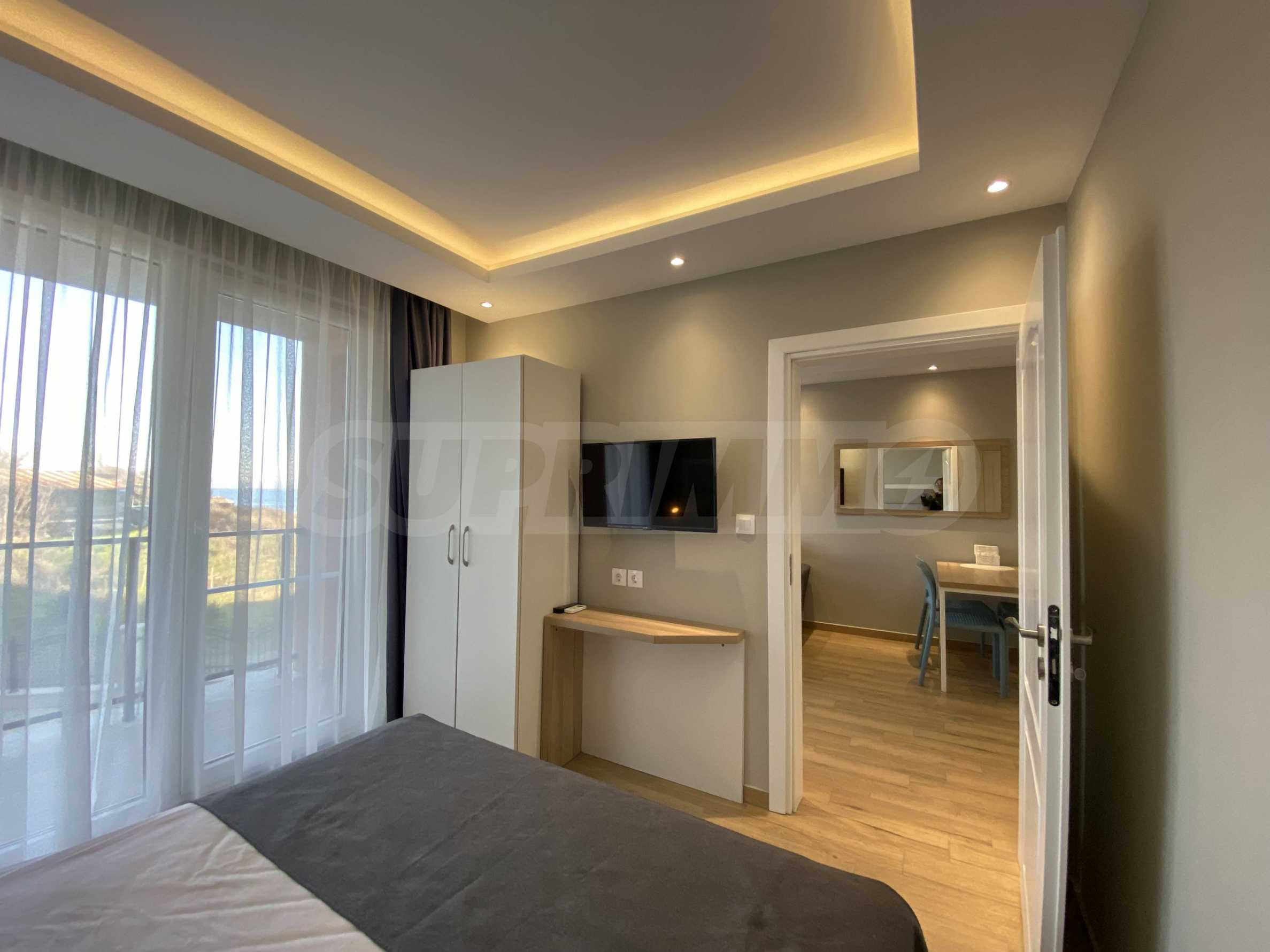 The property in such a complex is a dream come true - a lot of style and elegance, impressive sea views, green areas and a modern panoramic pool on the absolute first line. The luxurious apartments and studios are furnished with taste and a modern approach, creating a prerequisite for a wonderful family or romantic vacation in this quiet and peaceful region of the Bulgarian Black Sea Coast.