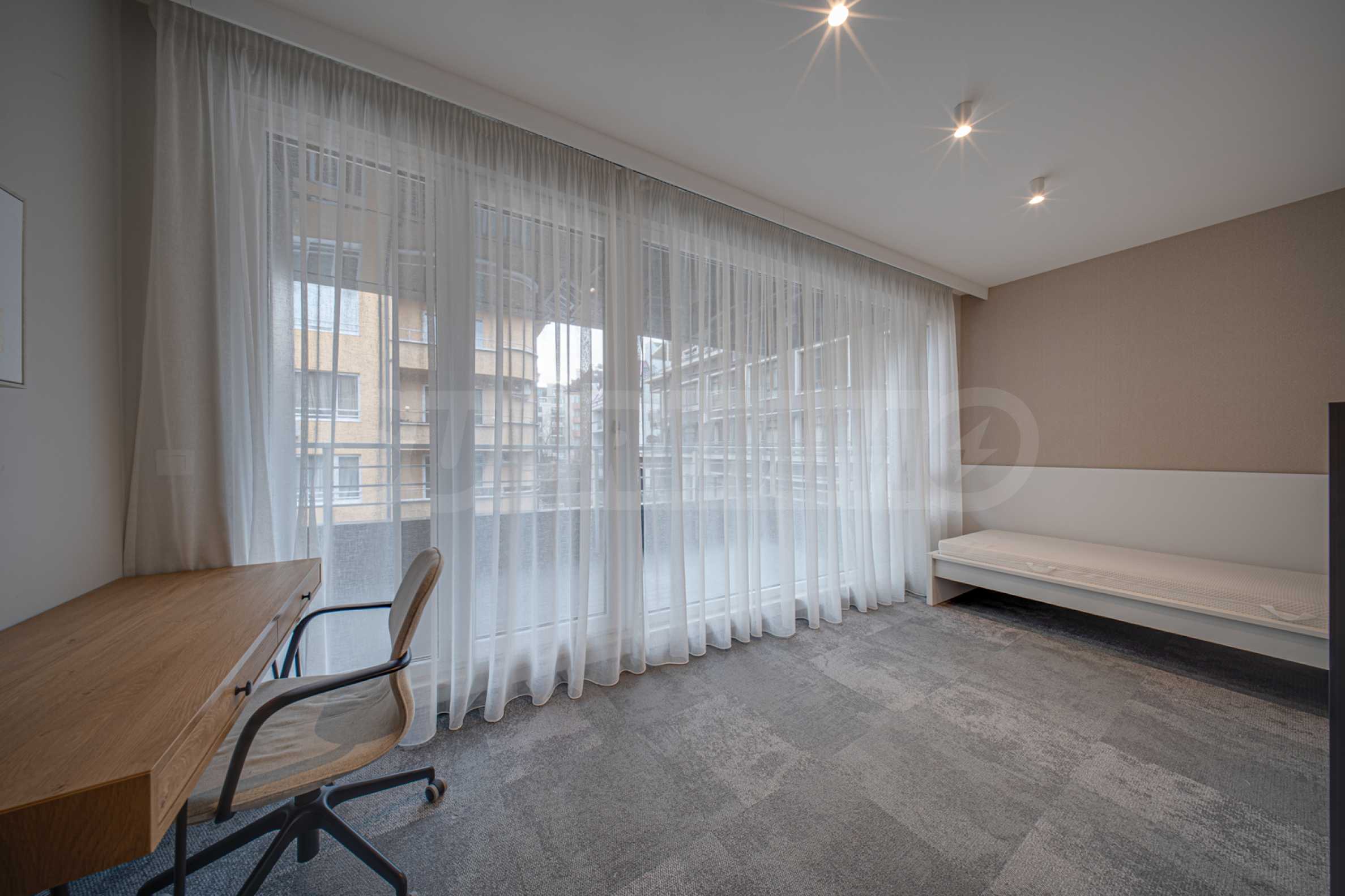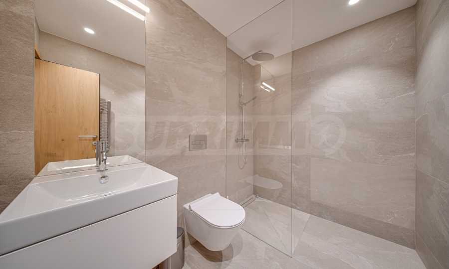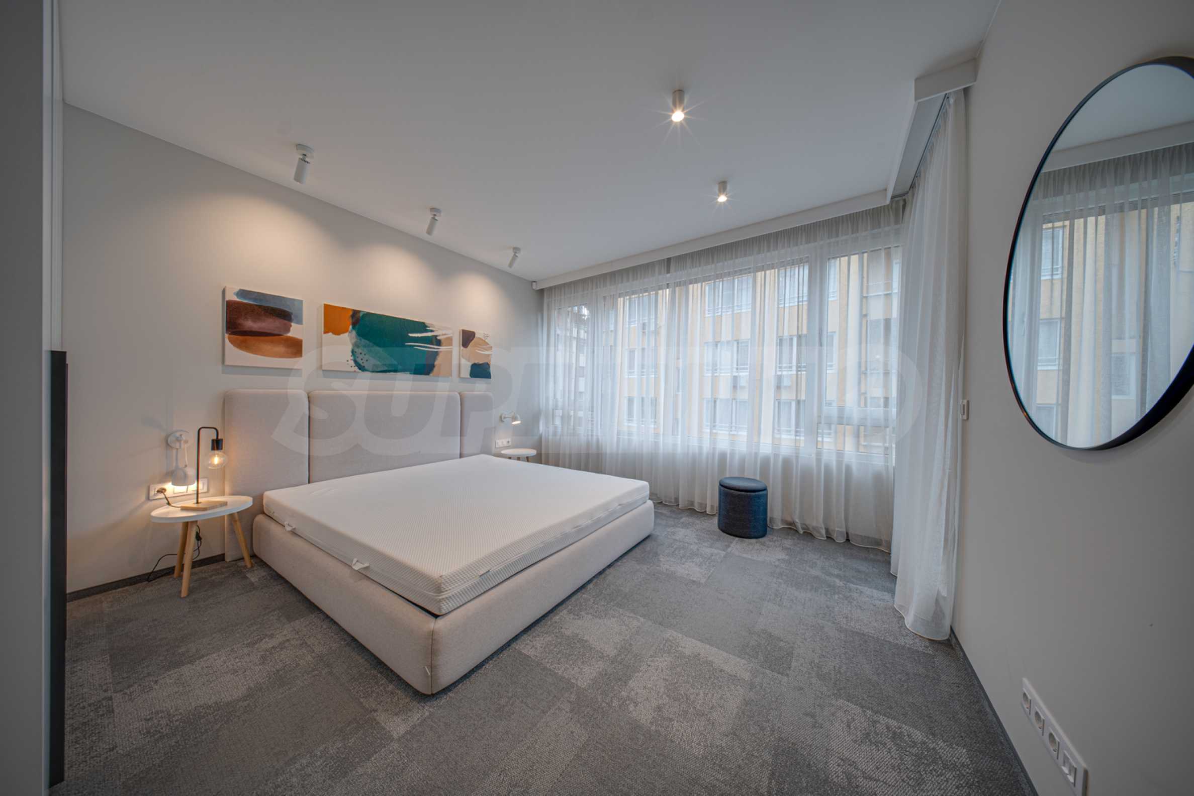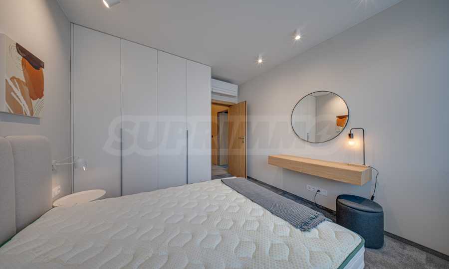 The 143.30 sq m apartment is located on the 4th floor, with a view of the city. The property is bright, offers a modern look and an interior with clean lines. The large windows contribute to an abundance of space and light, and the quality materials and refined furniture - to coziness and elegance. The heating is via a gas boiler, with additional air conditioners installed for comfort during the summer months.