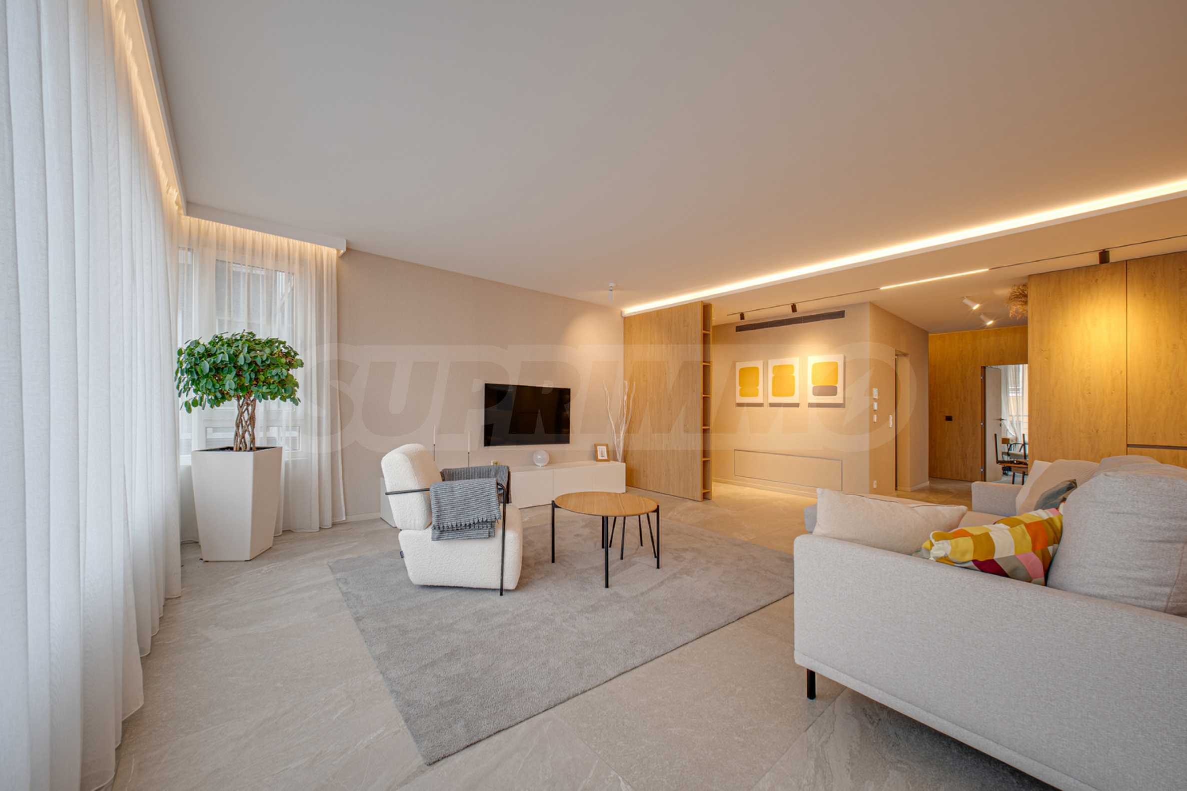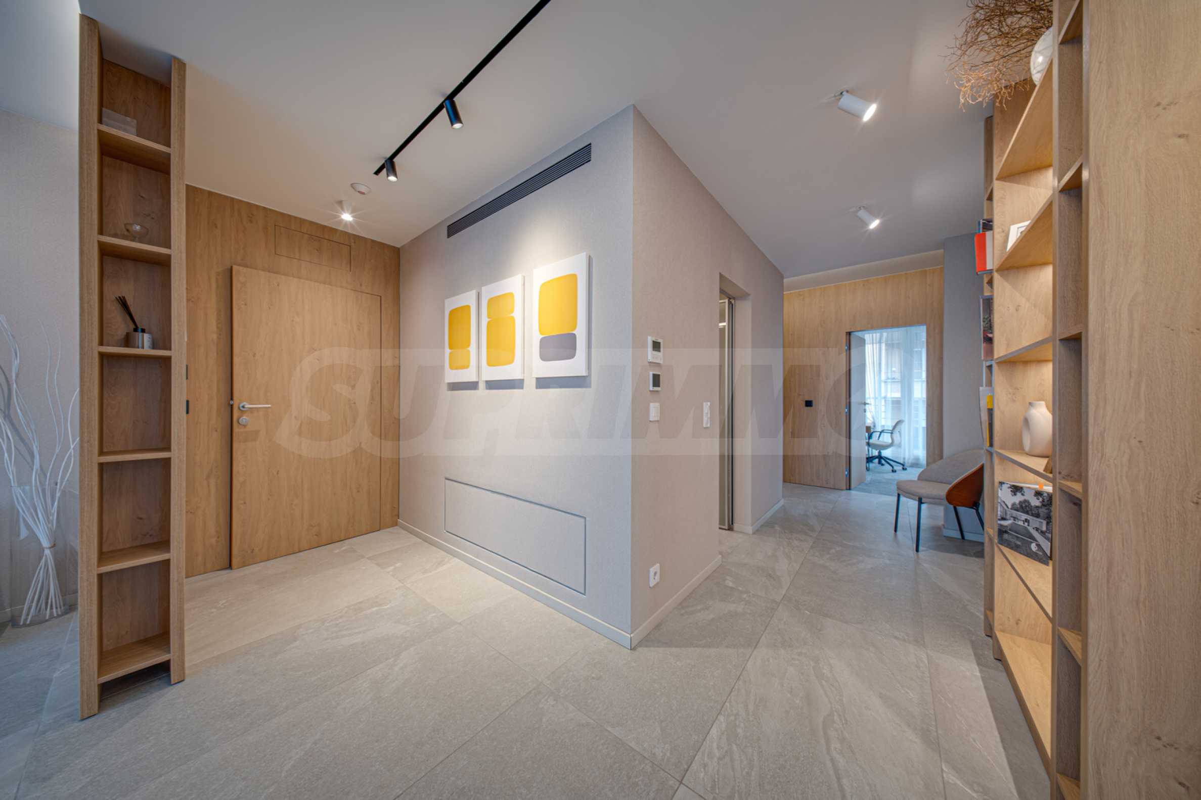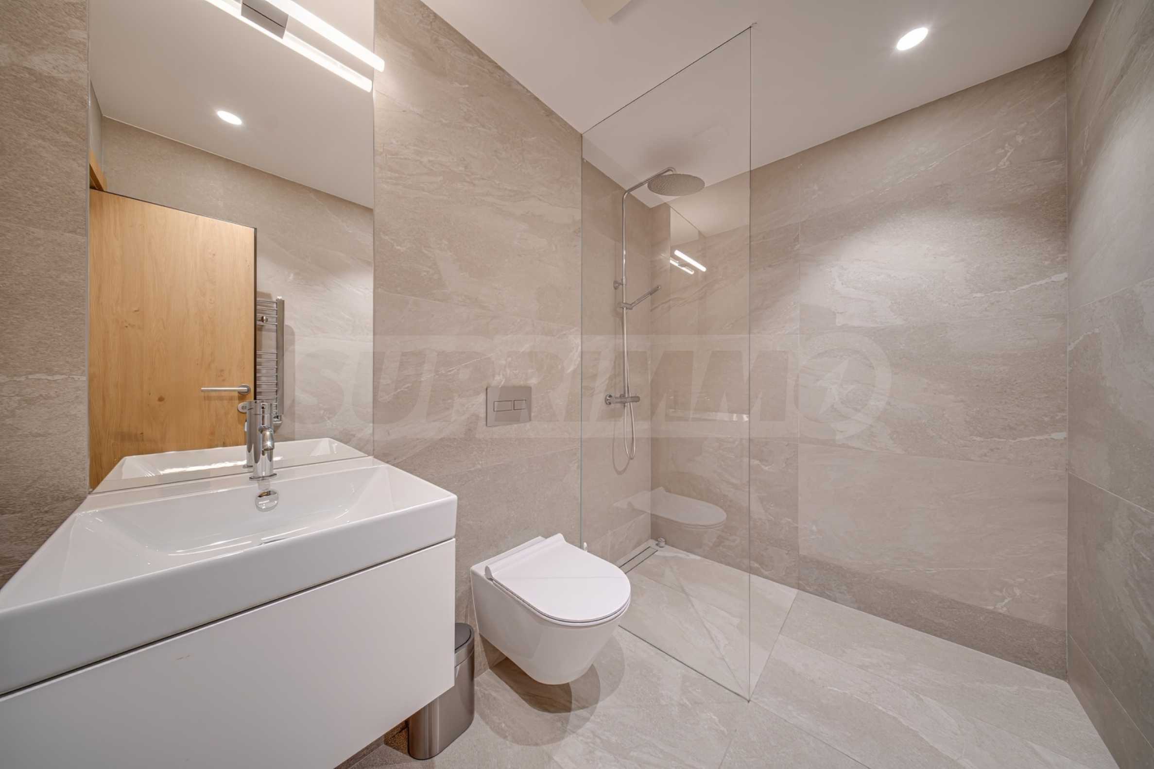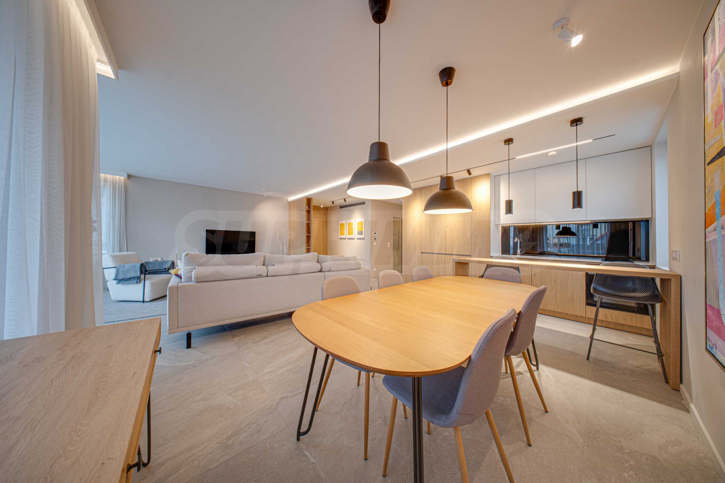 The 143.30 sq m apartment is located on the 4th floor, with a view of the city. The property is bright, offers a modern look and an interior with clean lines. The large windows contribute to an abundance of space and light, and the quality materials and refined furniture - to coziness and elegance. The heating is via a gas boiler, with additional air conditioners installed for comfort during the summer months.