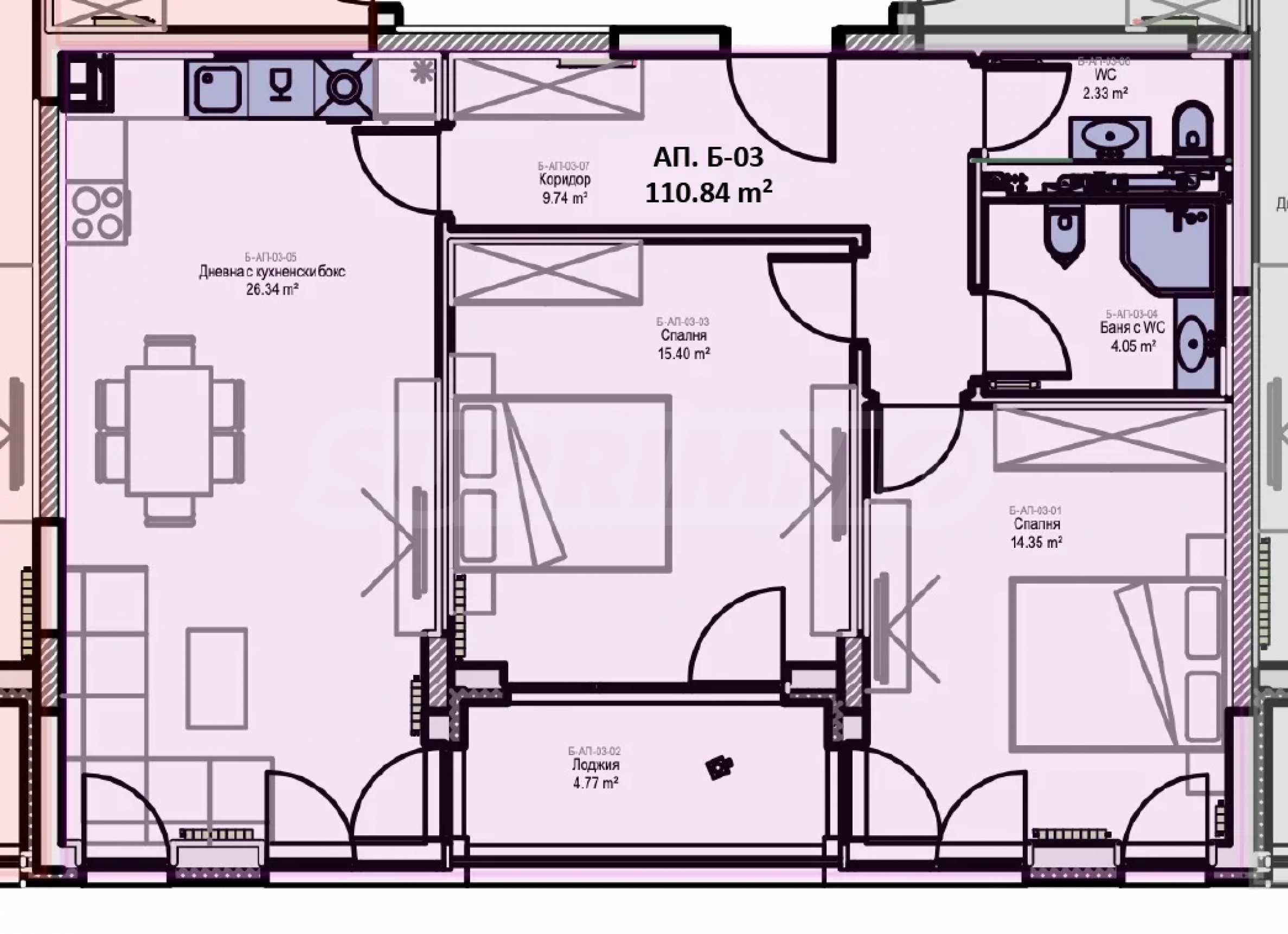 The apartment is located on the 2nd floor and has a built-up area of 90.74 m2., on which are distributed: entrance hall, bathroom/toilet, separate toilet, living room with kitchen and dining room, terrace, two bedrooms. The apartment is handed over in a state of completion according to BDS, with quality German PVC joinery - six-chamber profile, with triple glazing for high energy efficiency and noise insulation. The heating is with central heating, and copper lines for air conditioners (split and multi-split systems) will be built.