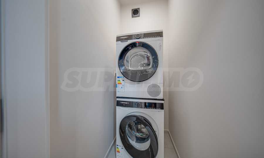 The kitchen is equipped with everything you need - built-in refrigerator, oven, hob, dishwasher - AEG and Siemens brands. In the utility room there is a washing machine and a separate Siemens dryer.