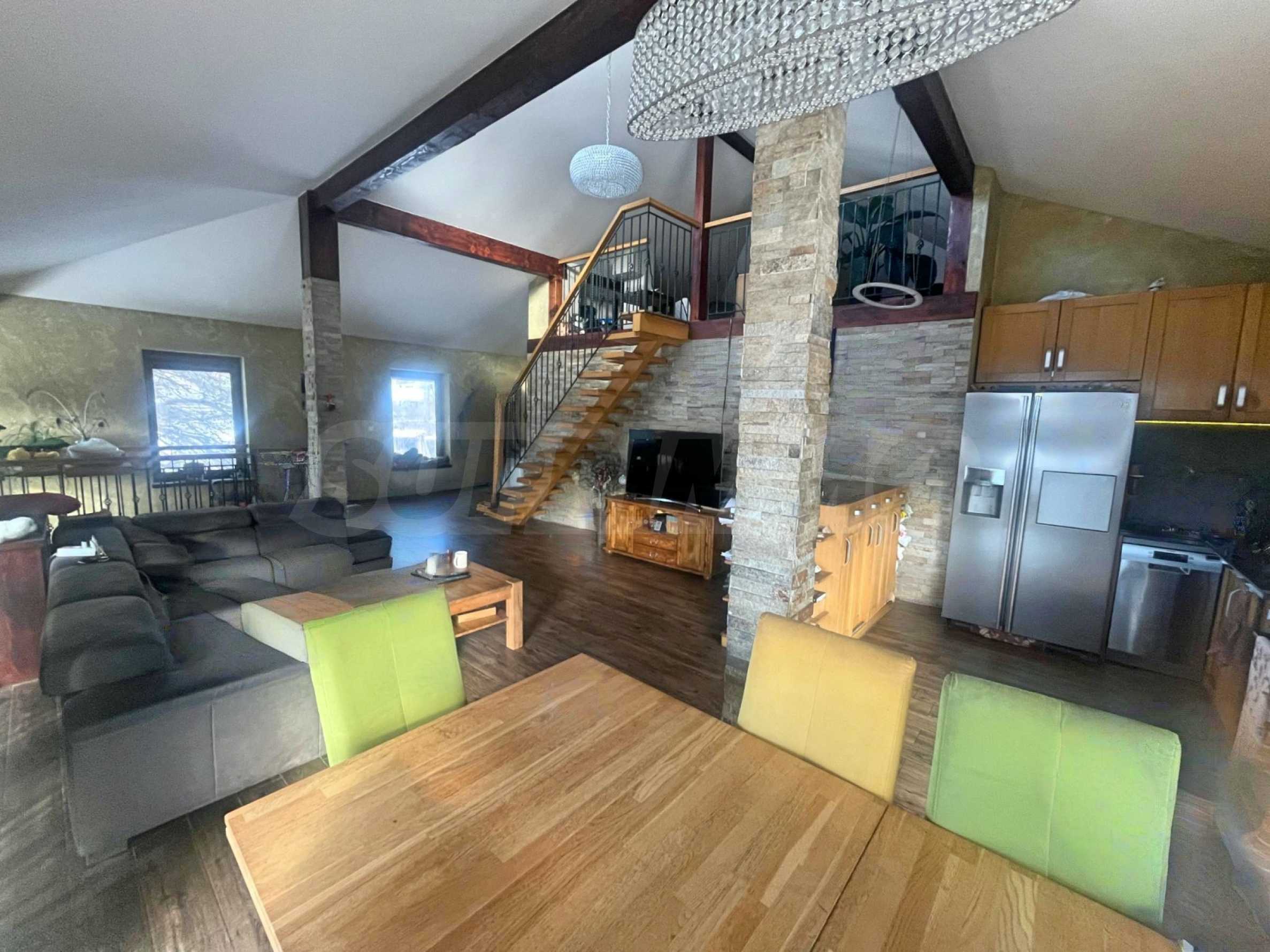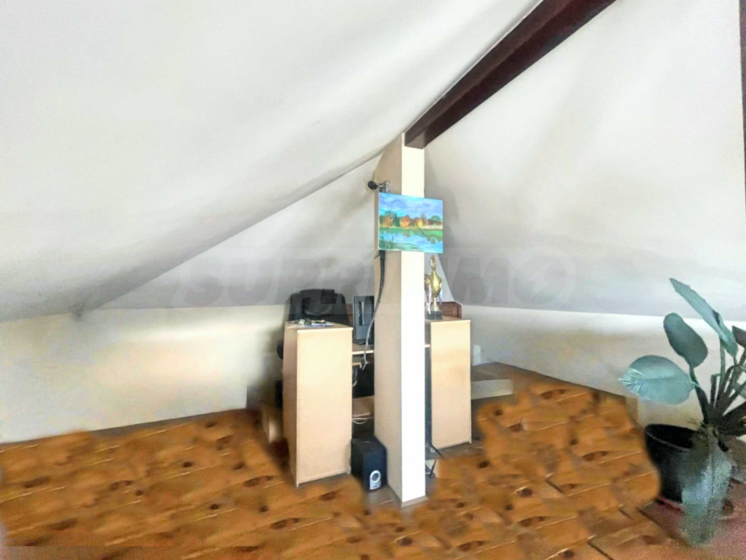 The attic floor has been converted into a study, providing additional workspace or a place to relax. The house is fully equipped and furnished, ready for immediate occupancy. An electric heat pump provides efficient and modern heating, ensuring a comfortable temperature is maintained.