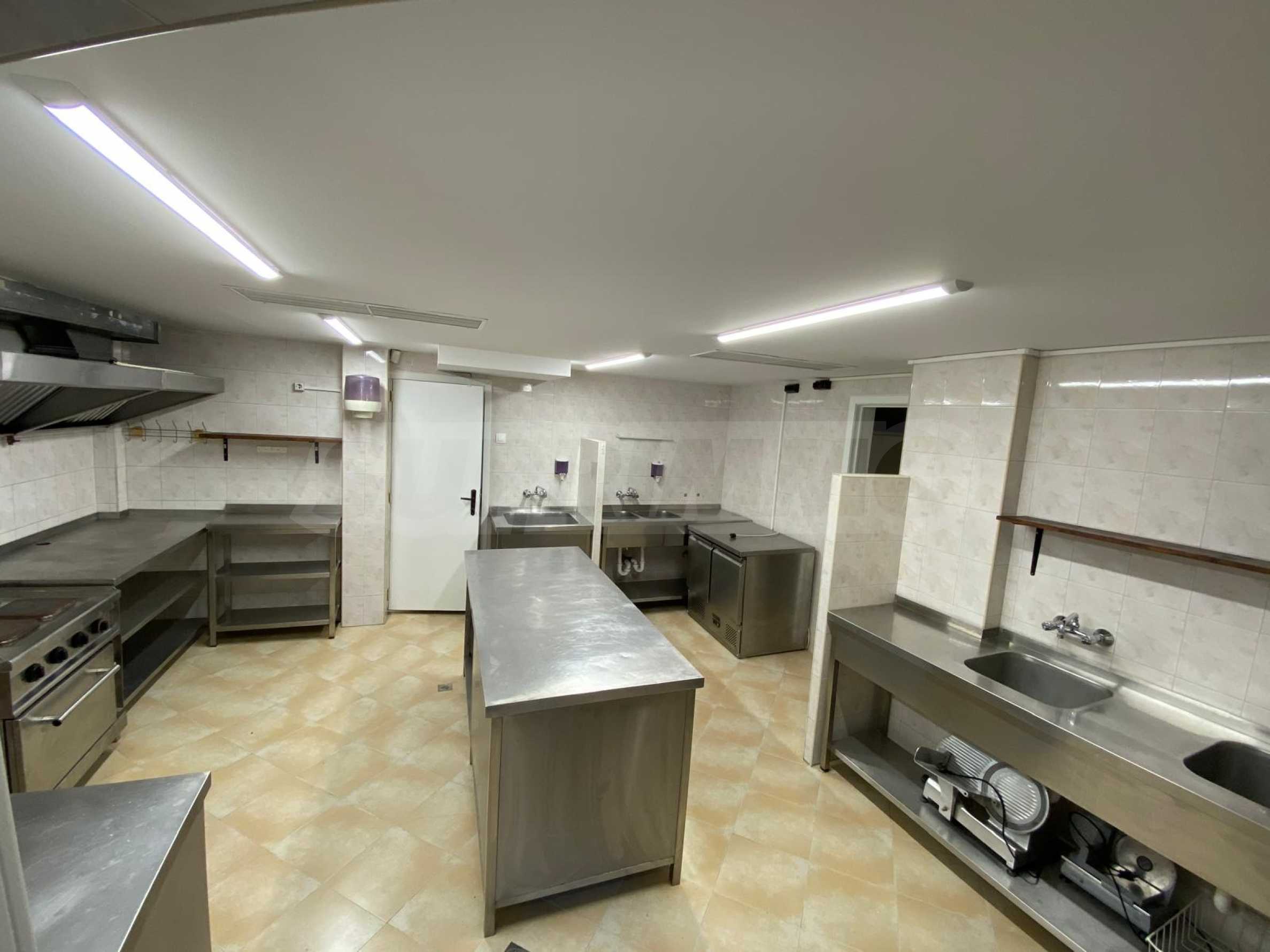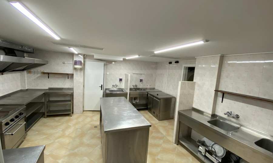 The property has a spacious sales hall, a fully equipped professional kitchen, storage and utility rooms. It is suitable for a restaurant, cafe, pizzeria, pastry shop, catering or event center.