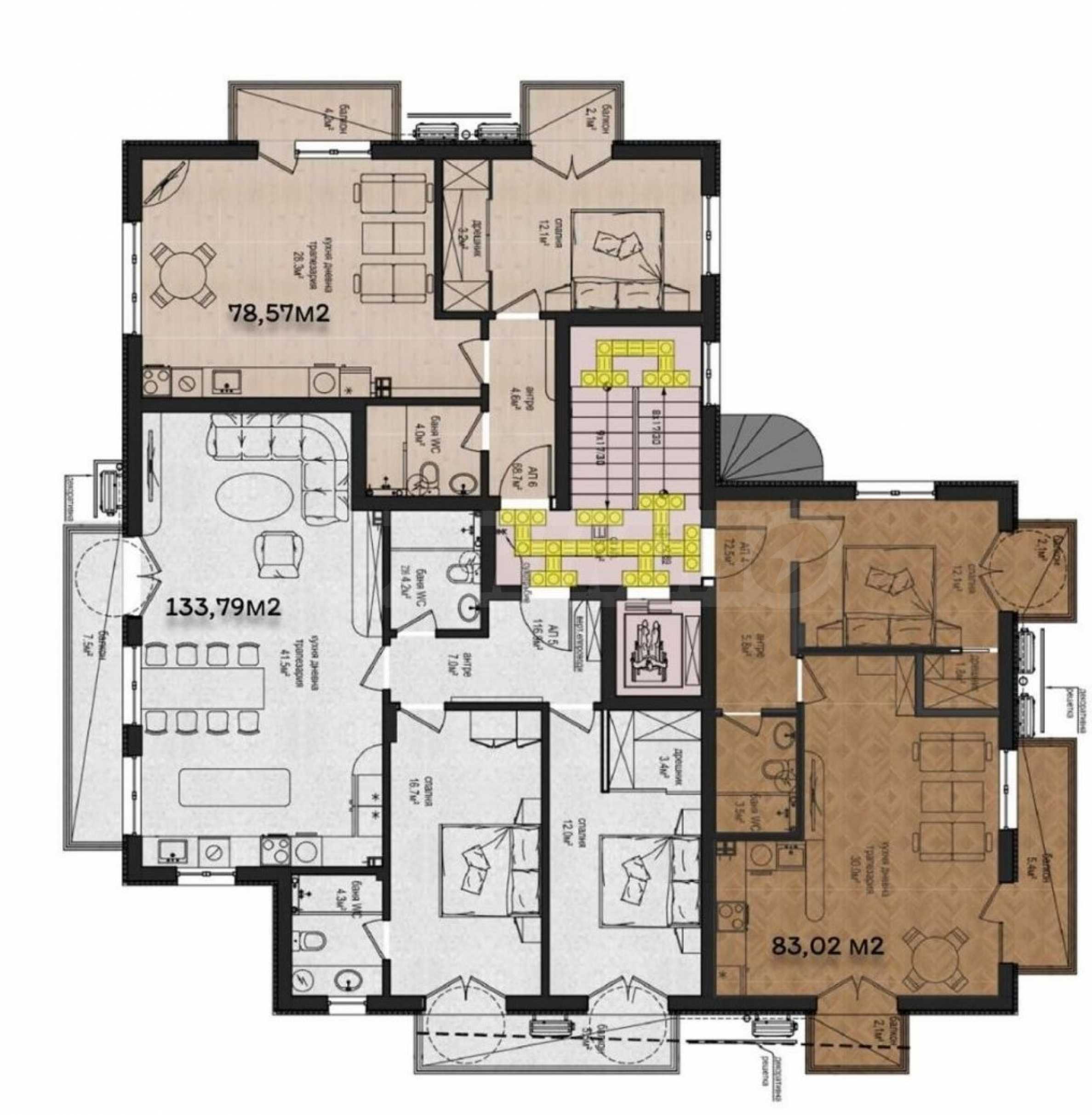 The property with a total area of 83.02 sq.m is located on the 1st residential floor of 3 and designed with attention to detail and maximum functionality.