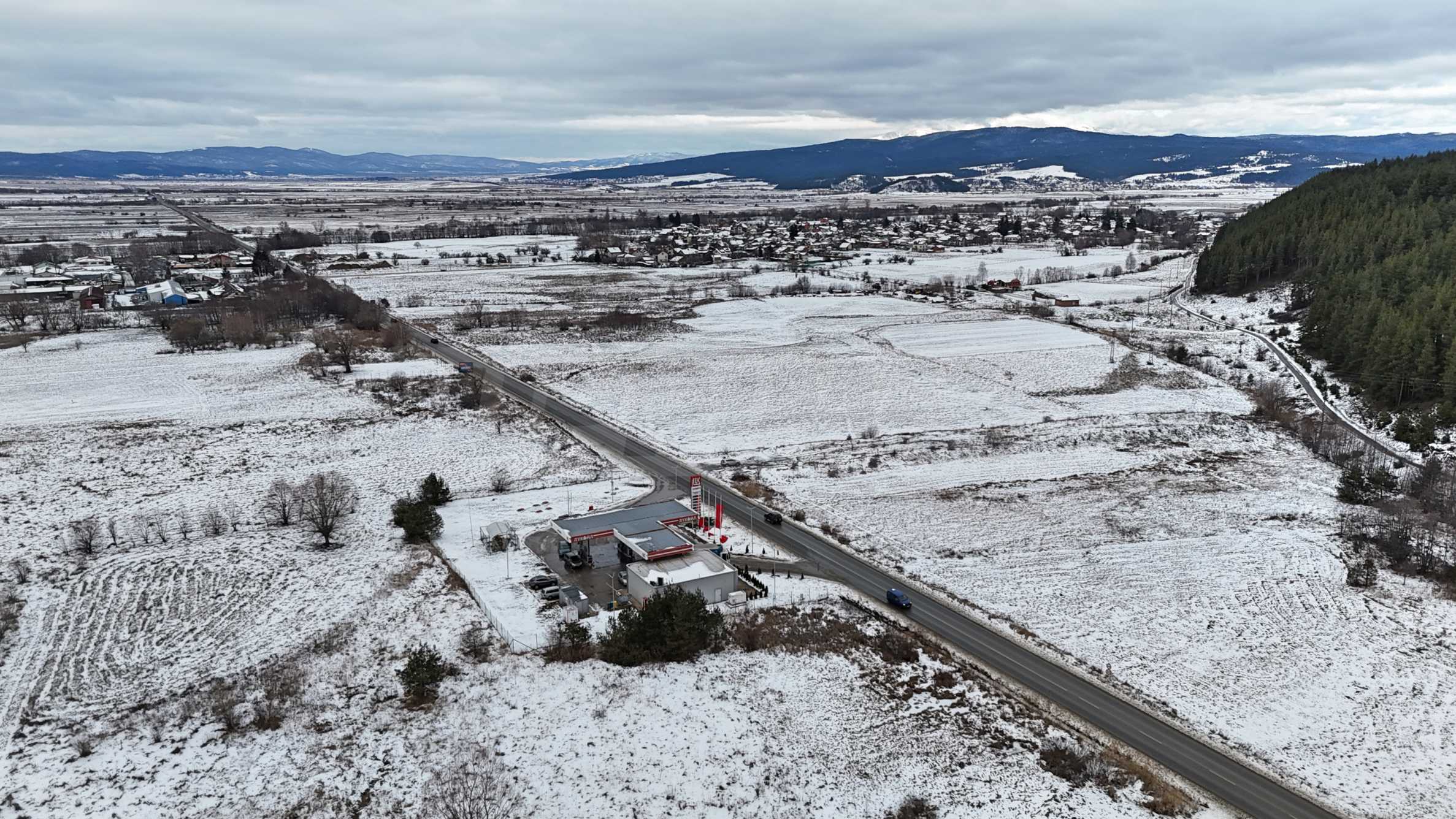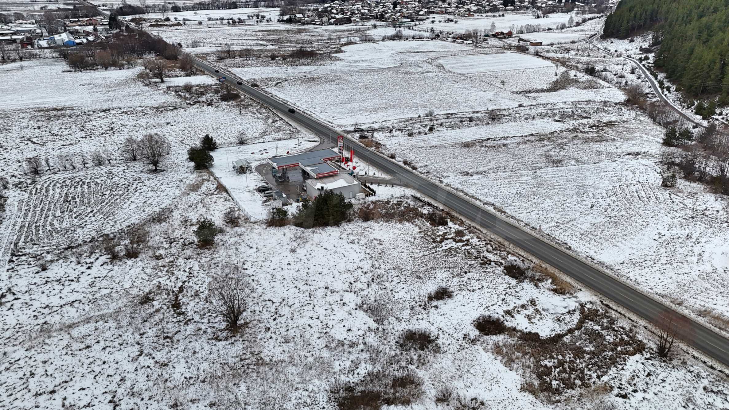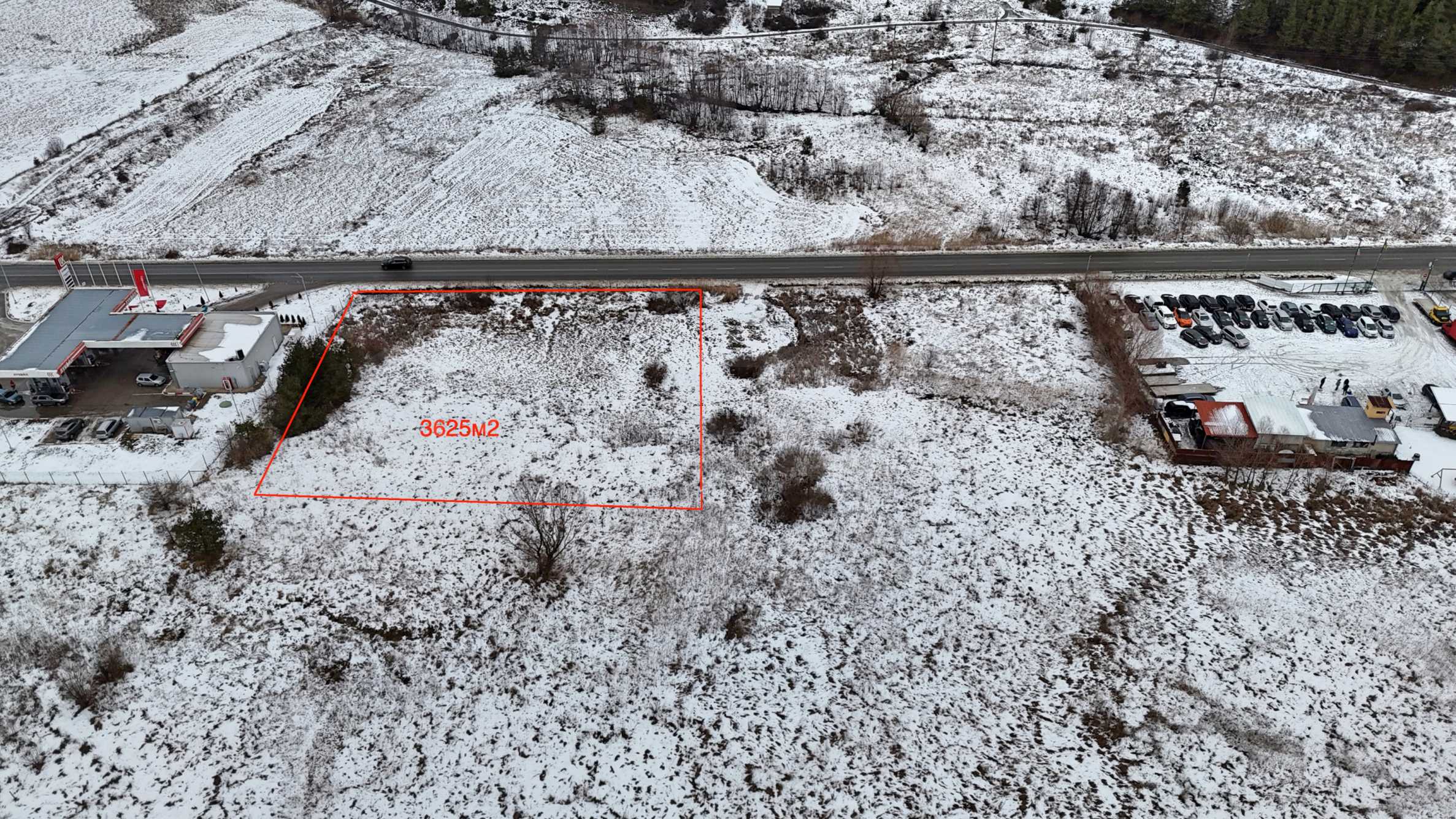 The property has a total area of 3,625 sq. m and fronts a main road measuring 70 sq. m in length, which connects Samokov and Dupnitsa. Its location provides convenient access and visibility, with a gas station and a car dealership in the immediate vicinity, contributing to its commercial value.