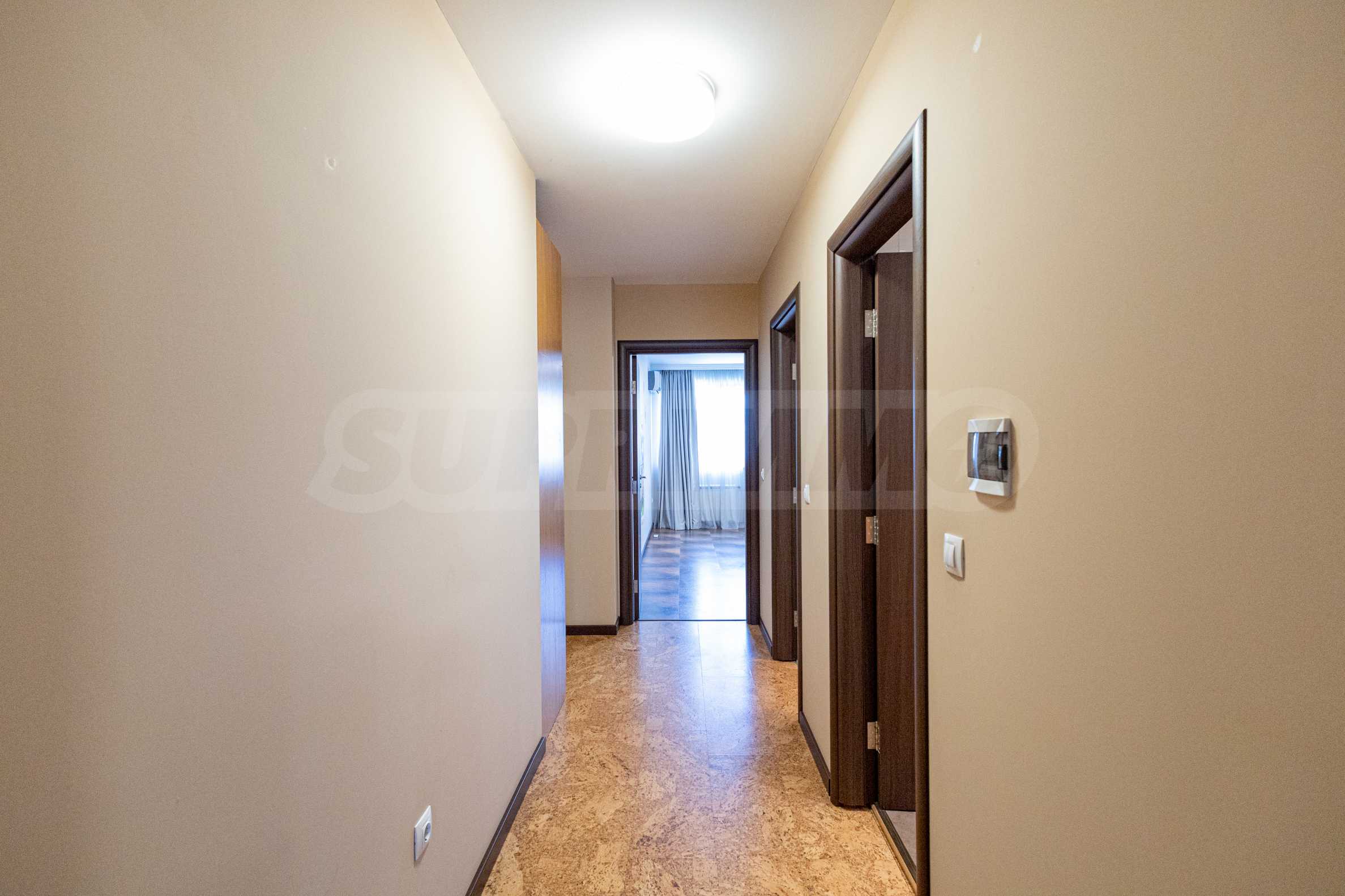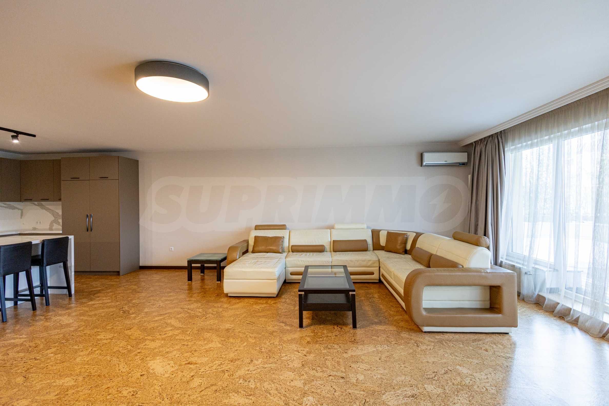 The apartment has a functional layout and is filled with high-quality materials, with natural cork and granite flooring, built-in appliances from leading brands, and an air conditioning and heating system that guarantees comfort in all seasons.