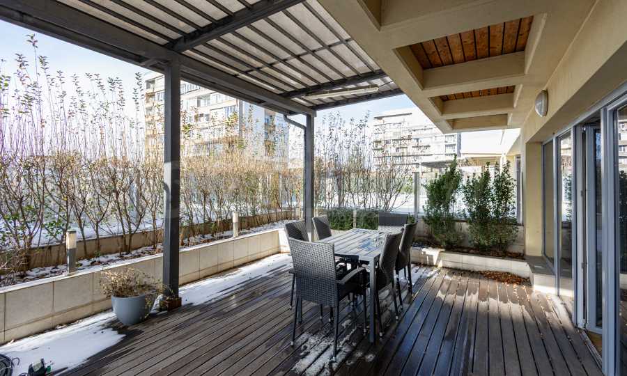 • living area with access to a large terrace with a landscaped garden;