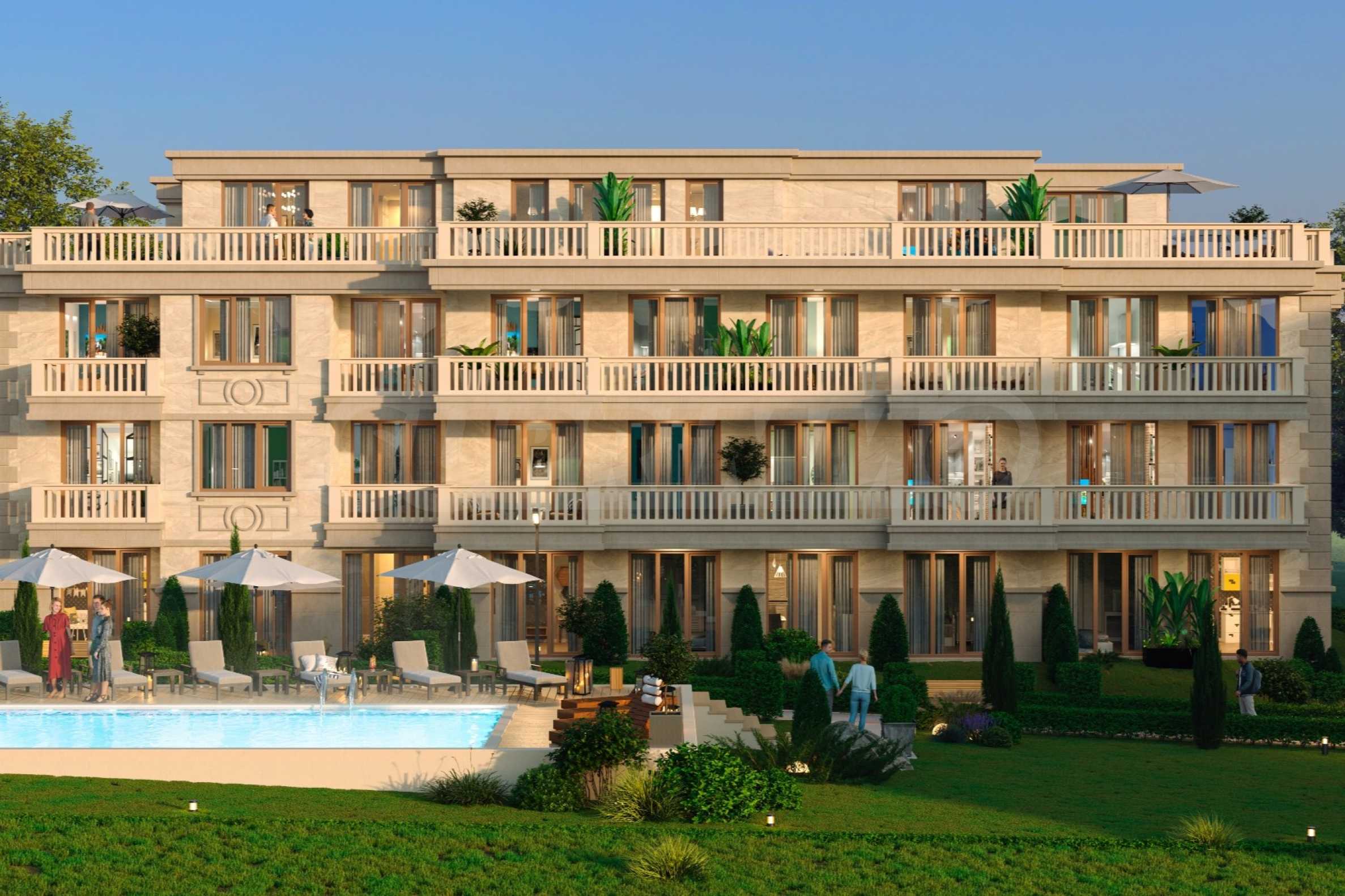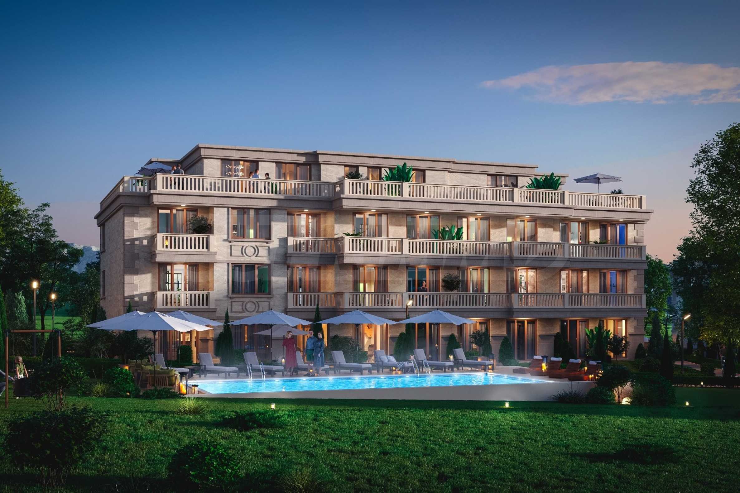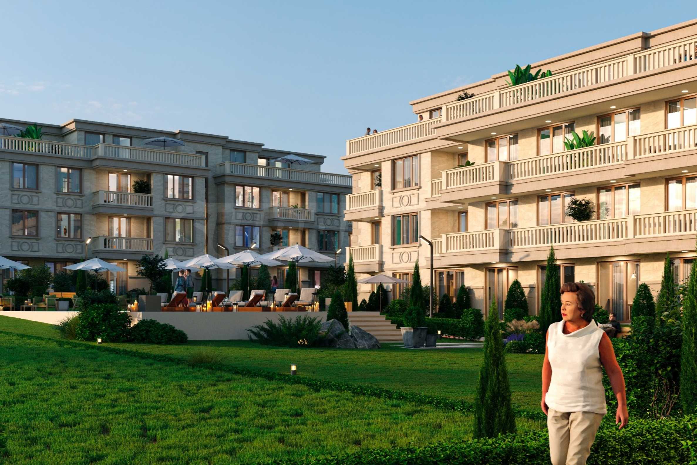 The complex consists of four residential buildings, with a richly landscaped yard with different areas for walking, playing and recreational activities. It also has an underground parking lot with more than 100 parking spaces, charging stations for electric vehicles, 24-hour security, and an outdoor swimming pool.