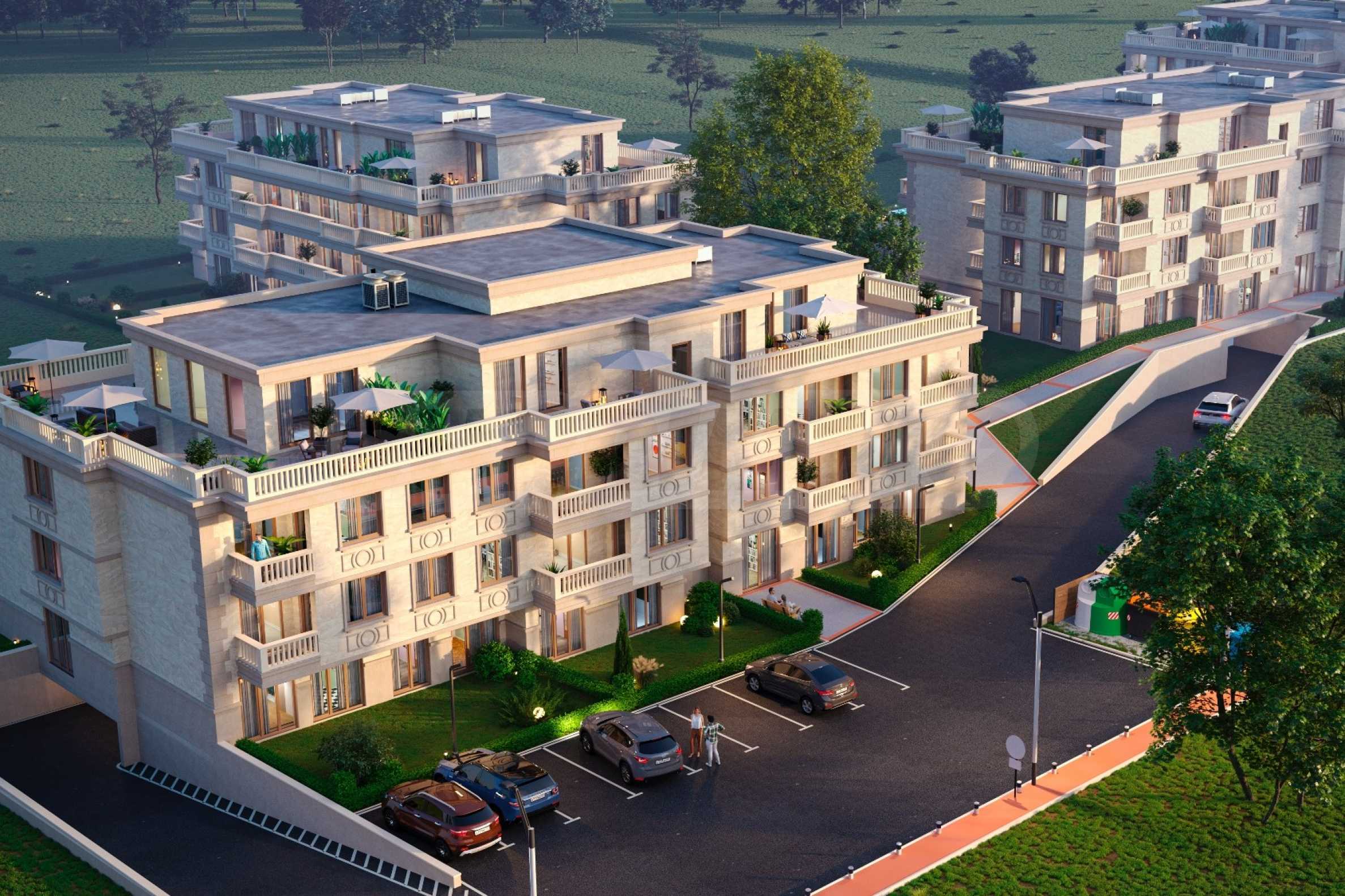 The complex consists of four residential buildings, with a richly landscaped yard with different areas for walking, playing and recreational activities. It also has an underground parking lot with more than 100 parking spaces, charging stations for electric vehicles, 24-hour security, and an outdoor swimming pool.