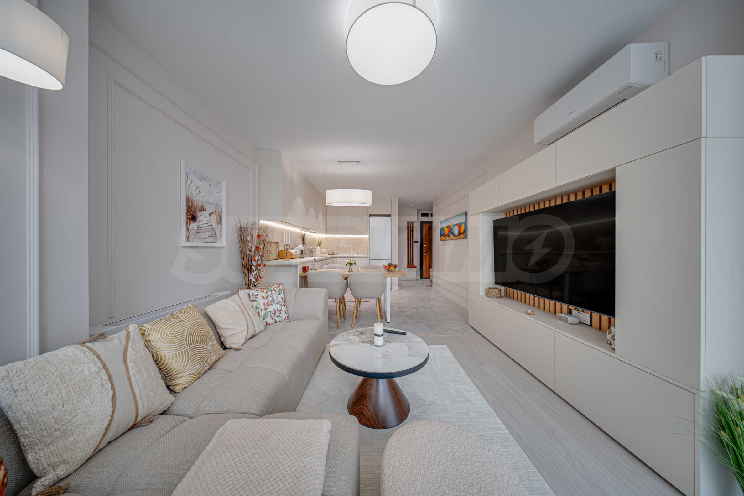 • bright living room with modern kitchen;