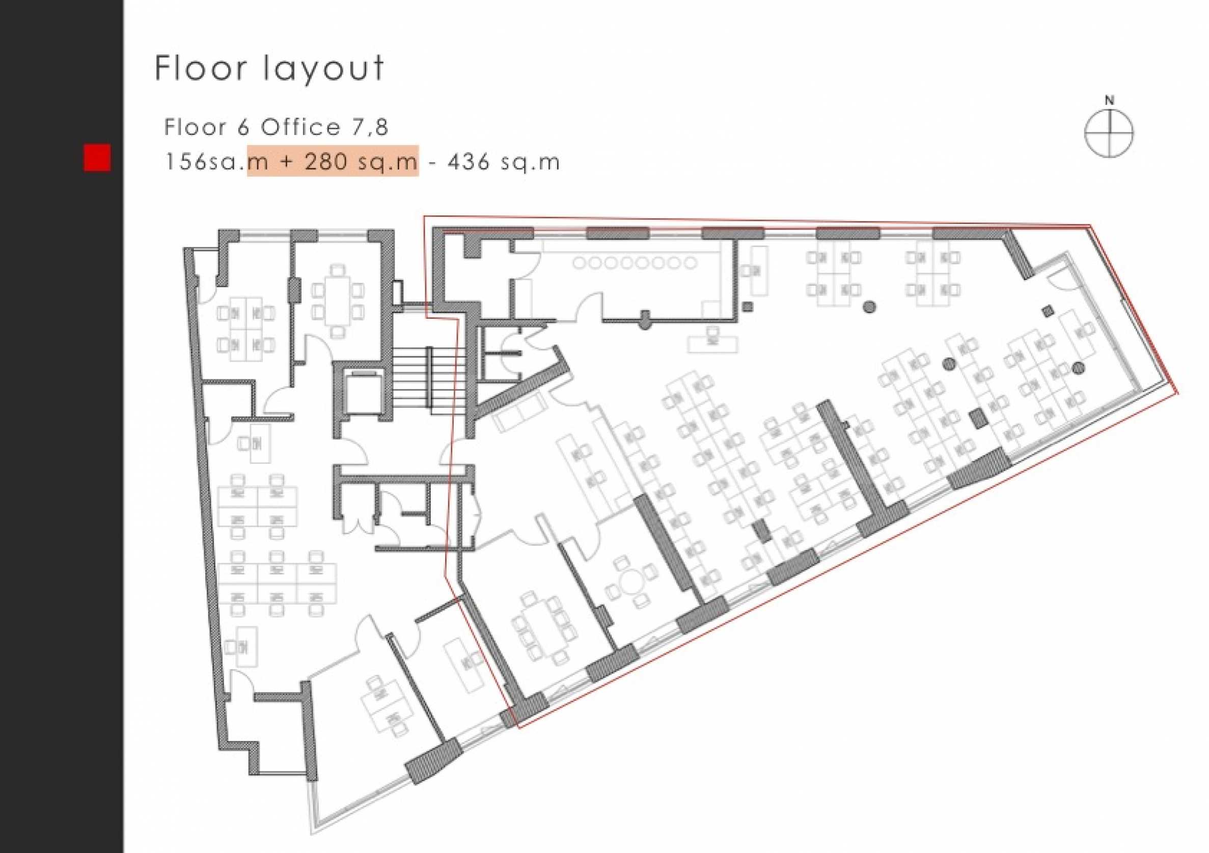 We present a spacious office for rent with an area of 279 sq m, located in a luxurious business building with class A office space.