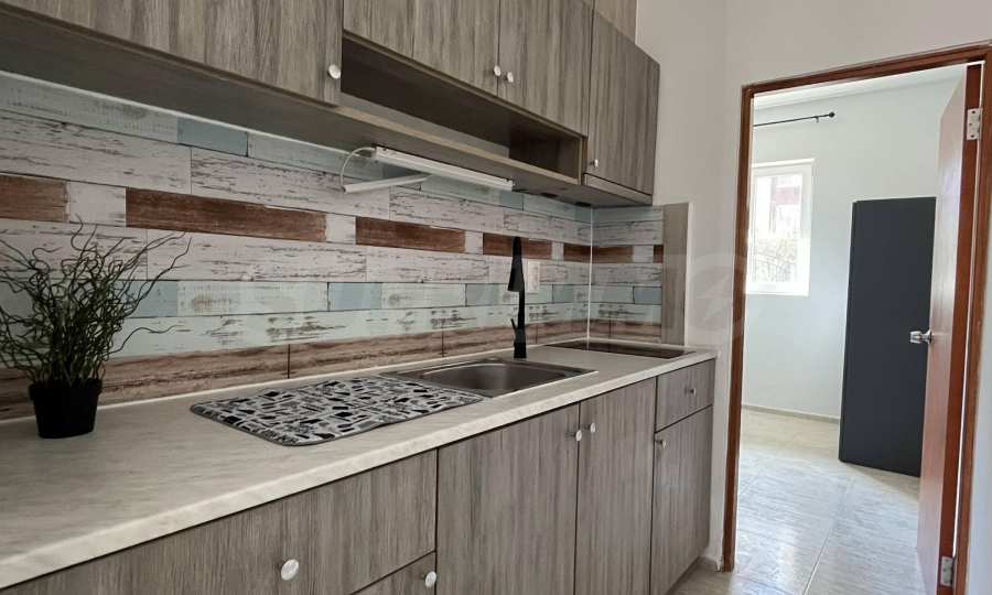 The apartment is after a major renovation, comfortably furnished with brand new furniture and appliances. The flooring is made of granite tiles in the living room and bedroom, the walls are painted with latex, the bathroom has terracotta tiles and sanitary ware by Ideal Standard. The heating is via a new inverter air conditioner.