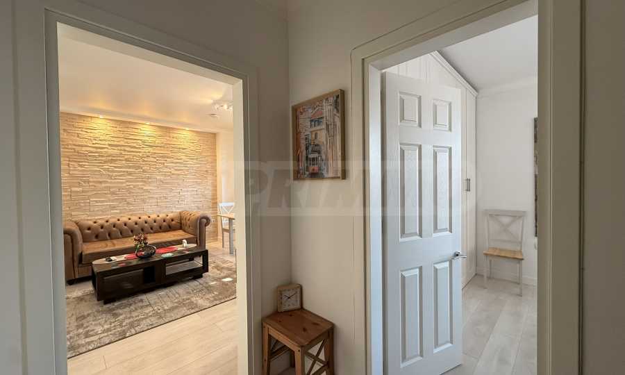 We present for rent a cozy and stylish one-bedroom apartment, located in the central part of Plovdiv, on a quiet and peaceful street, in close proximity to the Maritsa River. The location is excellent - close to a school, kindergarten, public transport stops, shops and all the amenities of the city.
