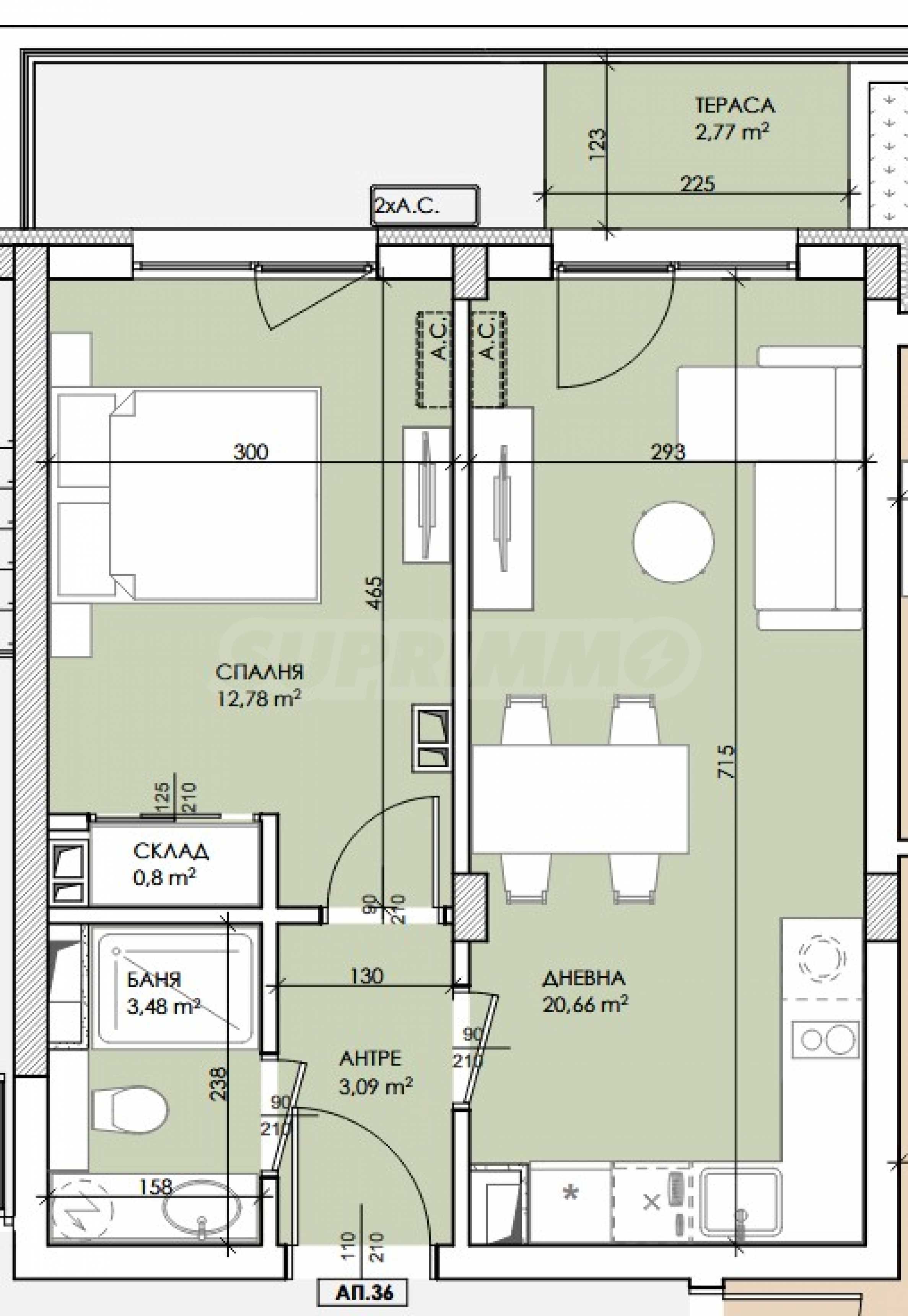 The apartment is rented out in the following degree of completion according to Bulgarian Civil Code: