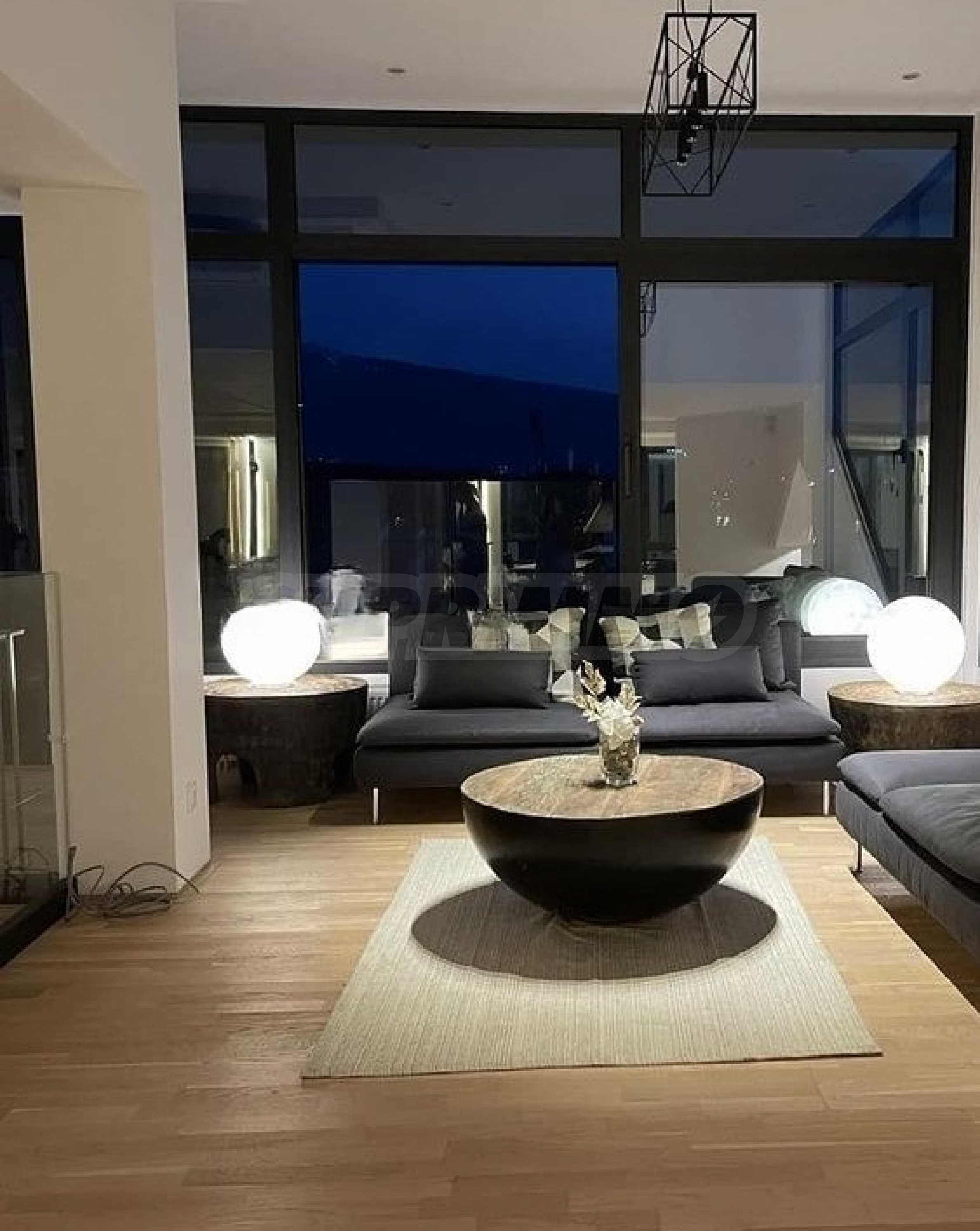 The property impresses with a unique concept, combining private gardens at ground level and a panoramic roof terrace, as well as stunning 360° views - towards Vitosha Mountain to the south and towards the St. Alexander Nevsky Cathedral to the north and west.