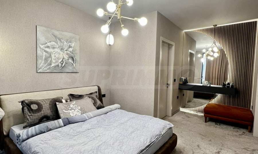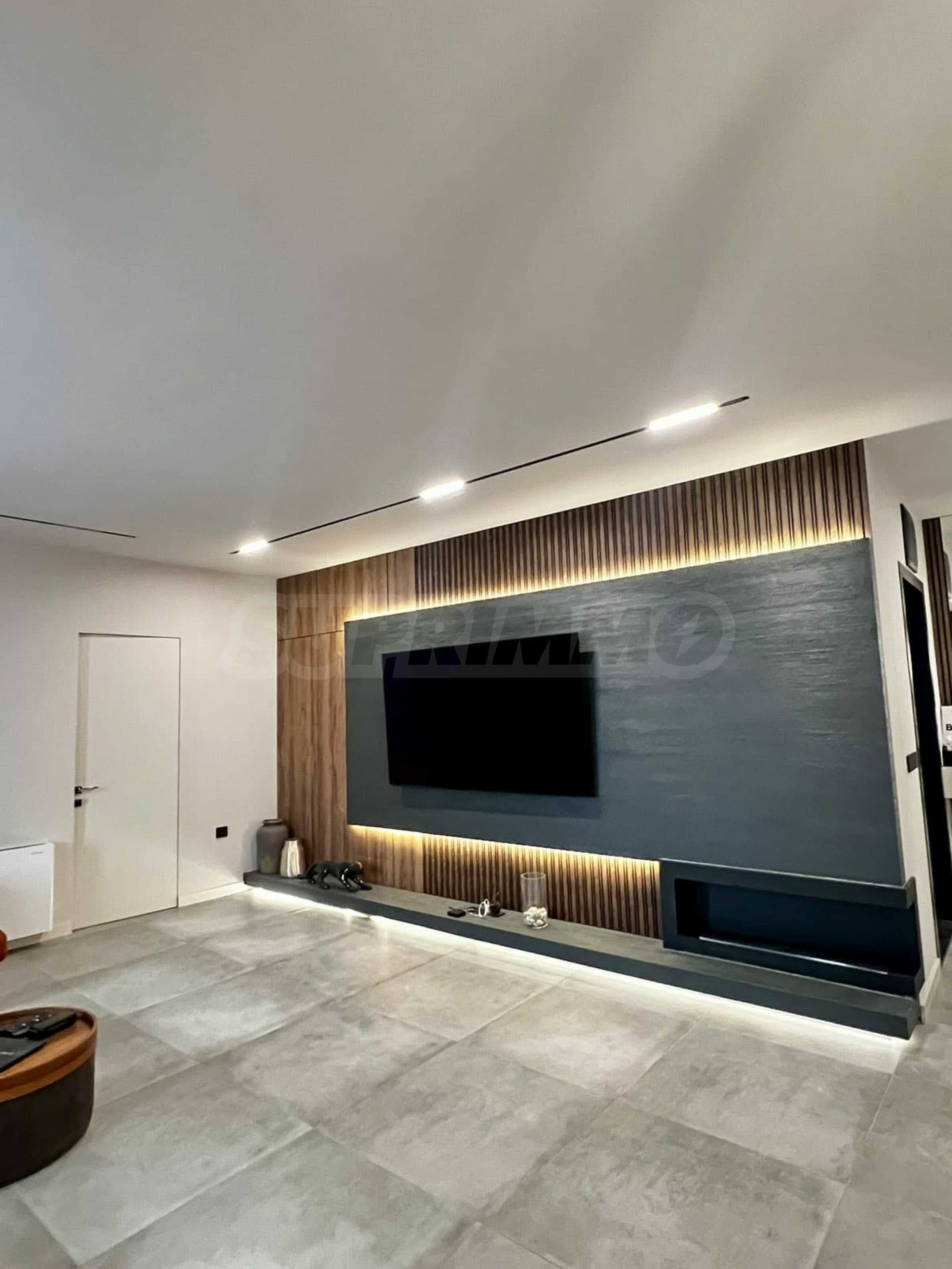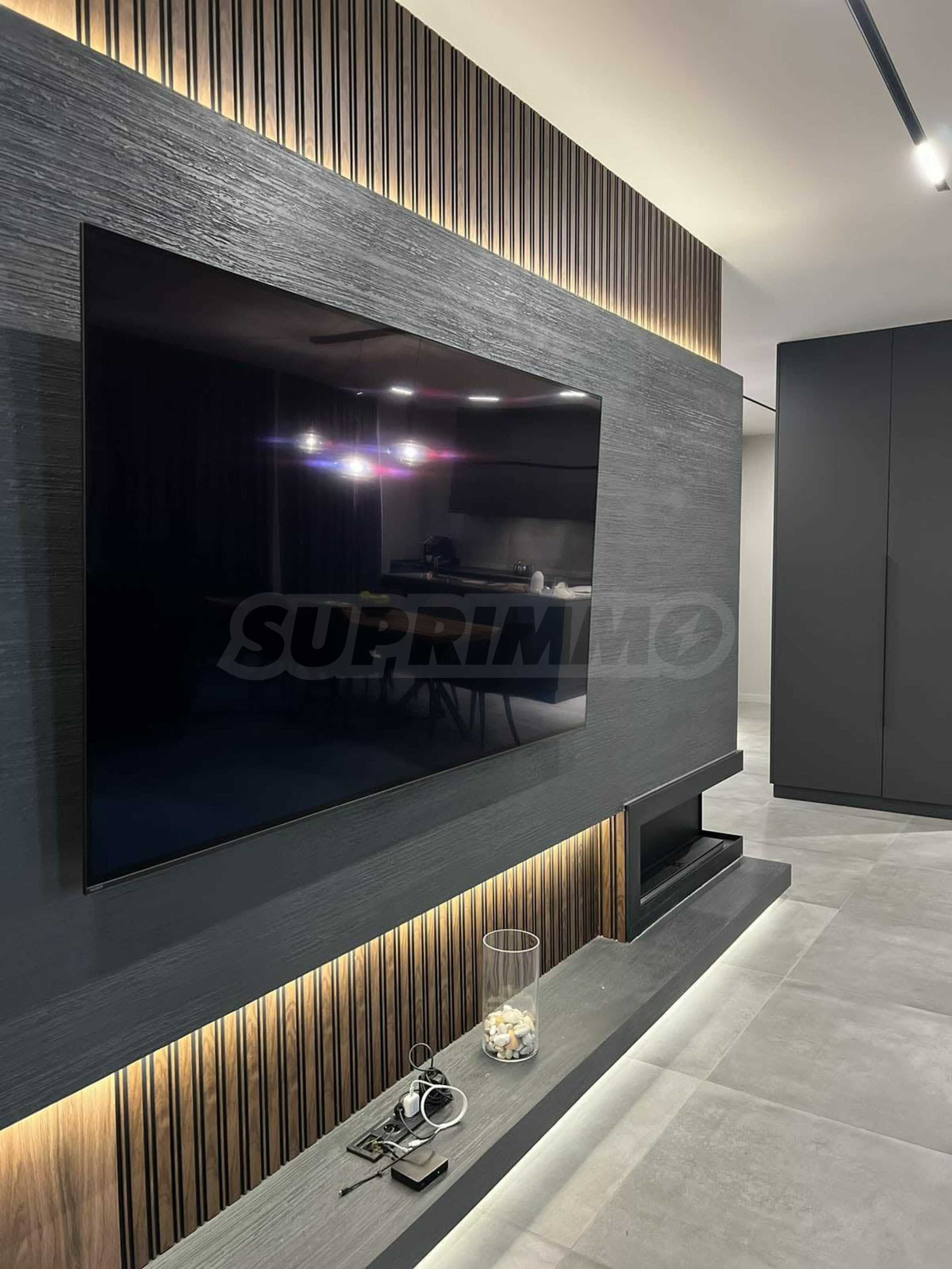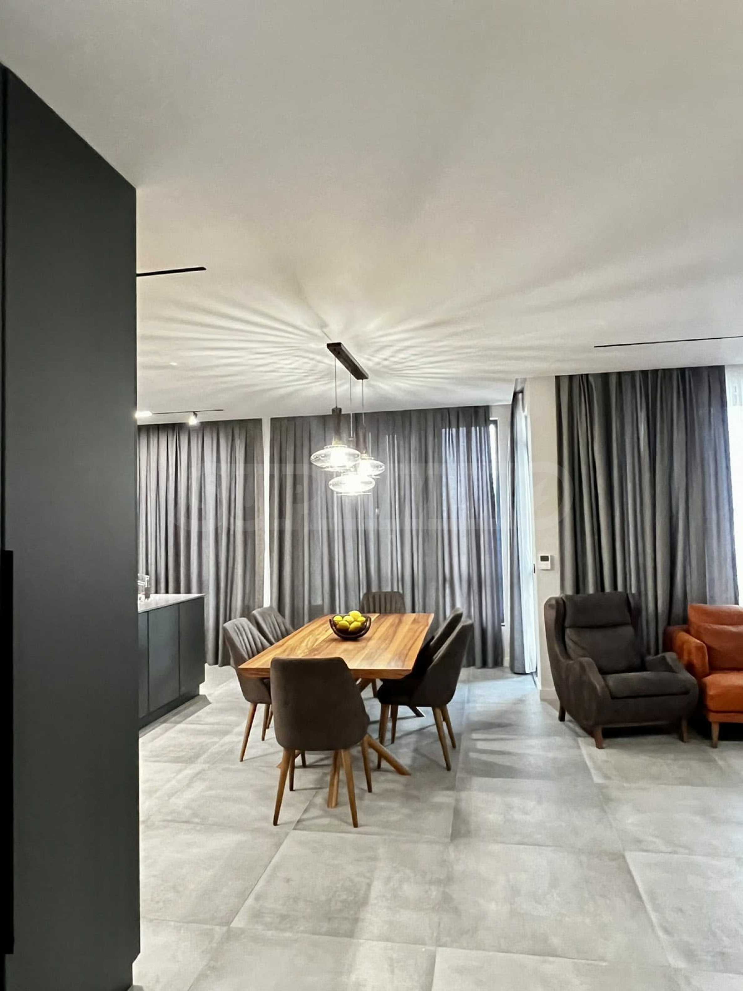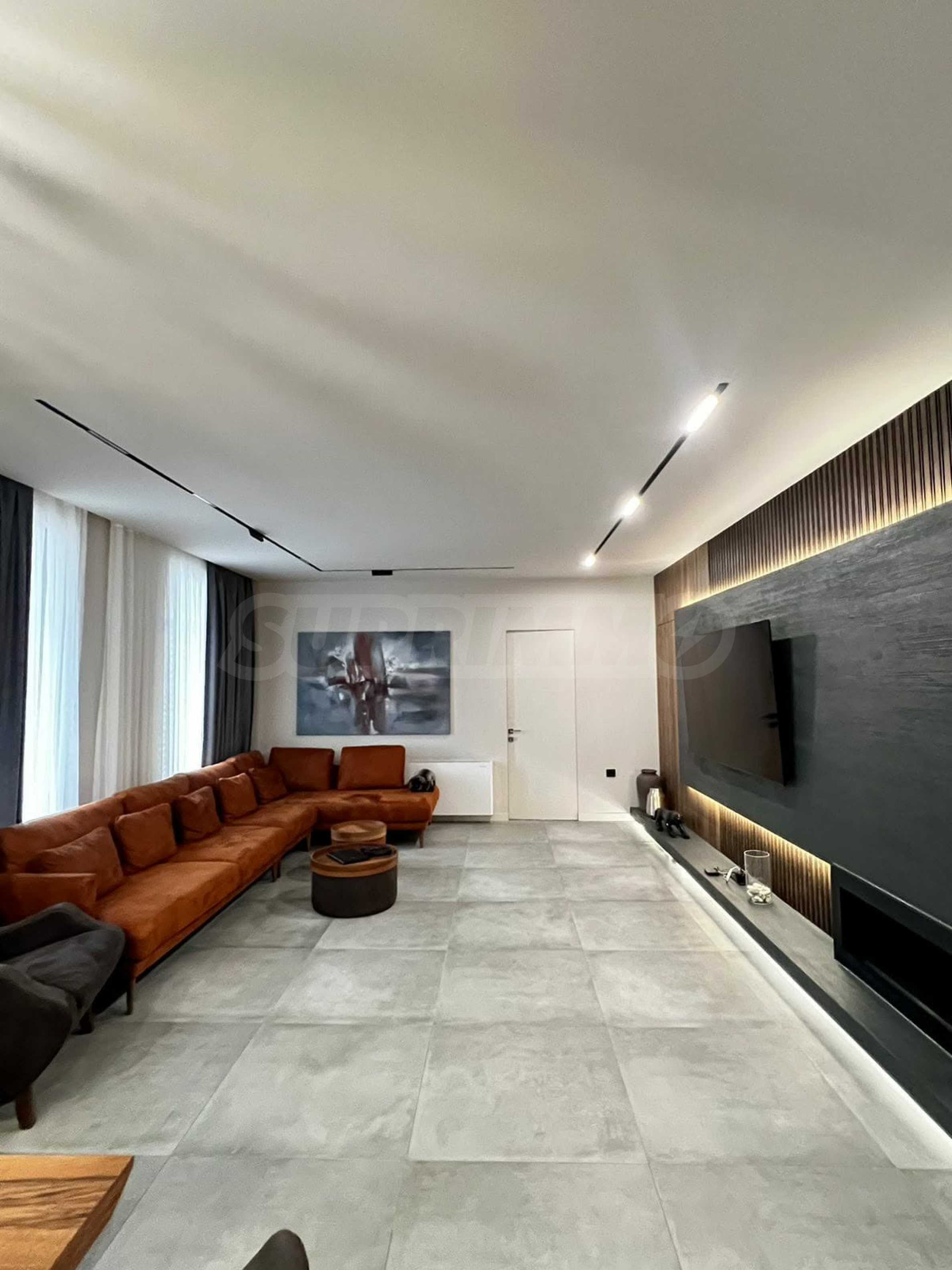 The apartment is fully furnished and equipped with the highest class appliances, kitchen equipment and designer furniture. With external and internal insulation of the highest quality materials, seven-chamber windows and high energy efficiency. Heating and cooling are solved by underfloor heating and a heat pump.