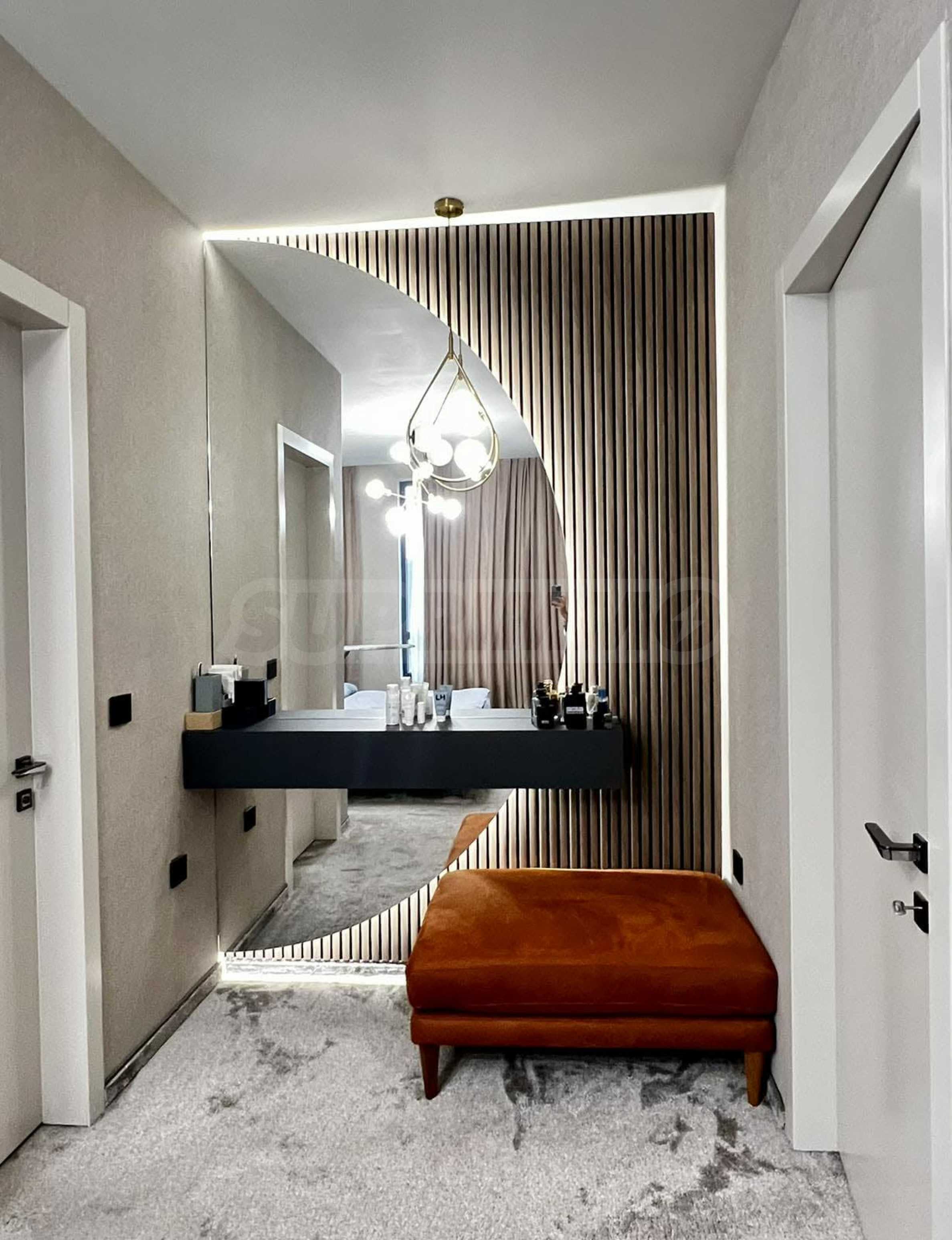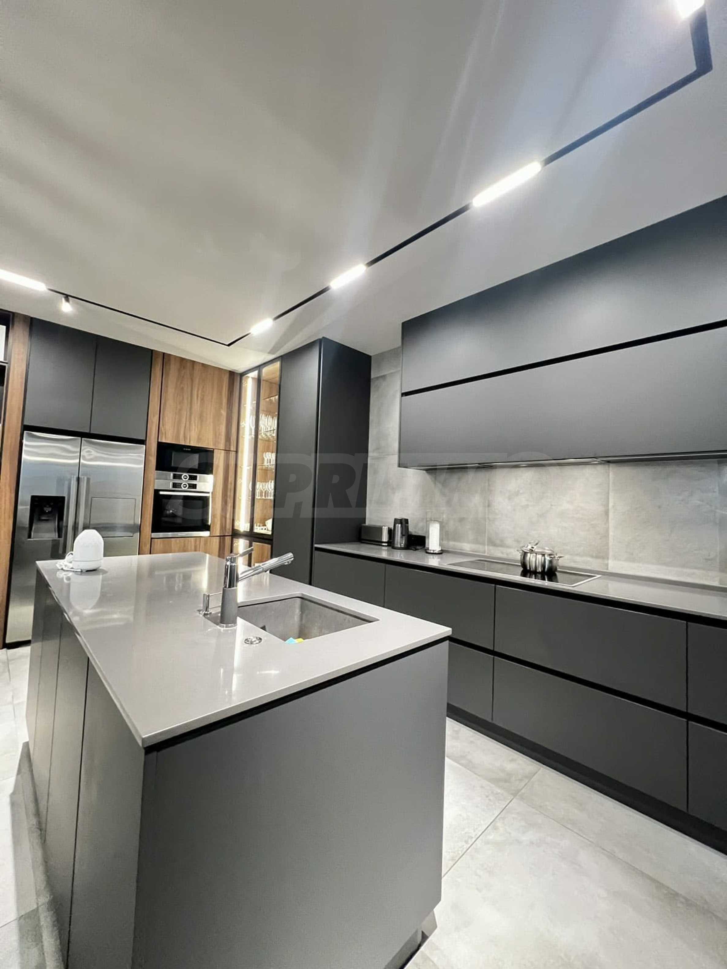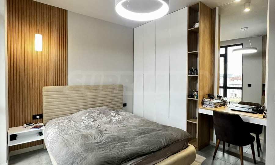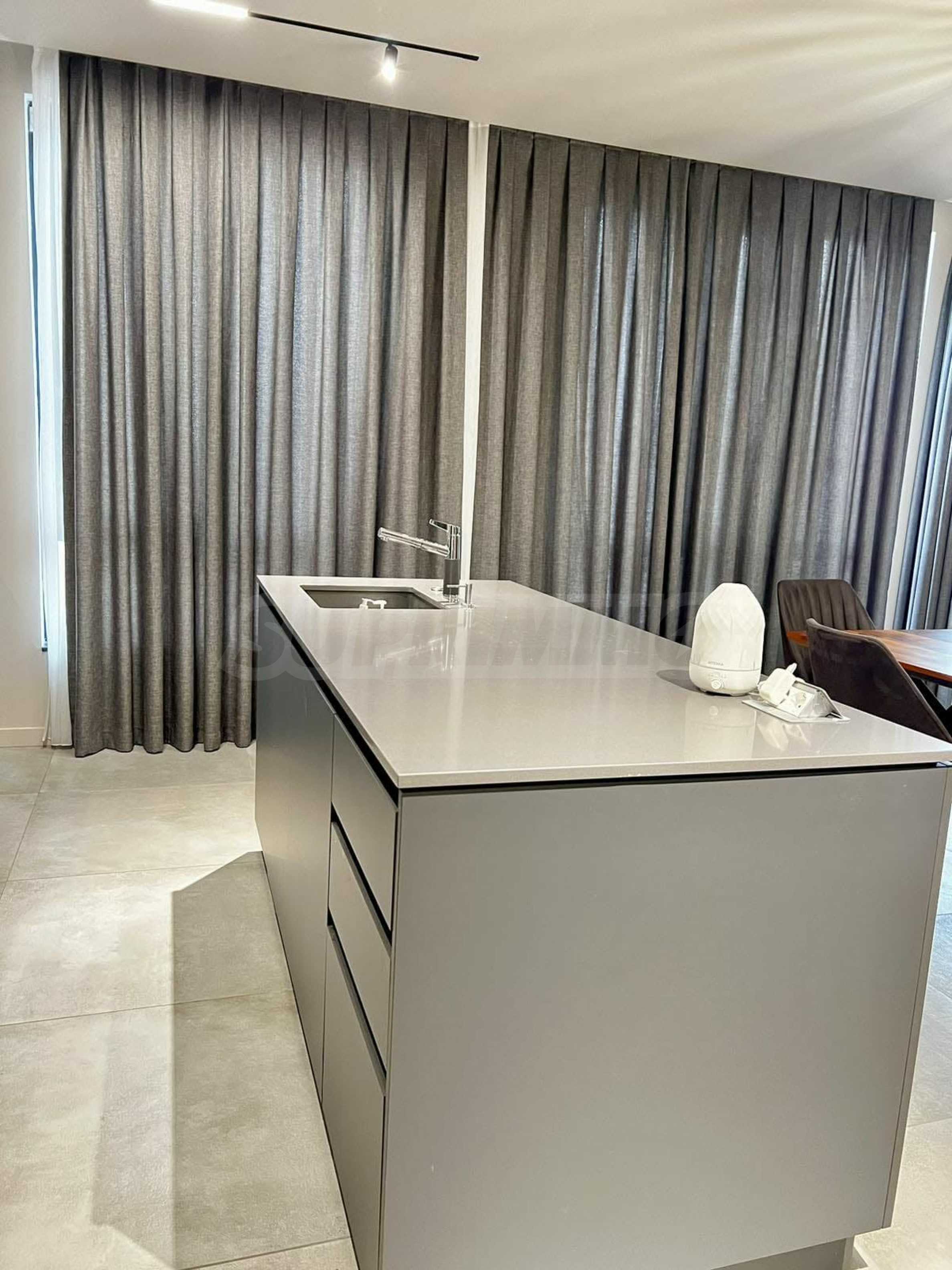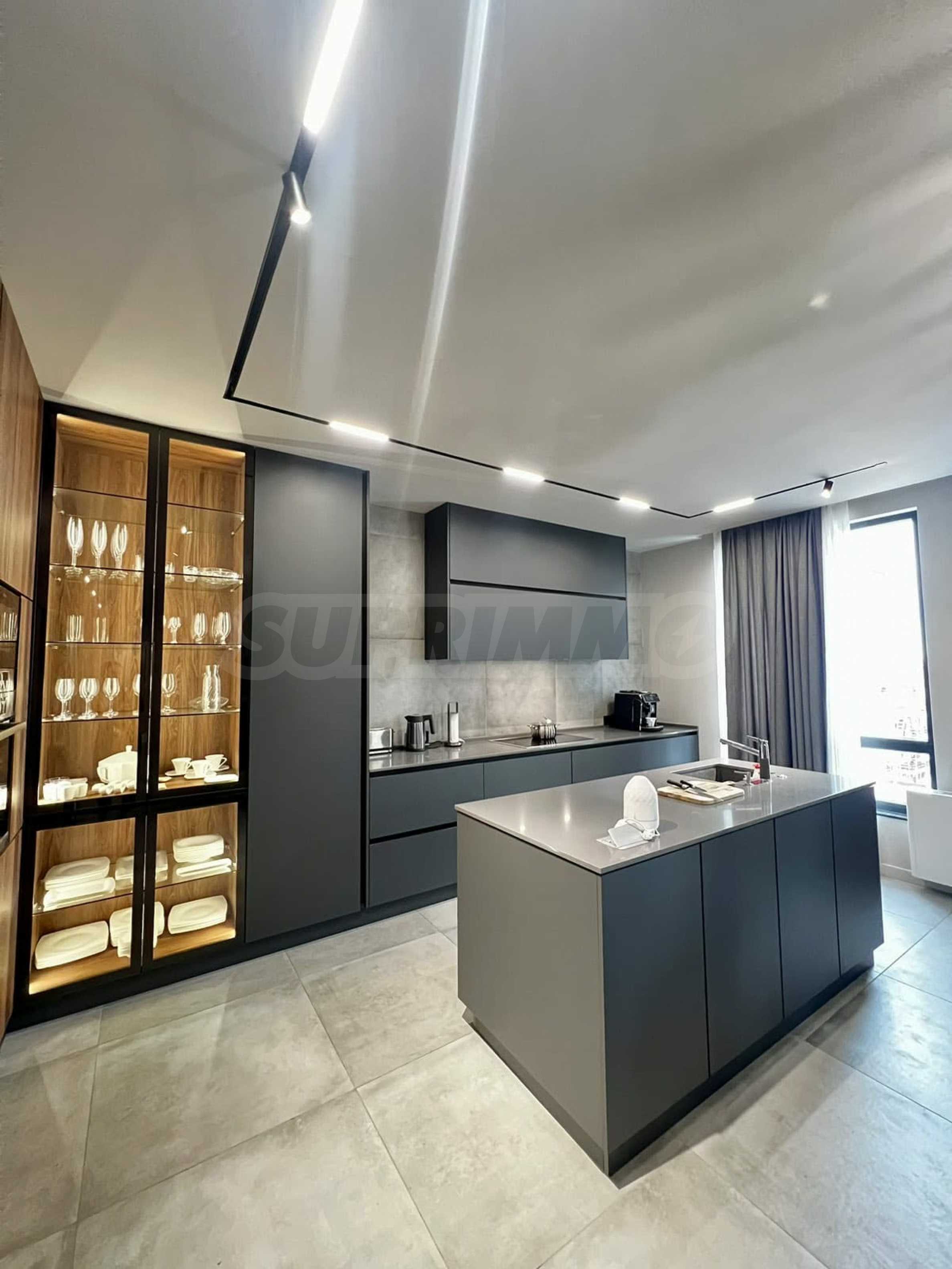 The apartment is fully furnished and equipped with the highest class appliances, kitchen equipment and designer furniture. With external and internal insulation of the highest quality materials, seven-chamber windows and high energy efficiency. Heating and cooling are solved by underfloor heating and a heat pump.