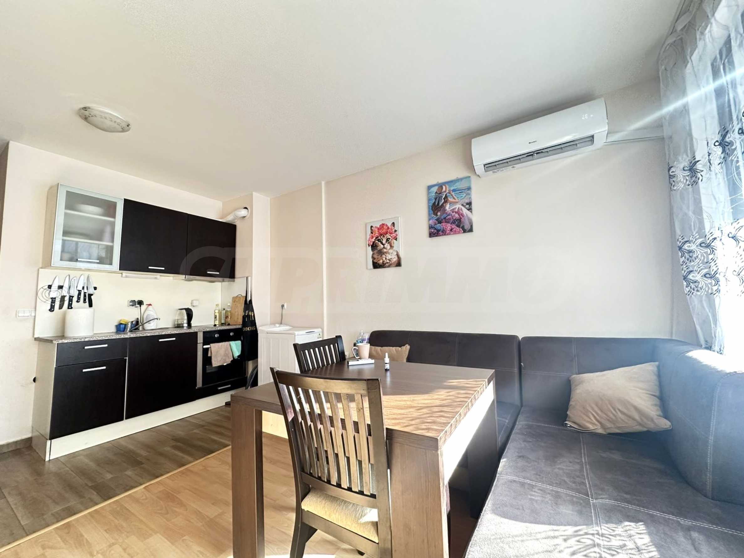 • Living room with corner sofa, balcony, equipped kitchenette, dining table;