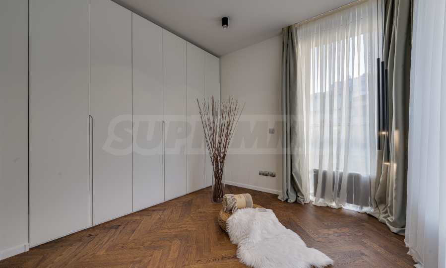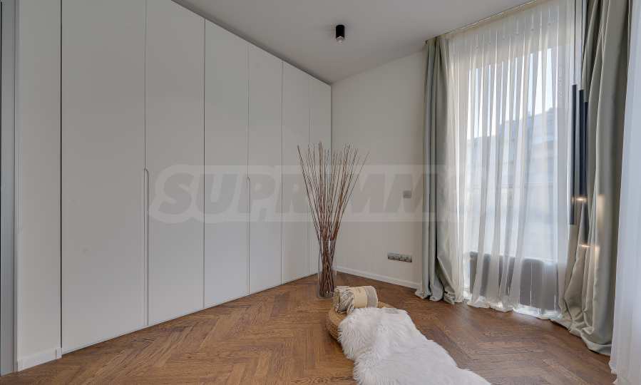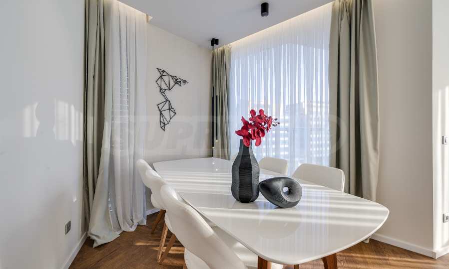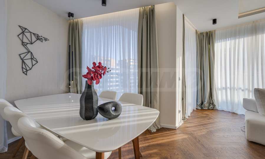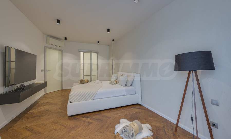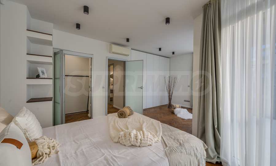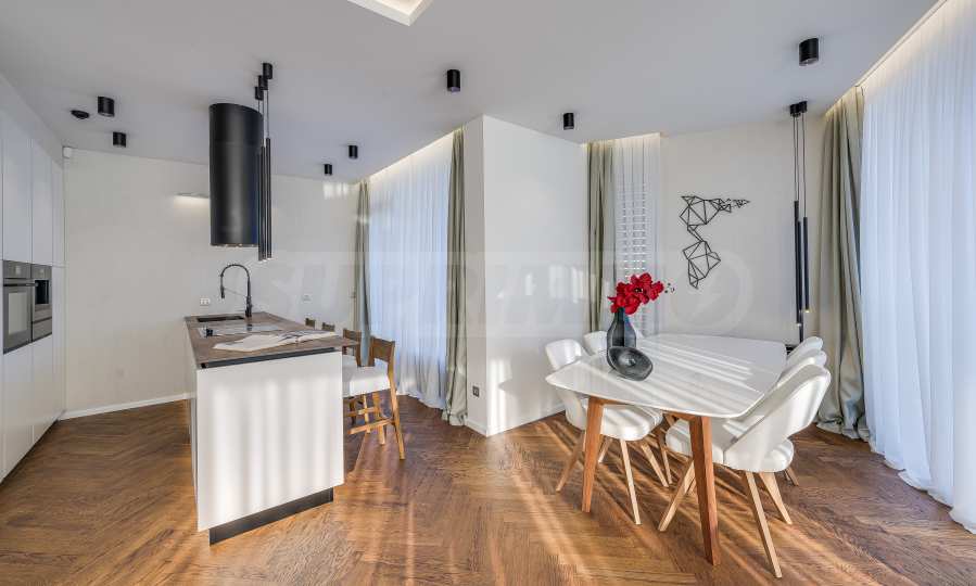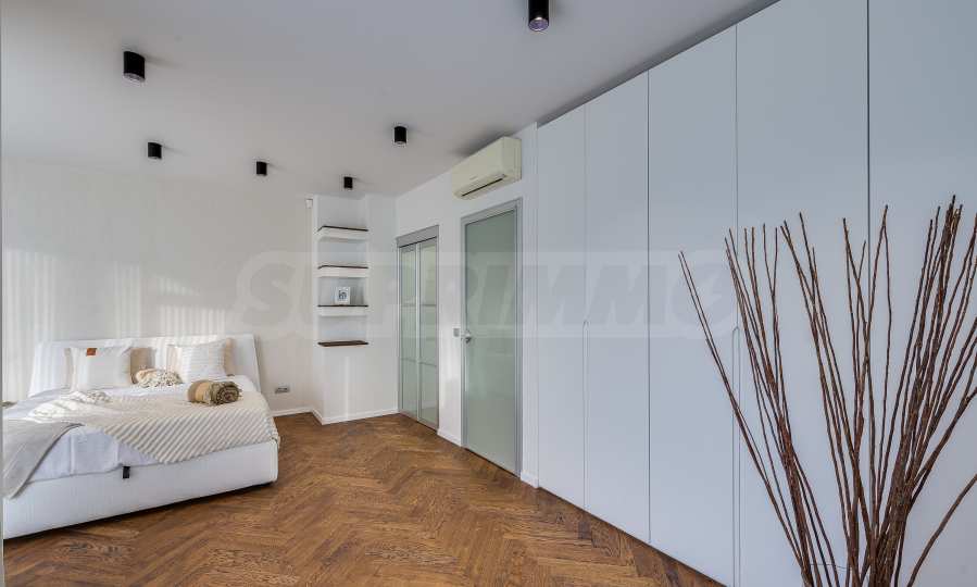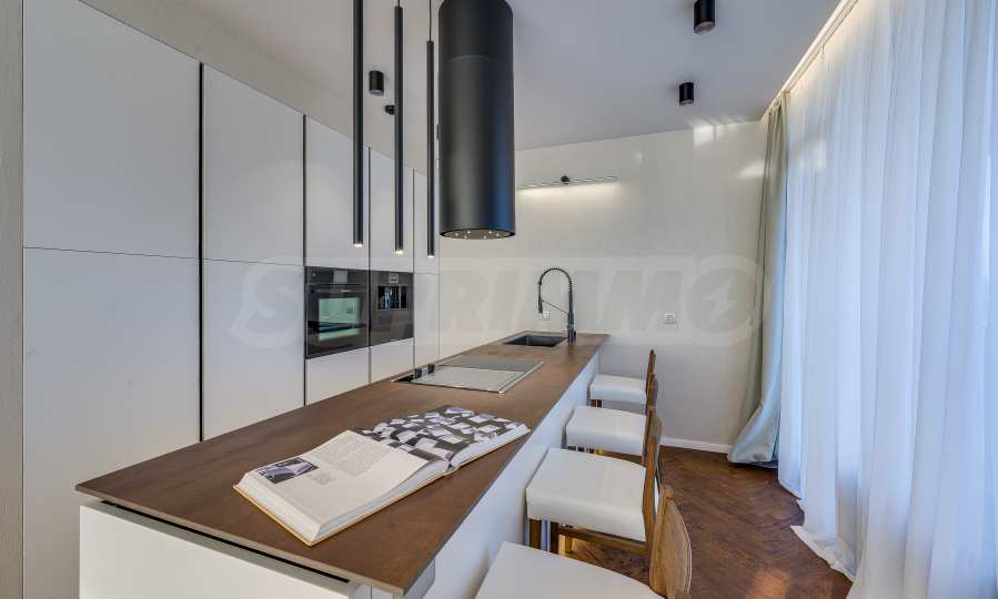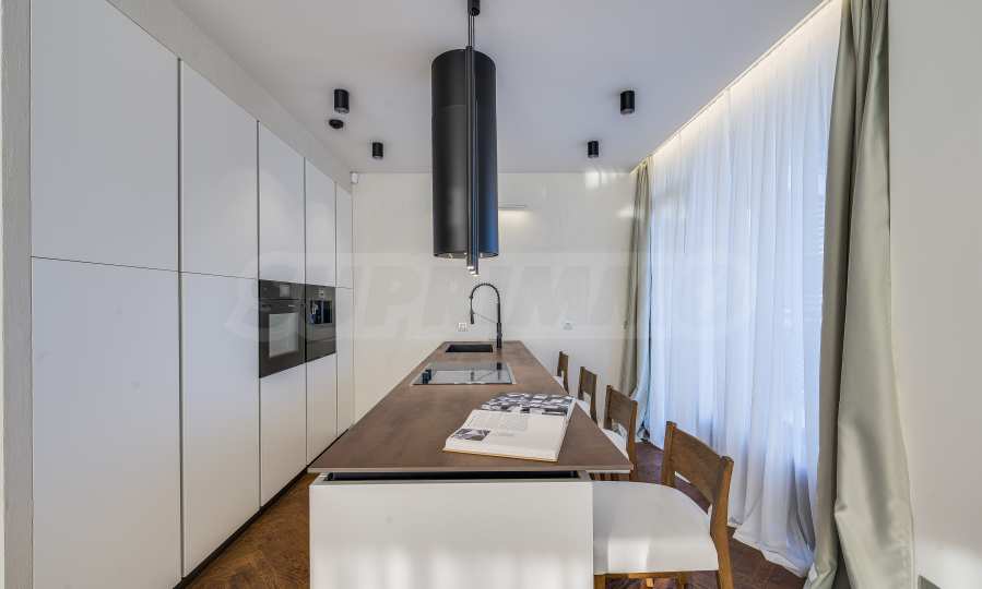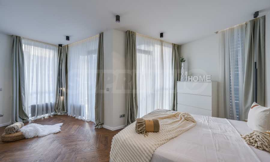 The furnitures include stylish designer Italian furniture, selected black and white appliances, designer lighting and finely selected decorative elements, arranged with attention to every detail and in complete harmony with the overall interior concept. The spacious rooms feature high ceilings and large French windows, which provide an abundance of natural light and reveal impressive views of Vitosha Mountain.