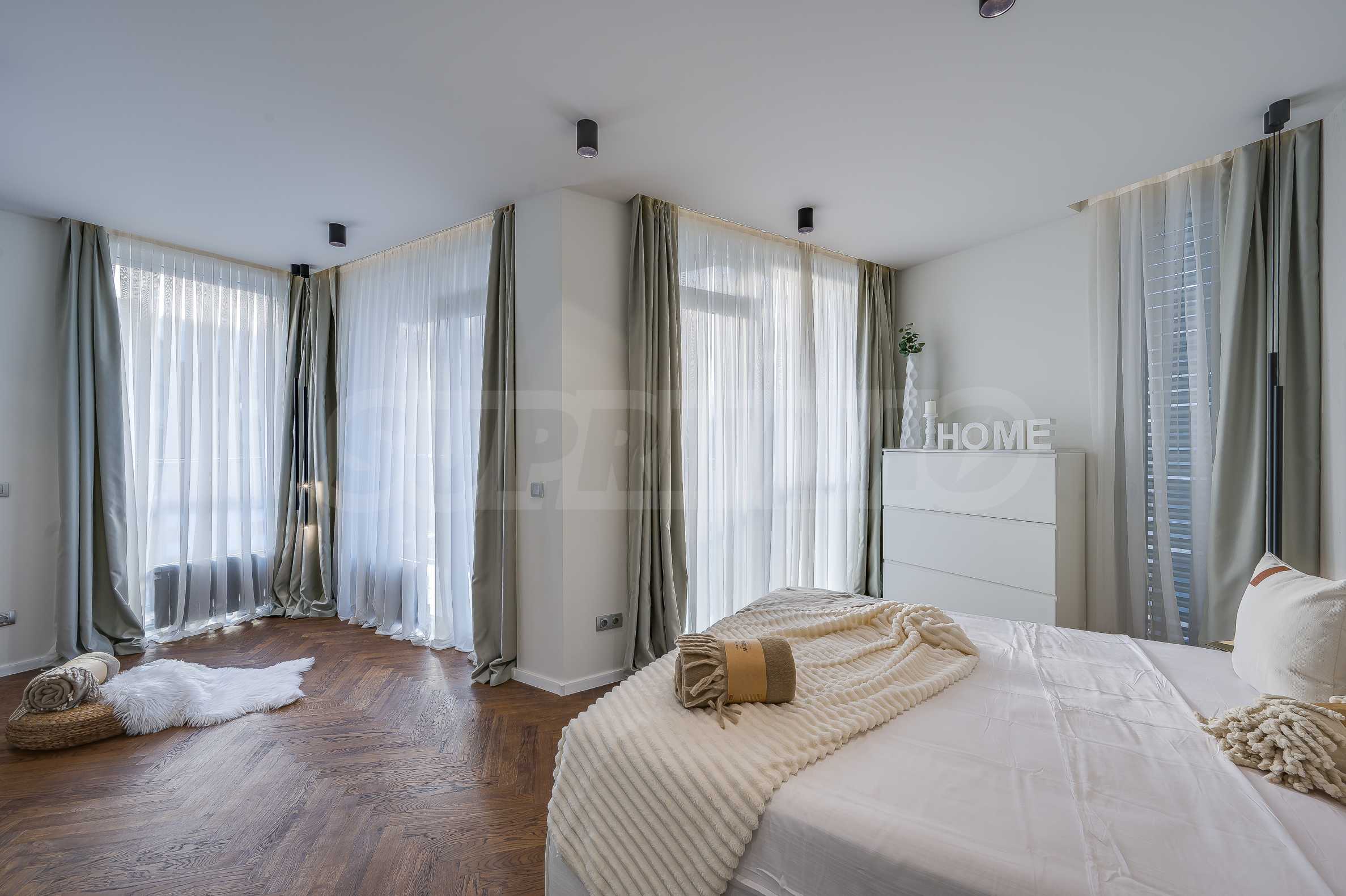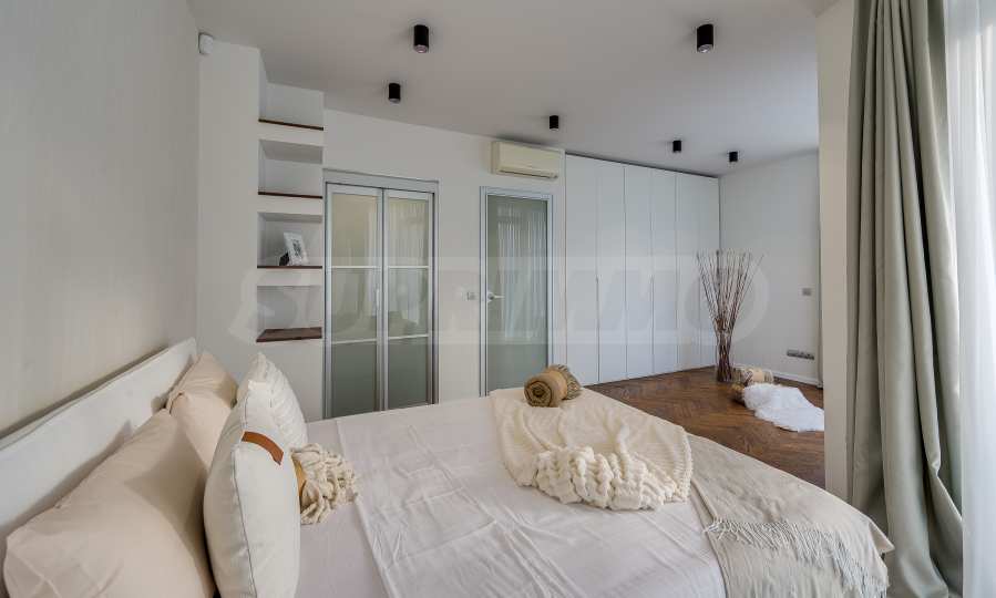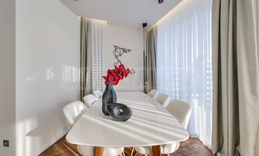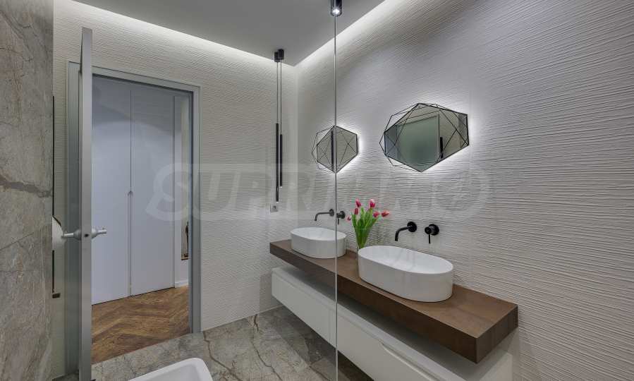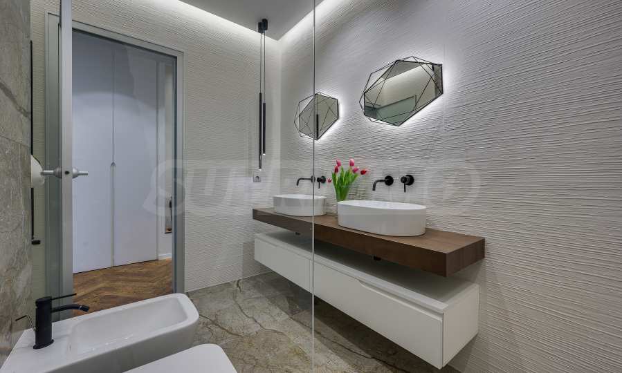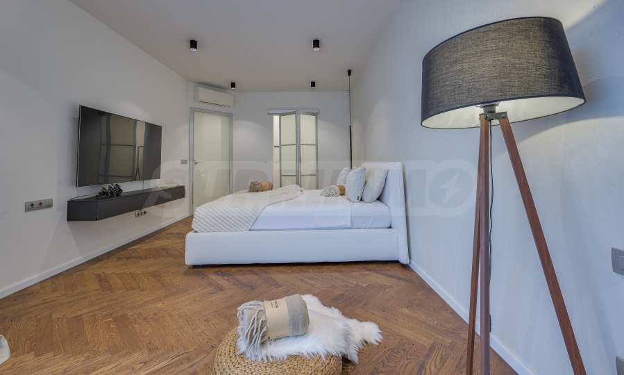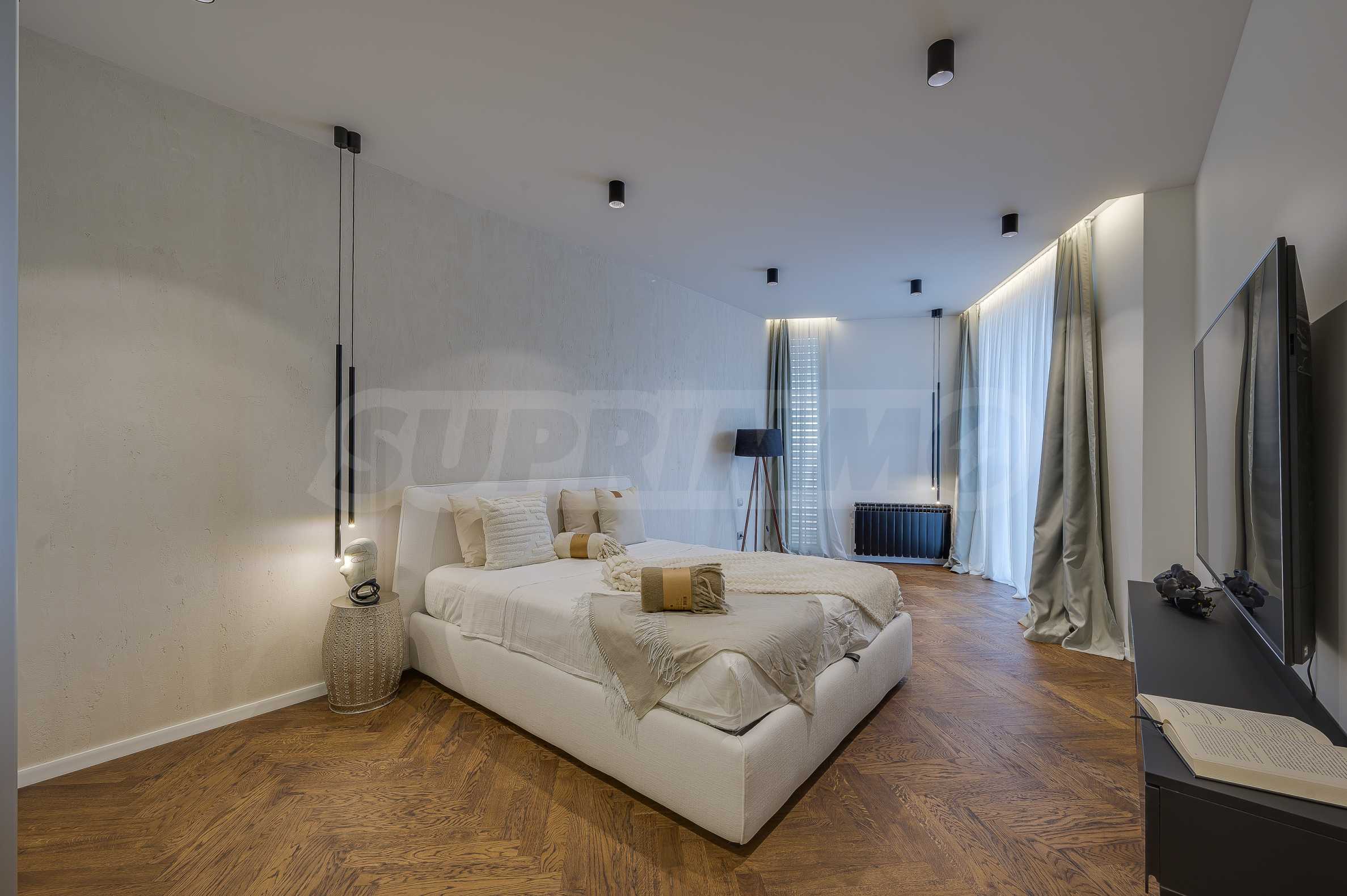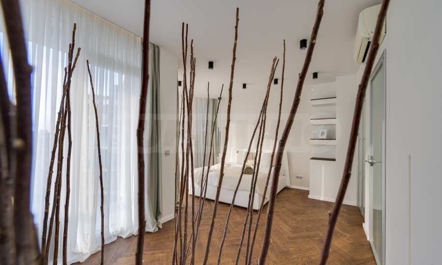 The furnitures include stylish designer Italian furniture, selected black and white appliances, designer lighting and finely selected decorative elements, arranged with attention to every detail and in complete harmony with the overall interior concept. The spacious rooms feature high ceilings and large French windows, which provide an abundance of natural light and reveal impressive views of Vitosha Mountain.
