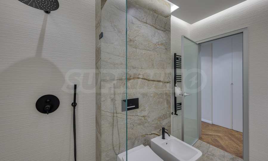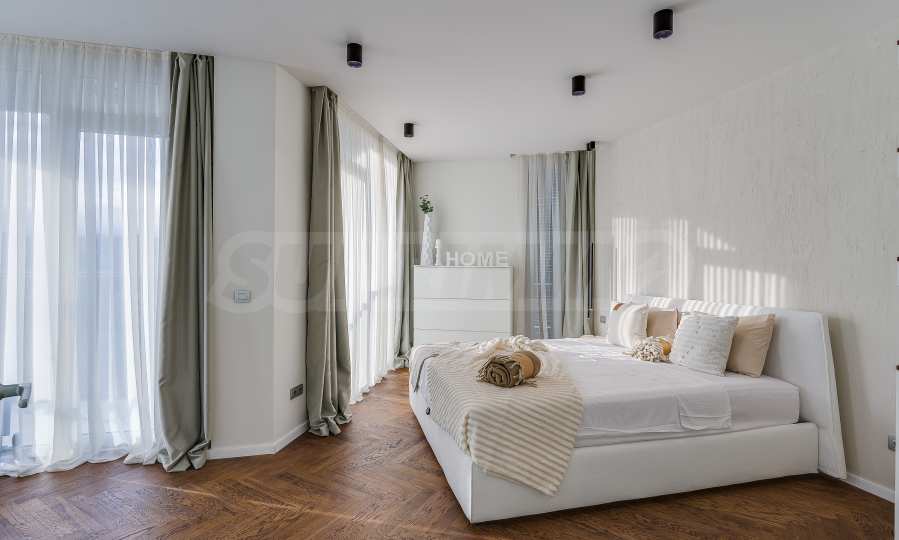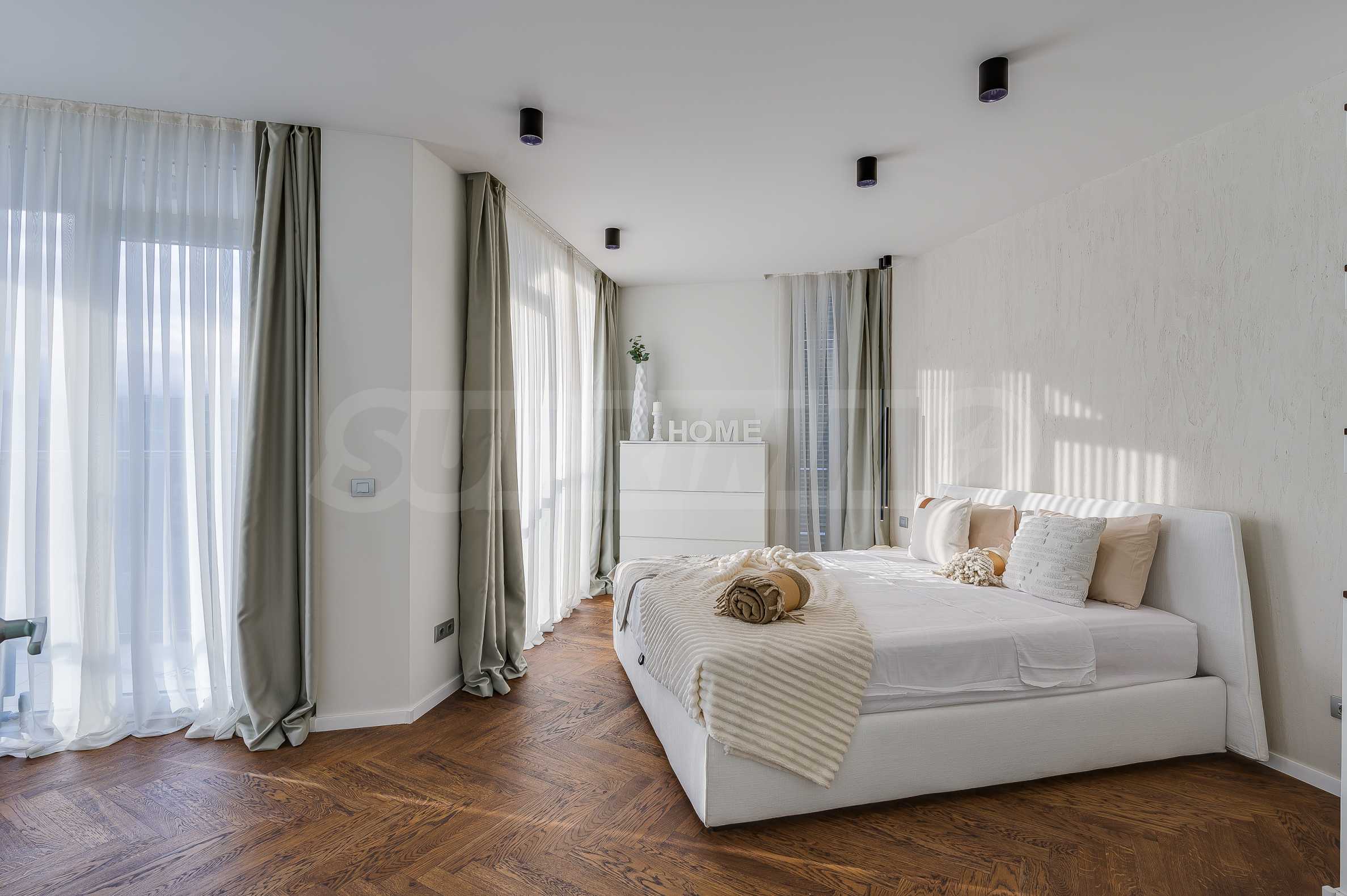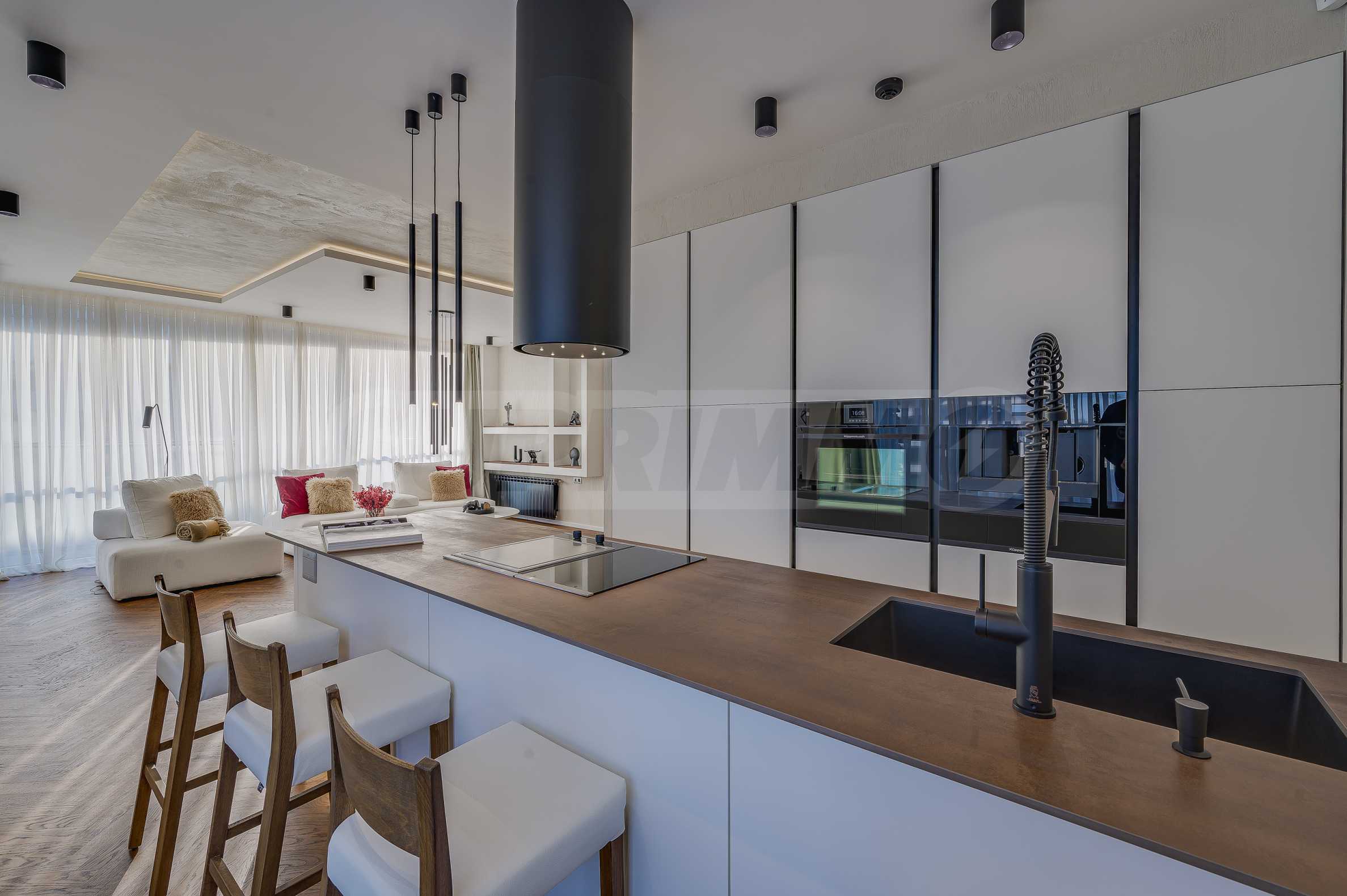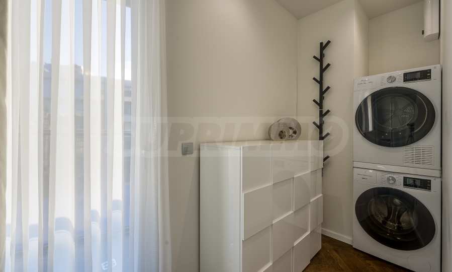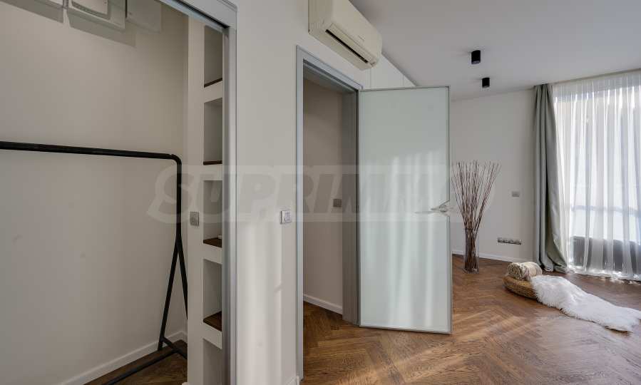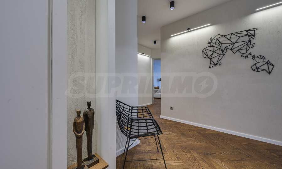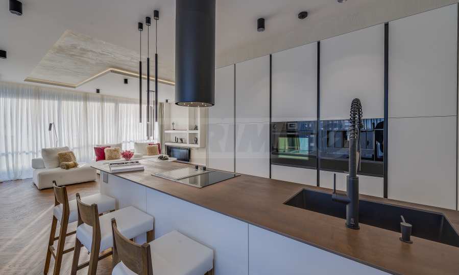 The furnitures include stylish designer Italian furniture, selected black and white appliances, designer lighting and finely selected decorative elements, arranged with attention to every detail and in complete harmony with the overall interior concept. The spacious rooms feature high ceilings and large French windows, which provide an abundance of natural light and reveal impressive views of Vitosha Mountain.