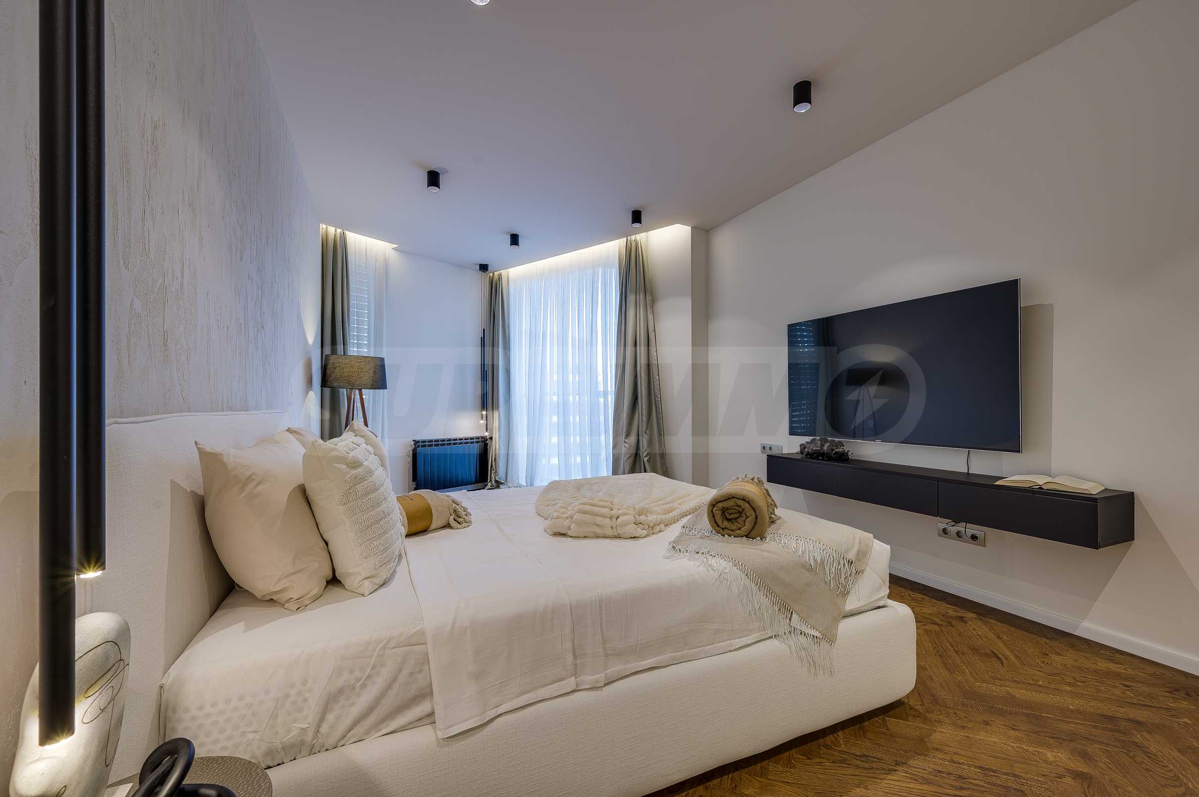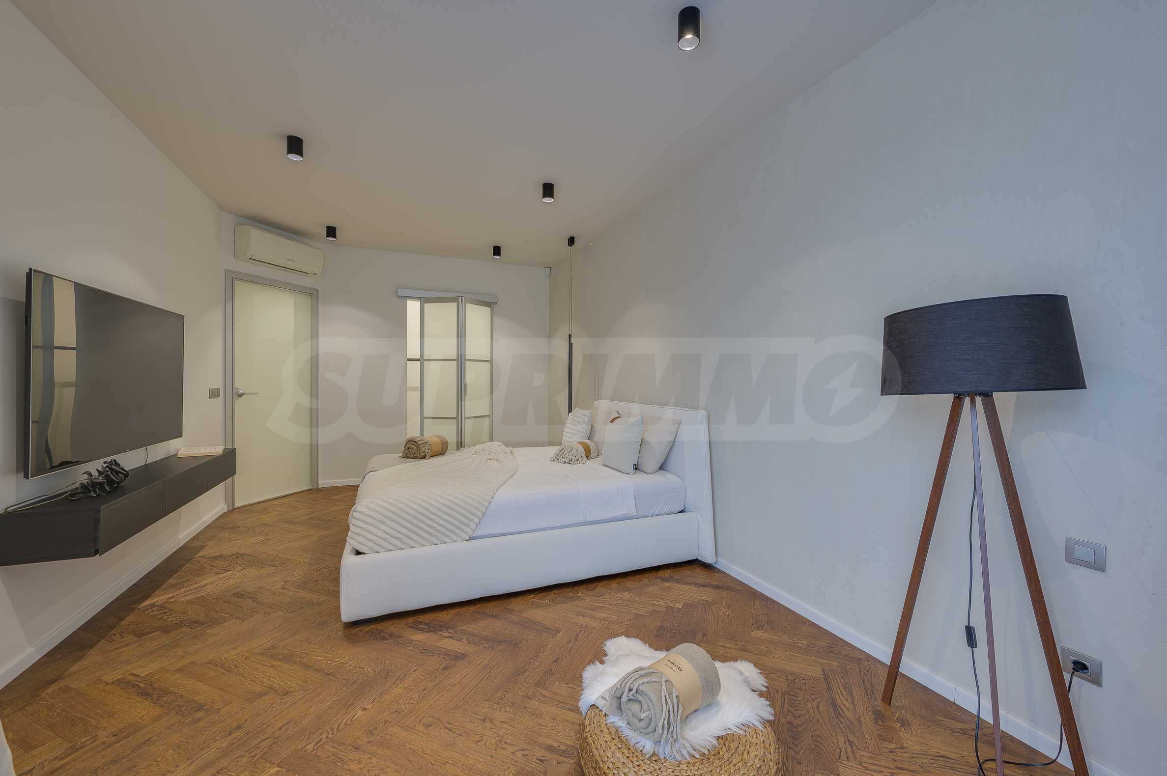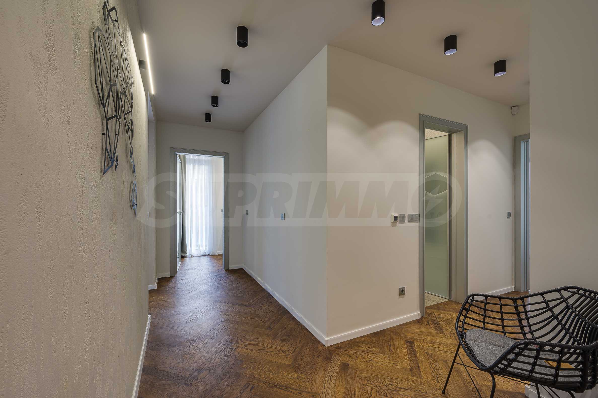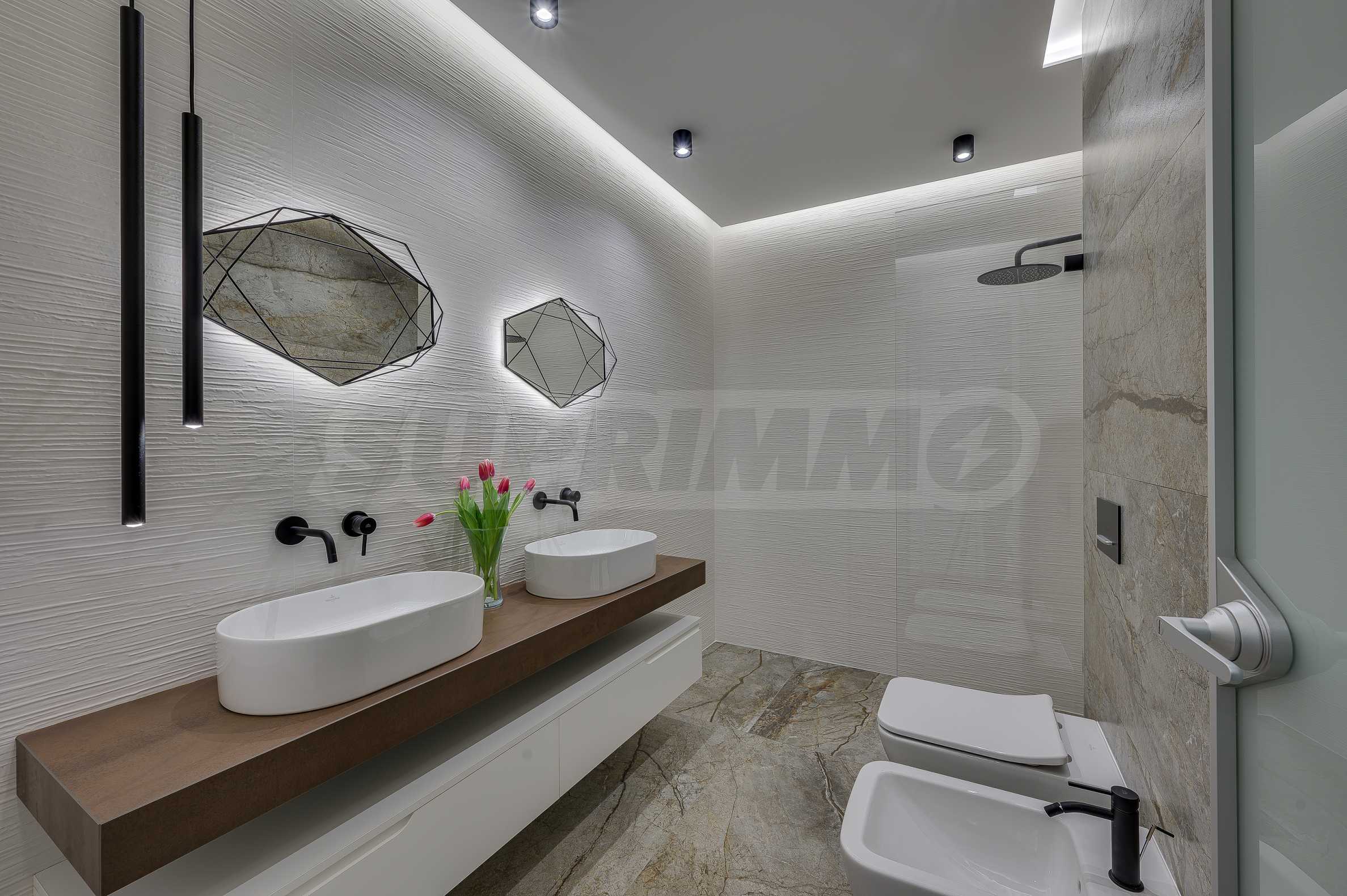 The furnitures include stylish designer Italian furniture, selected black and white appliances, designer lighting and finely selected decorative elements, arranged with attention to every detail and in complete harmony with the overall interior concept. The spacious rooms feature high ceilings and large French windows, which provide an abundance of natural light and reveal impressive views of Vitosha Mountain.