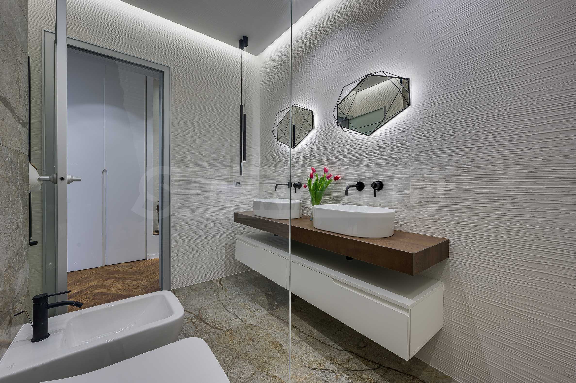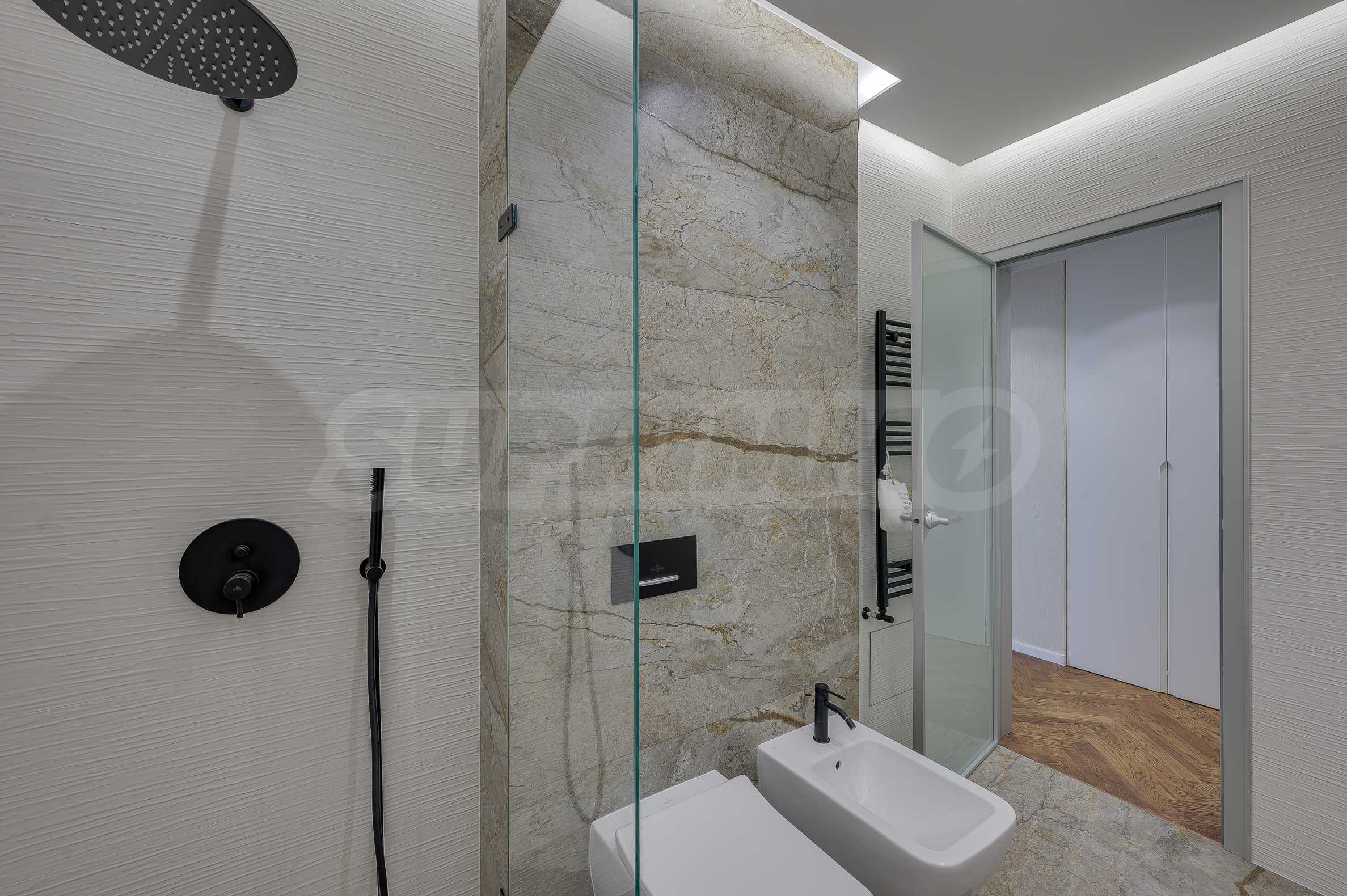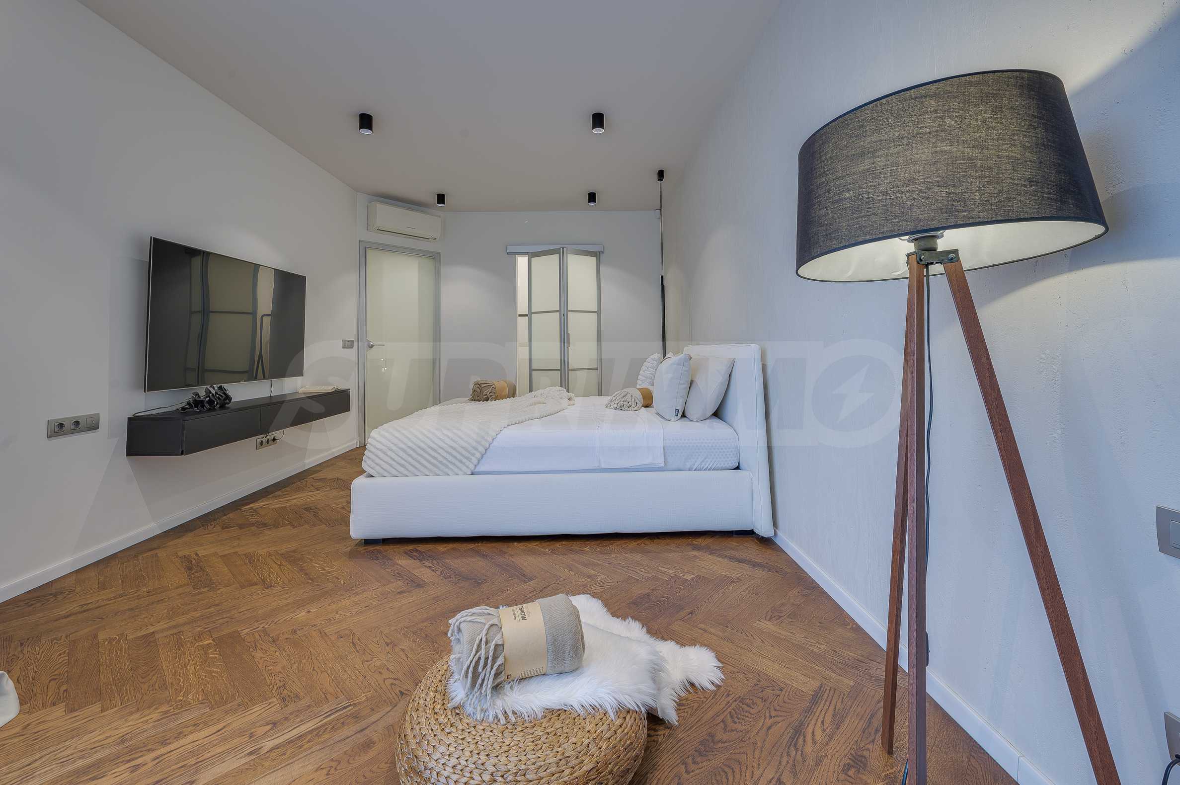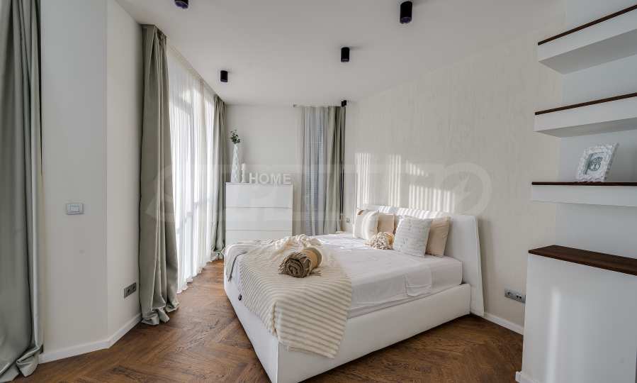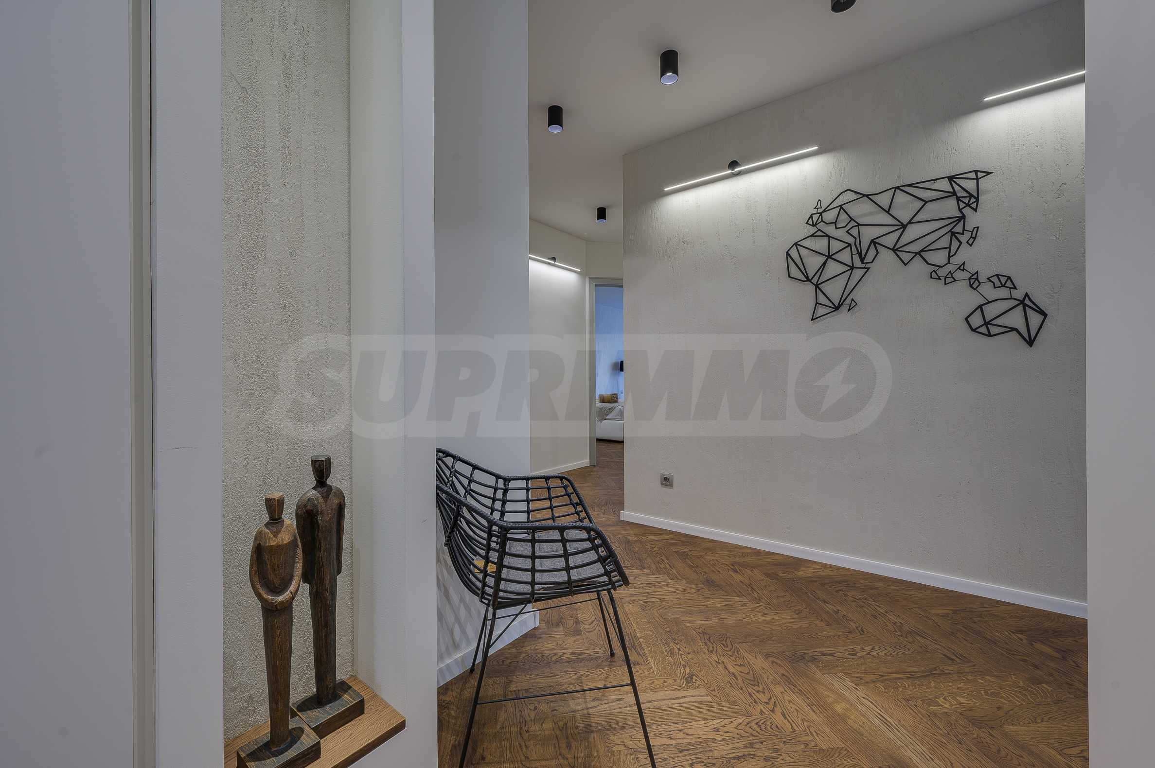 The furnitures include stylish designer Italian furniture, selected black and white appliances, designer lighting and finely selected decorative elements, arranged with attention to every detail and in complete harmony with the overall interior concept. The spacious rooms feature high ceilings and large French windows, which provide an abundance of natural light and reveal impressive views of Vitosha Mountain.