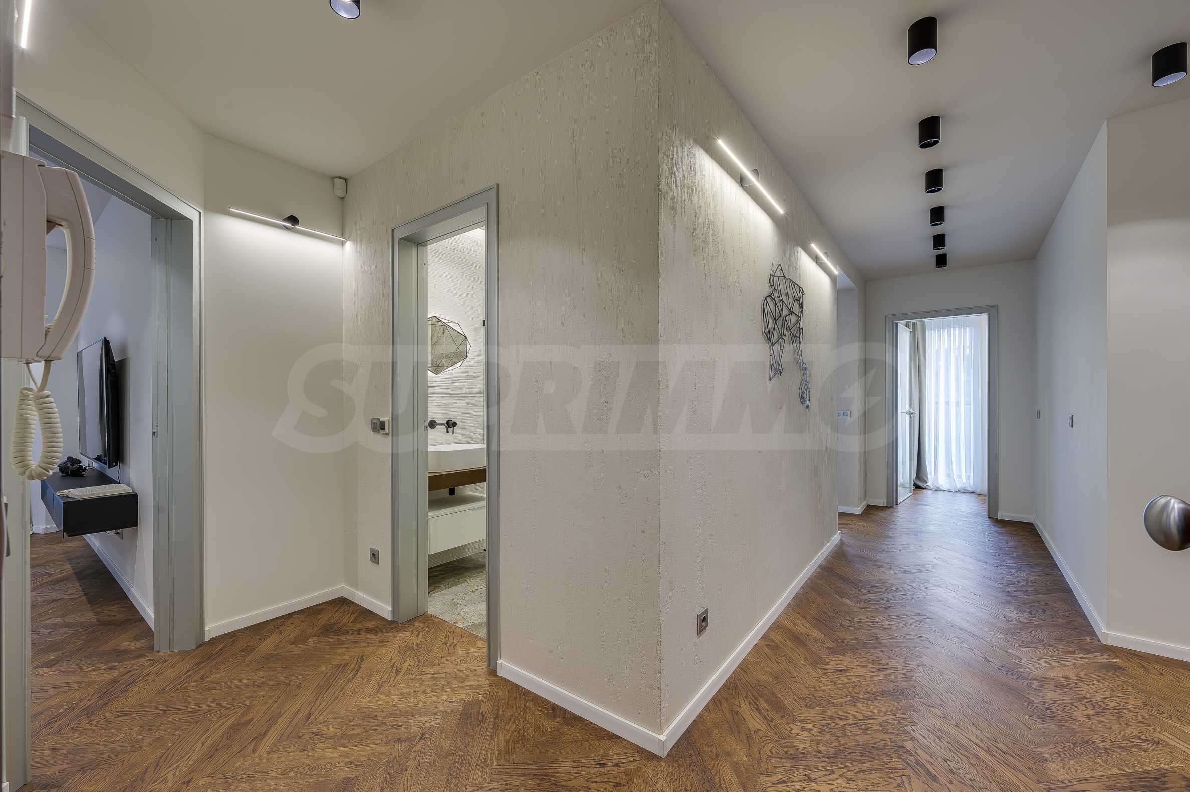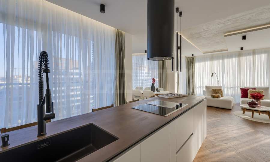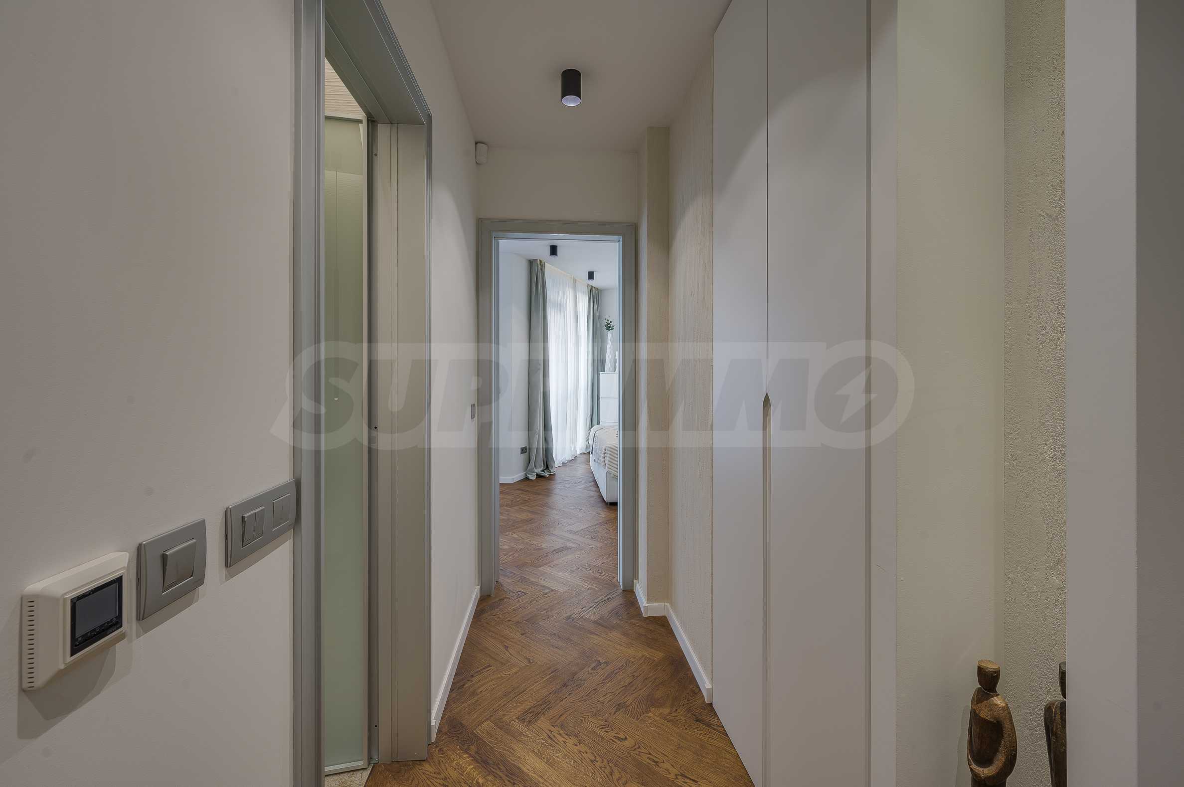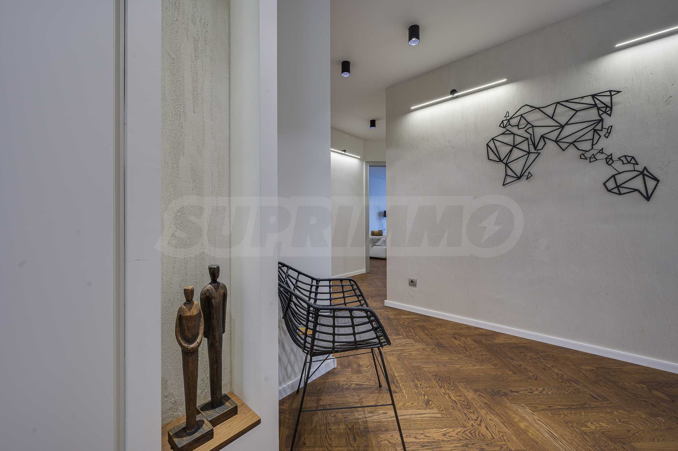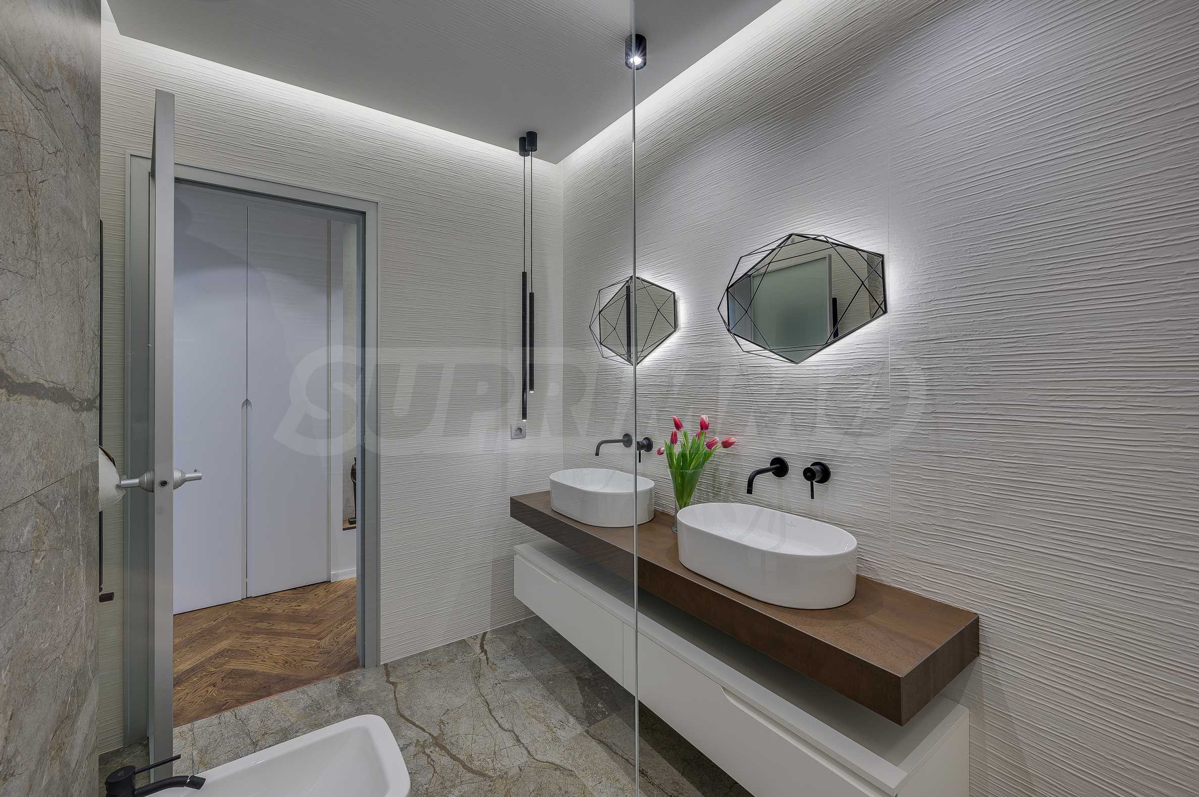 The furnitures include stylish designer Italian furniture, selected black and white appliances, designer lighting and finely selected decorative elements, arranged with attention to every detail and in complete harmony with the overall interior concept. The spacious rooms feature high ceilings and large French windows, which provide an abundance of natural light and reveal impressive views of Vitosha Mountain.
