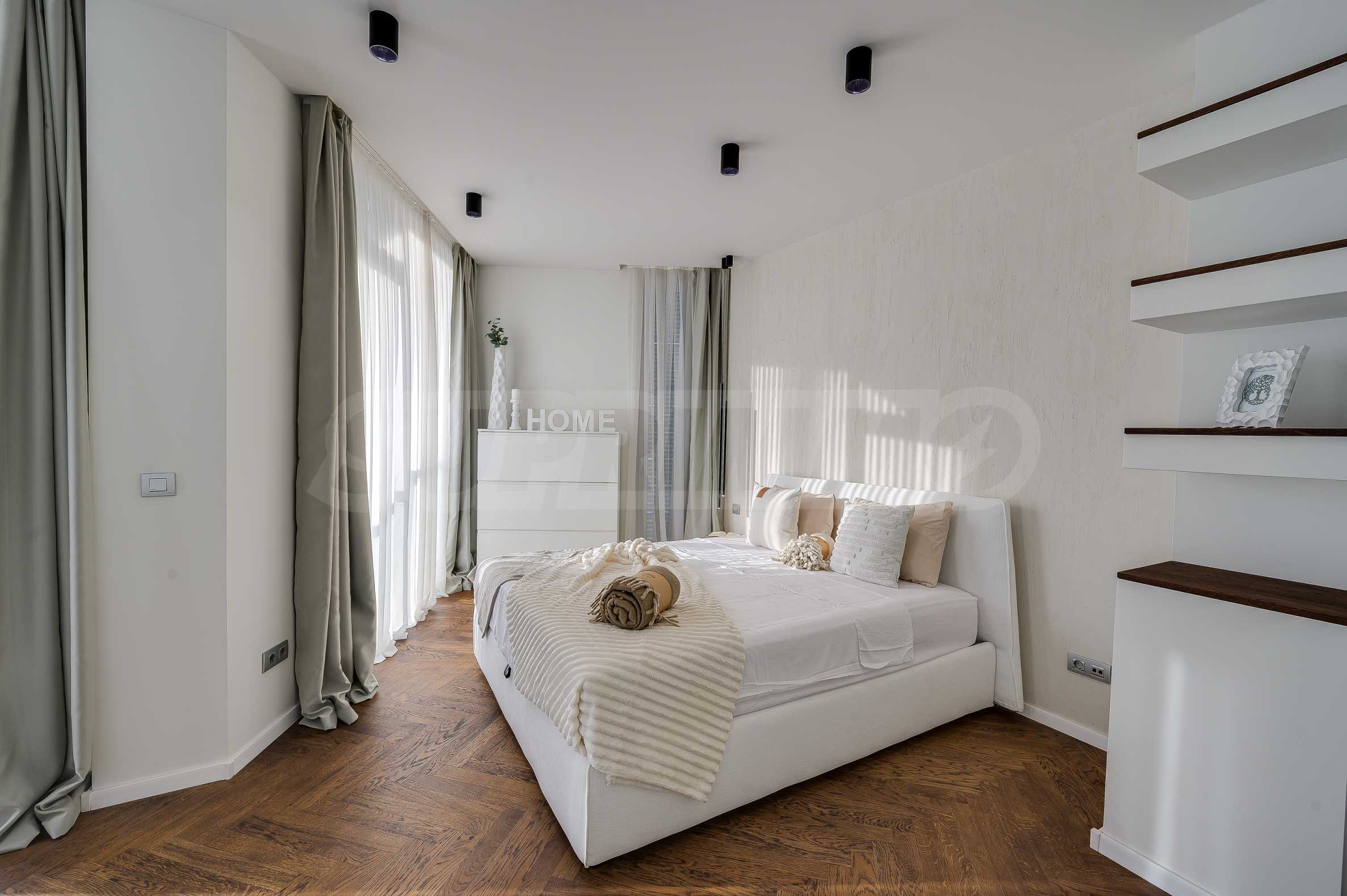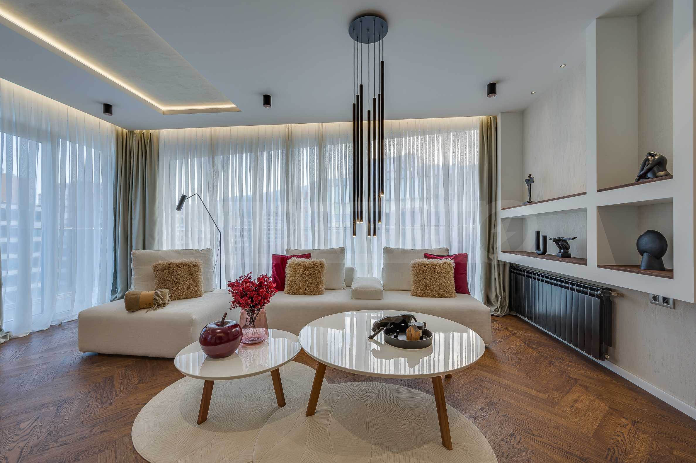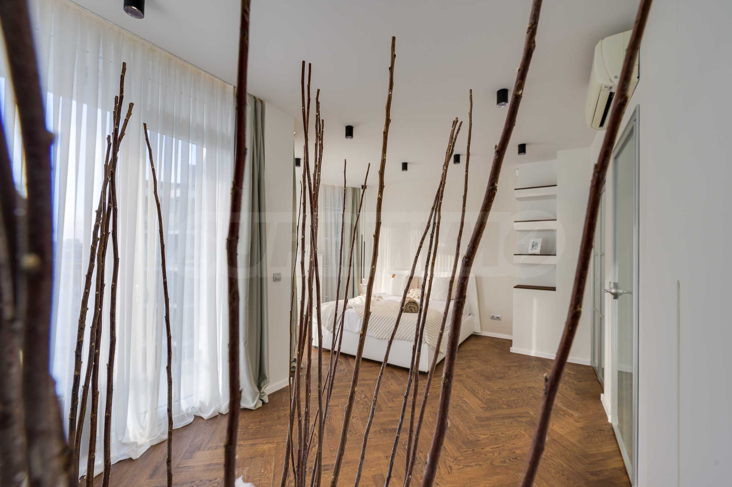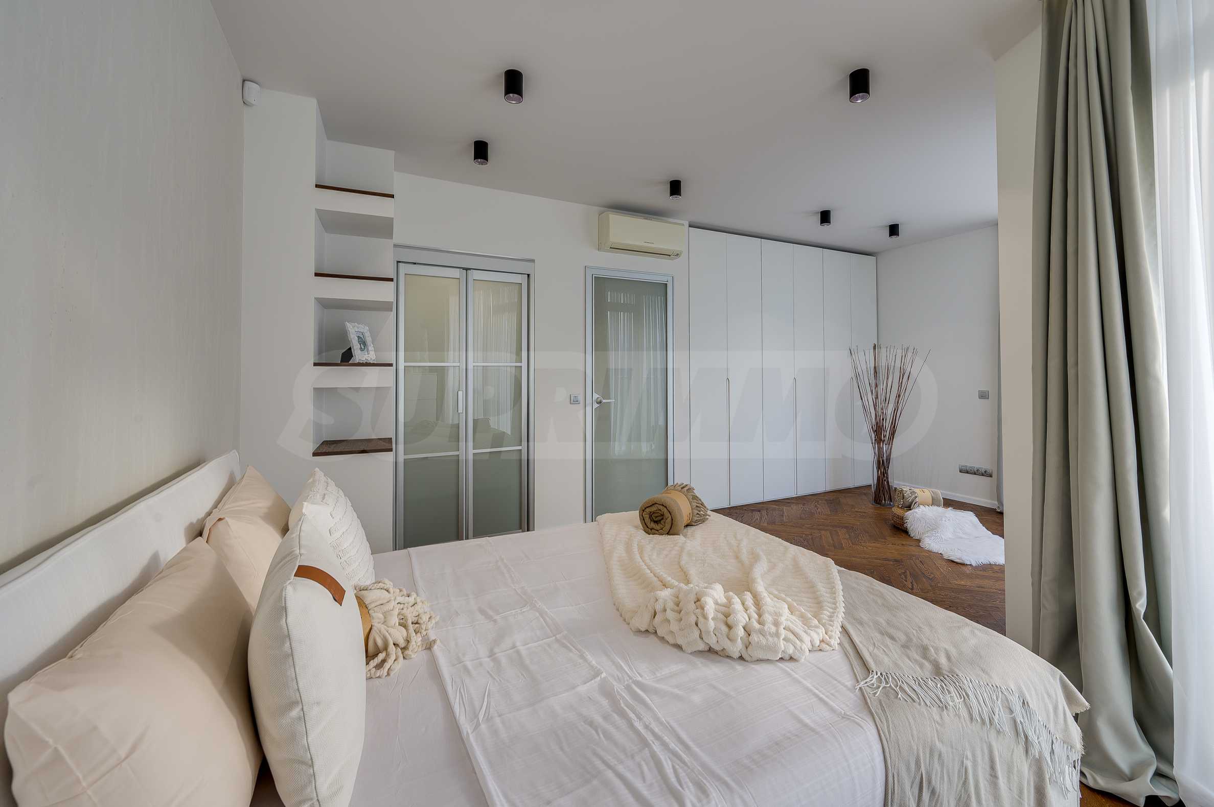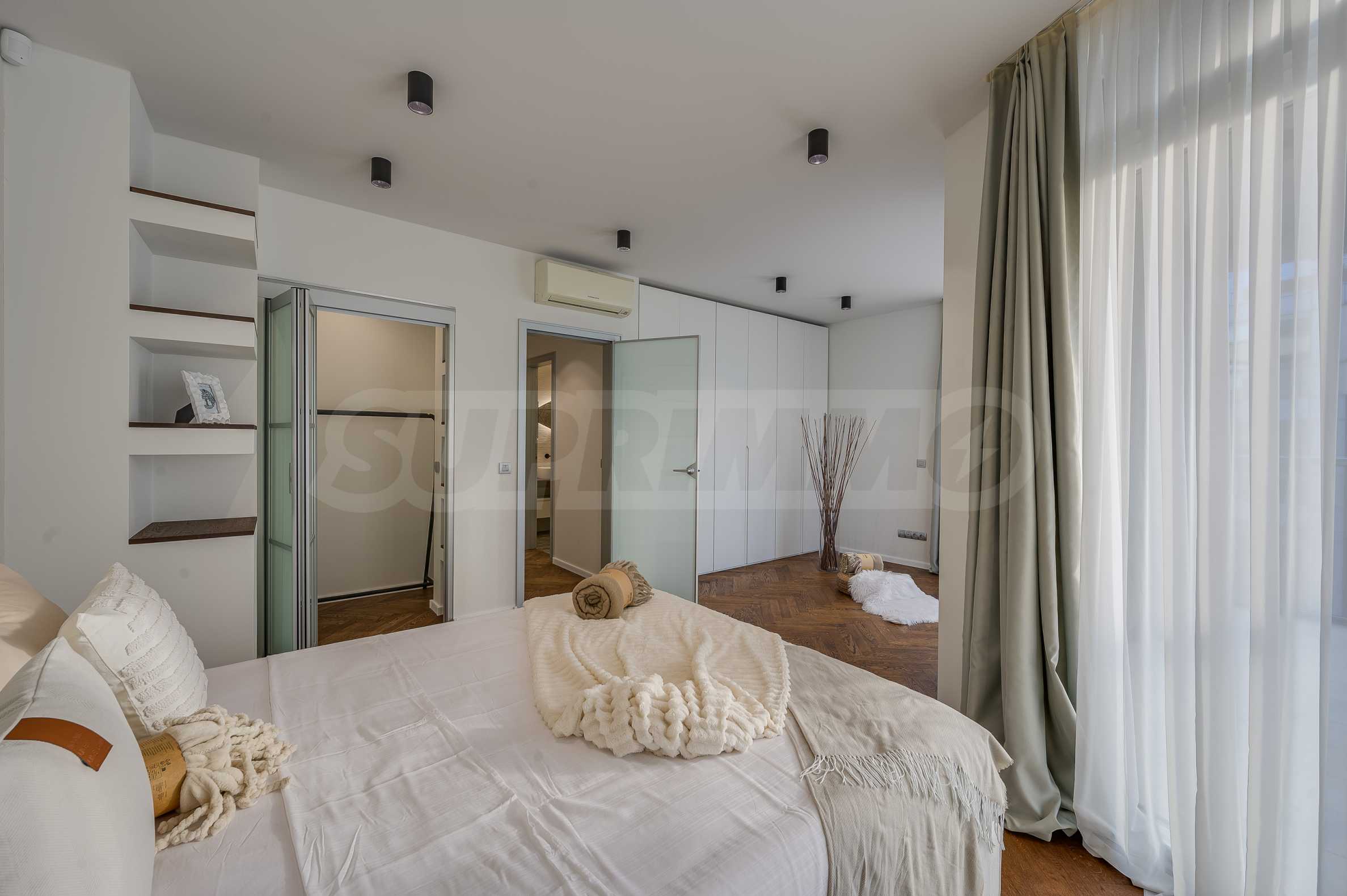 The furnitures include stylish designer Italian furniture, selected black and white appliances, designer lighting and finely selected decorative elements, arranged with attention to every detail and in complete harmony with the overall interior concept. The spacious rooms feature high ceilings and large French windows, which provide an abundance of natural light and reveal impressive views of Vitosha Mountain.