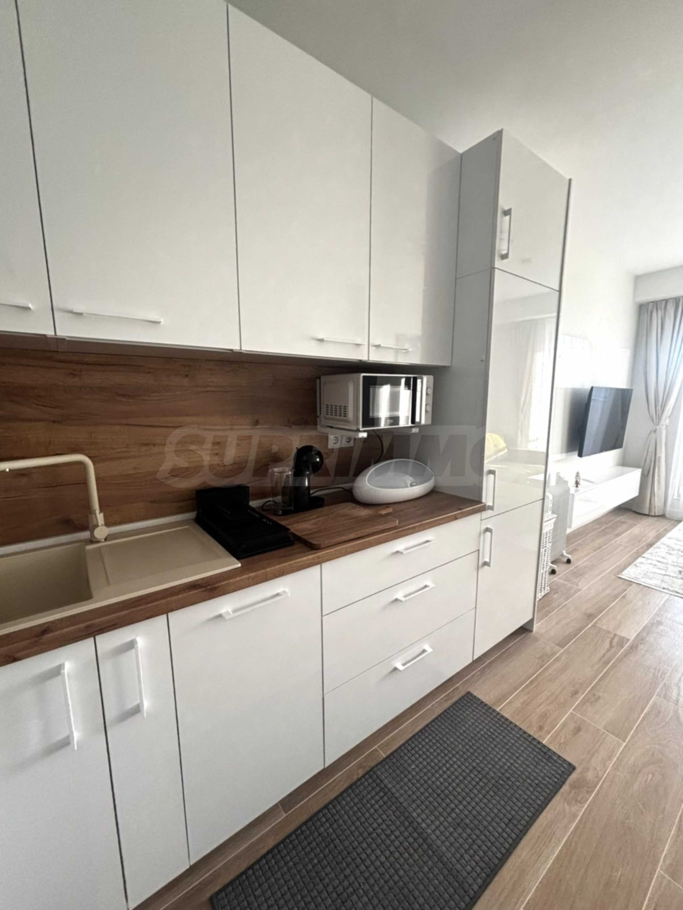 We present for rent a cozy and stylish one-bedroom apartment, located just a 5-minute walk from the seashore, in one of the most preferred and peaceful resort areas - St. St. Constantine and Elena. In the immediate vicinity is a Lidl, a 24-hour supermarket and a bus stop, which makes the property extremely convenient for year-round living.
