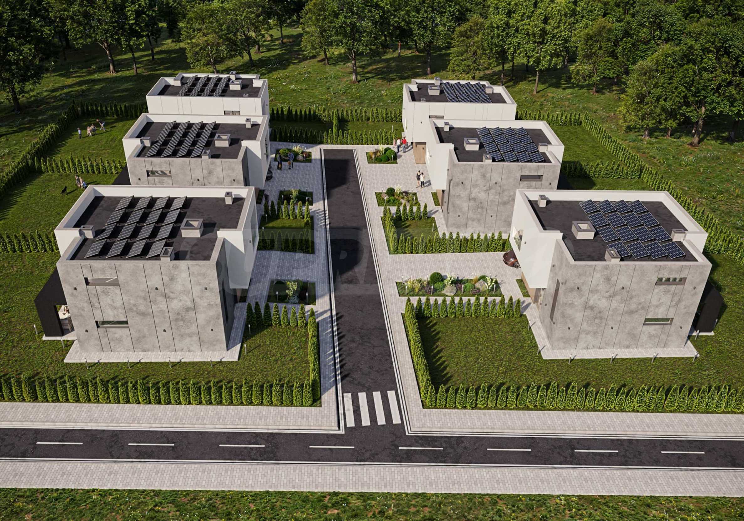 Всяка къща разполага със фотоволтаична централа с мощност 15кW.