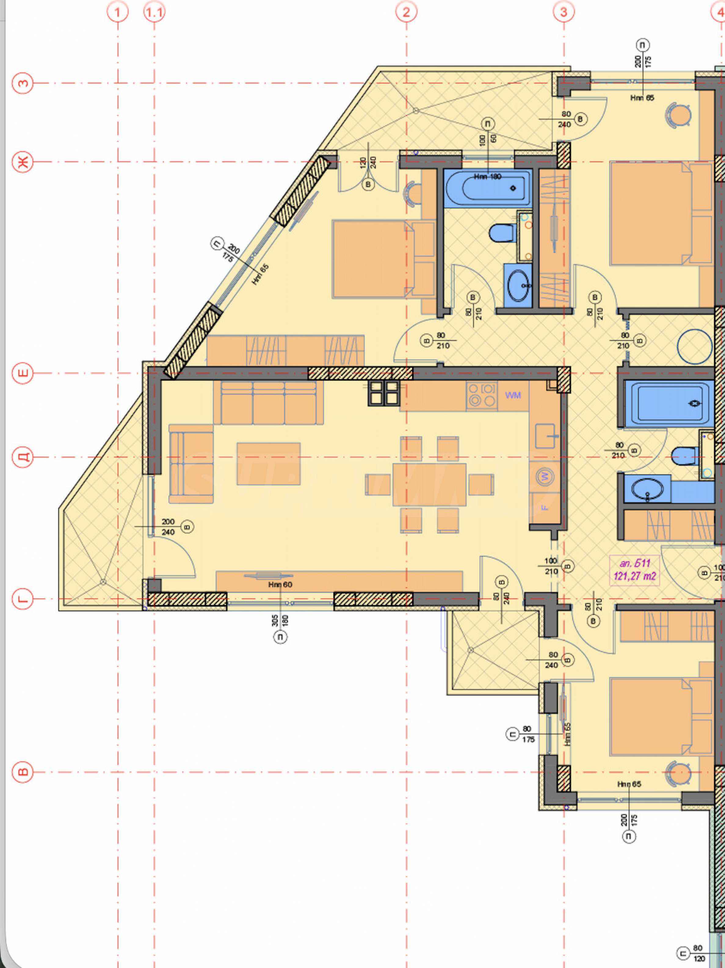 According to the approved architectural project, the apartment has four rooms, a total area of 138.34 sq m, including balconies and adjacent parts.