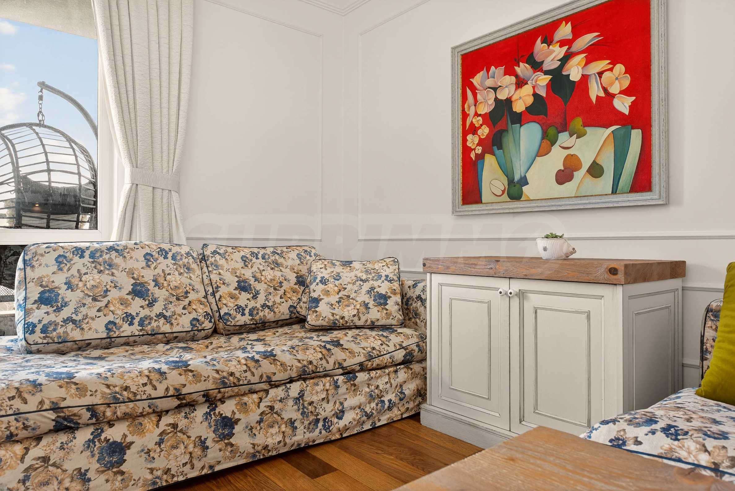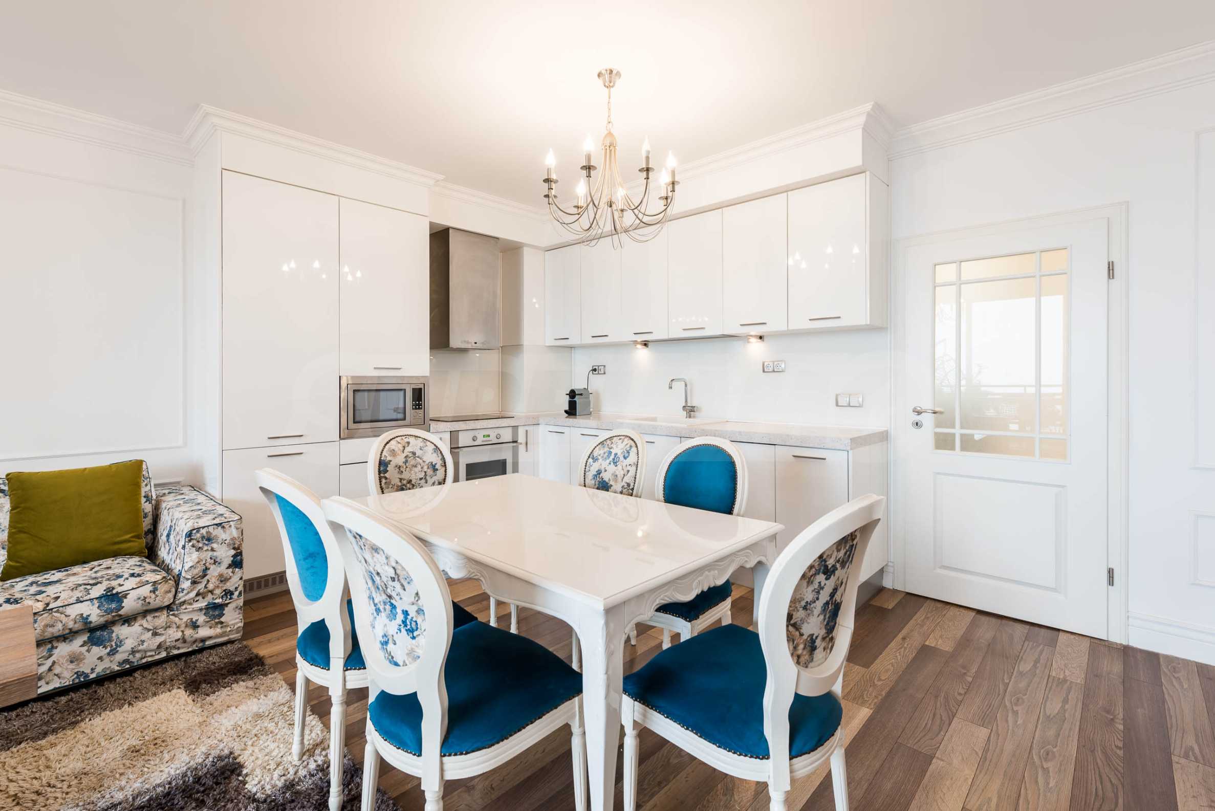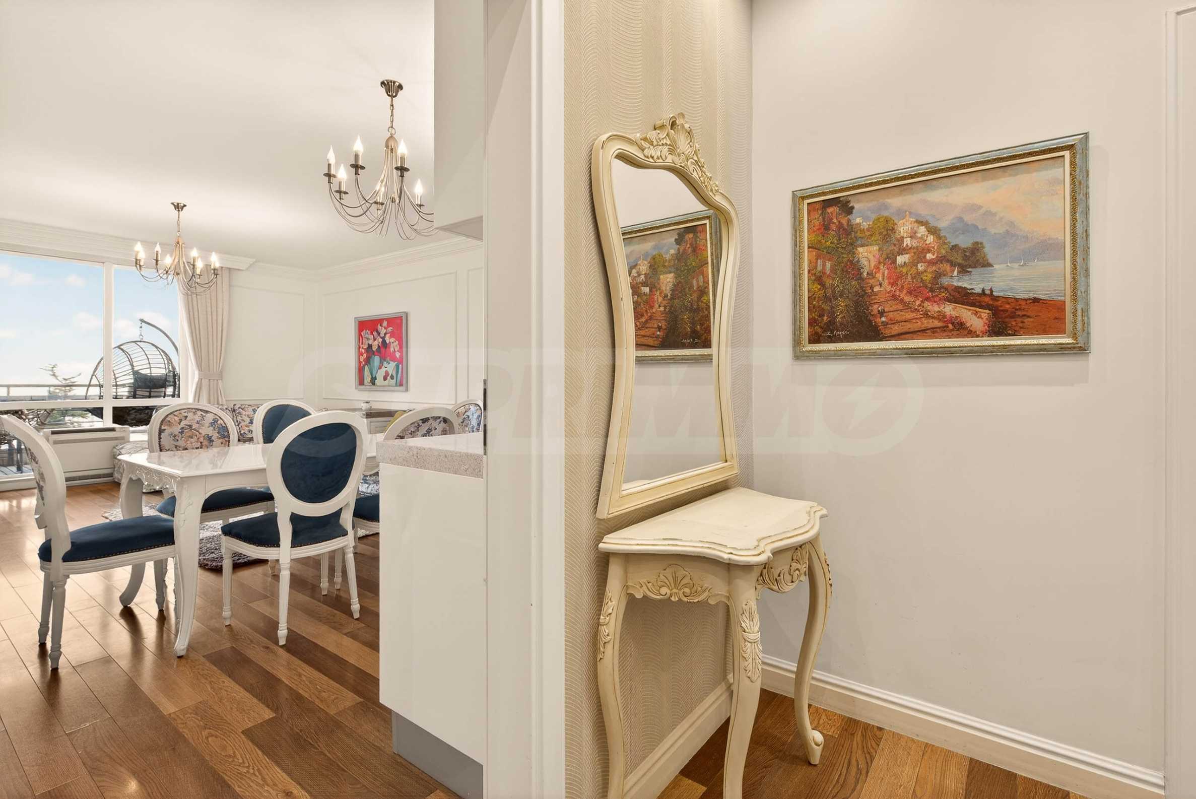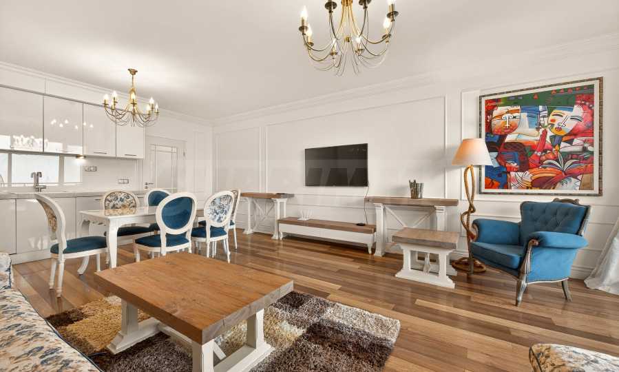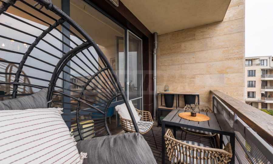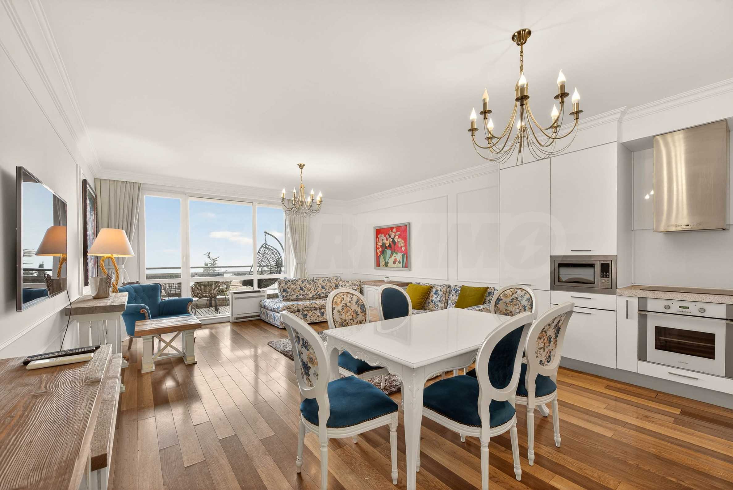 We present an artistic two-bedroom apartment with an unobstructed sea view in the Dolna Traka area. With an excellent location in an area that offers quick and hassle-free access to the center of Varna, the nearby resort complexes St. St. Constantine and Elena and Golden Sands, as well as the Sea Garden park and the city's beaches.