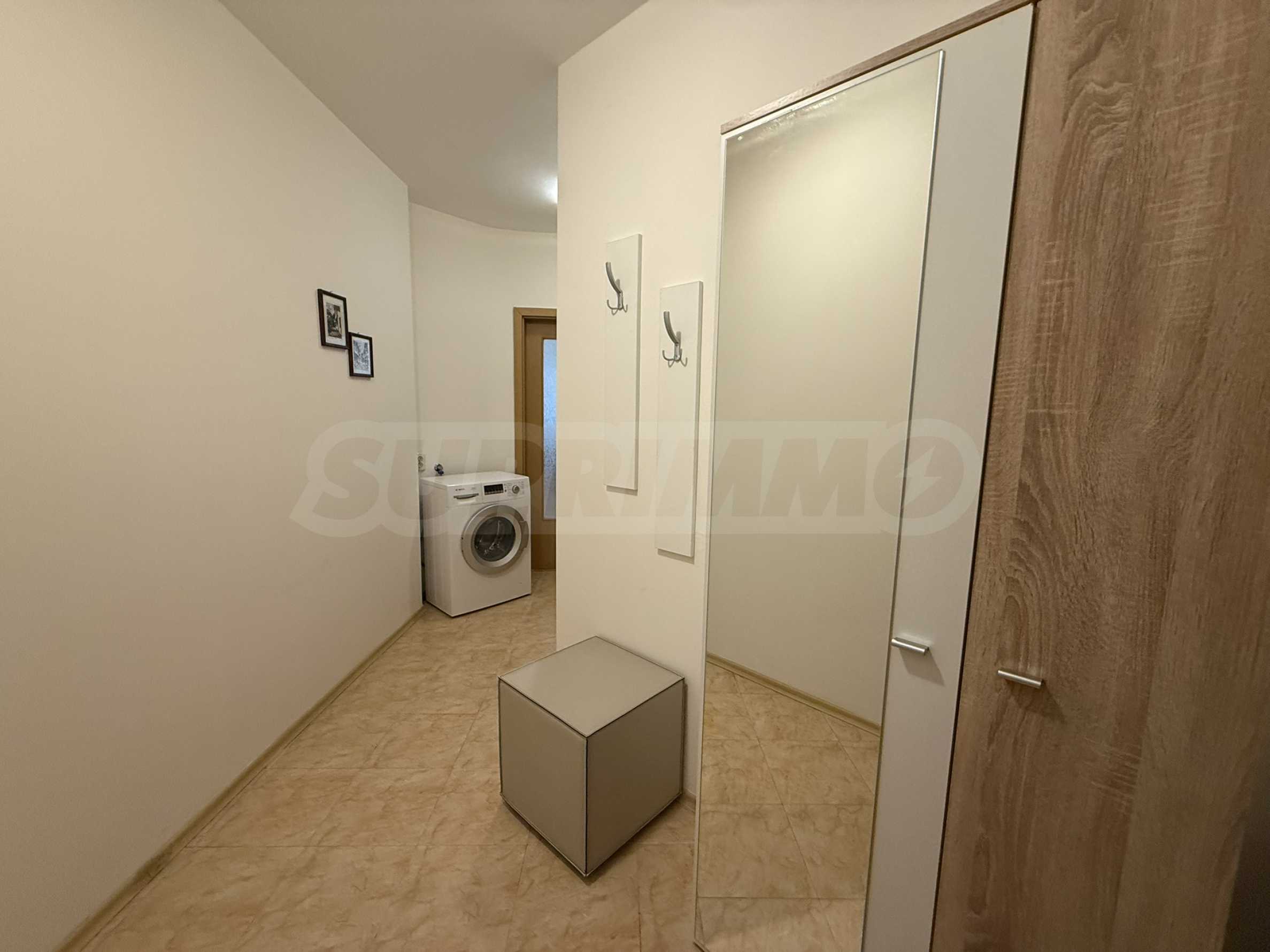 The apartment is comfortably furnished and equipped with everything you need - a built-in kitchen with a stove and dishwasher, a washing machine, the floors are made of laminated parquet and terracotta tiles, and the heating is via air conditioners.