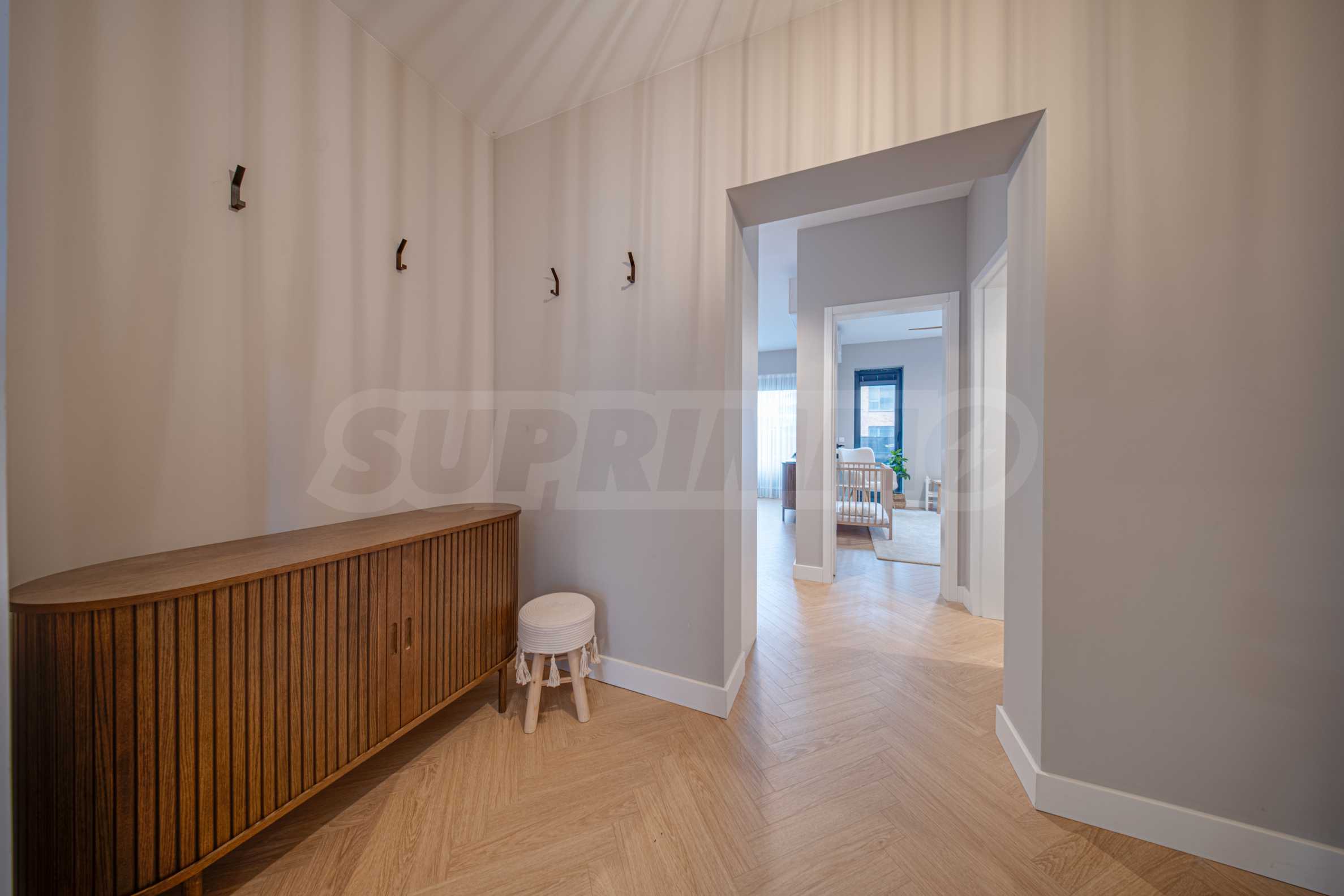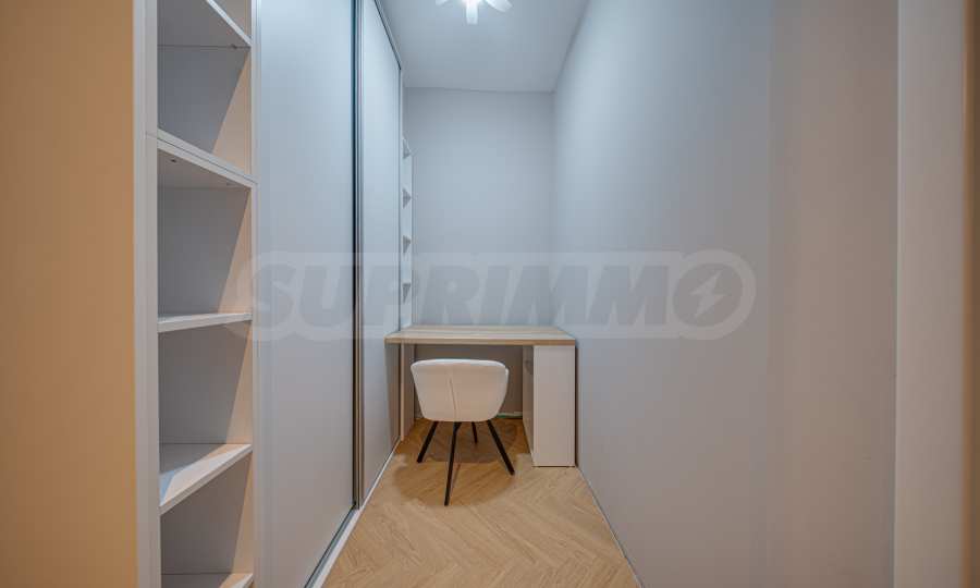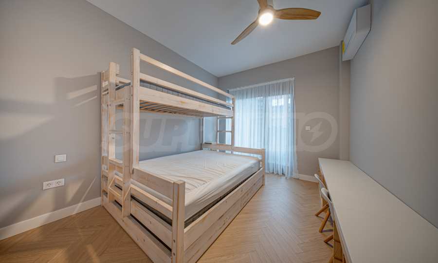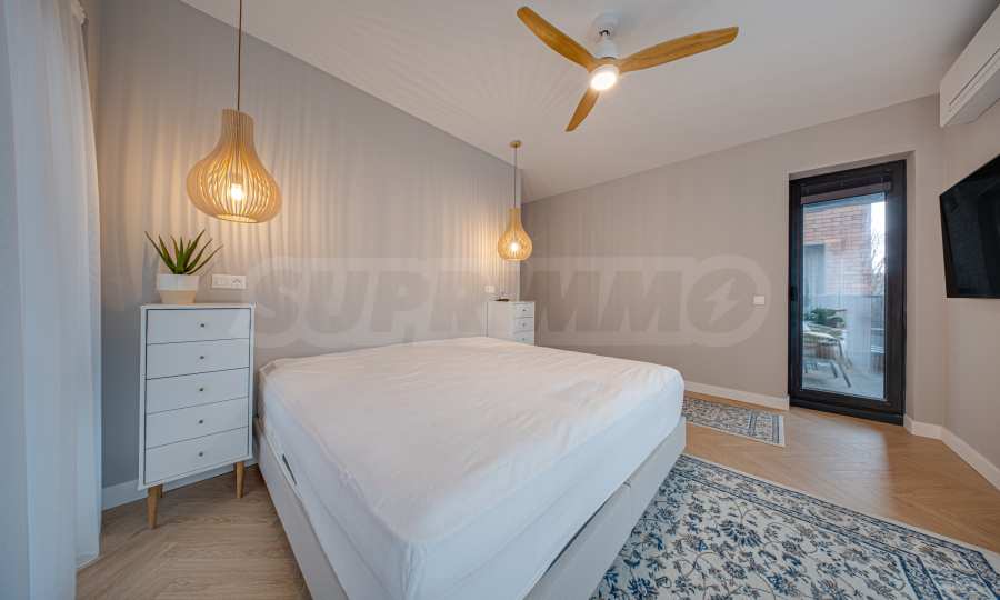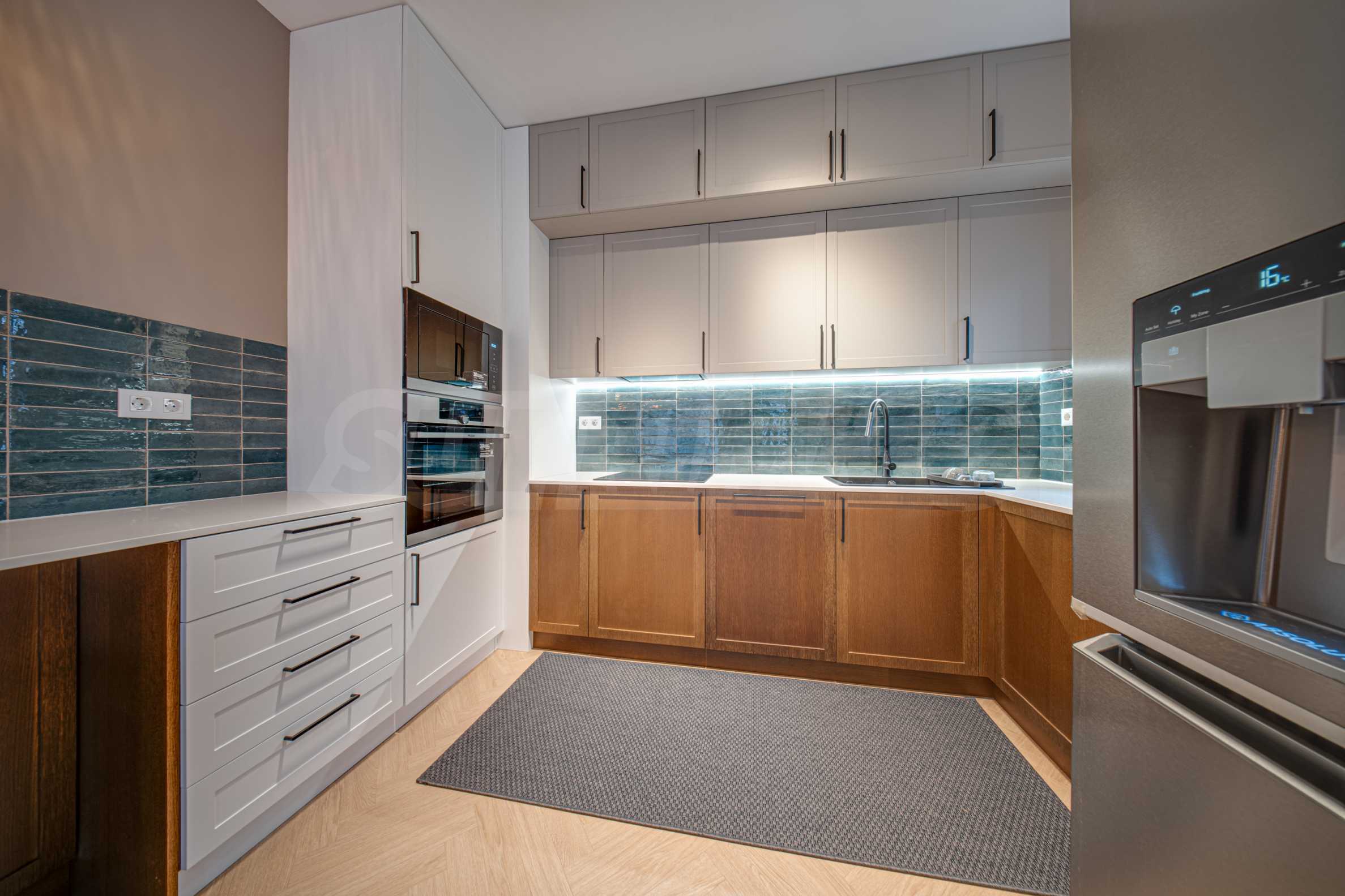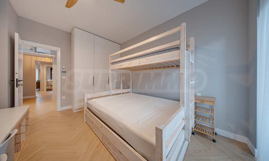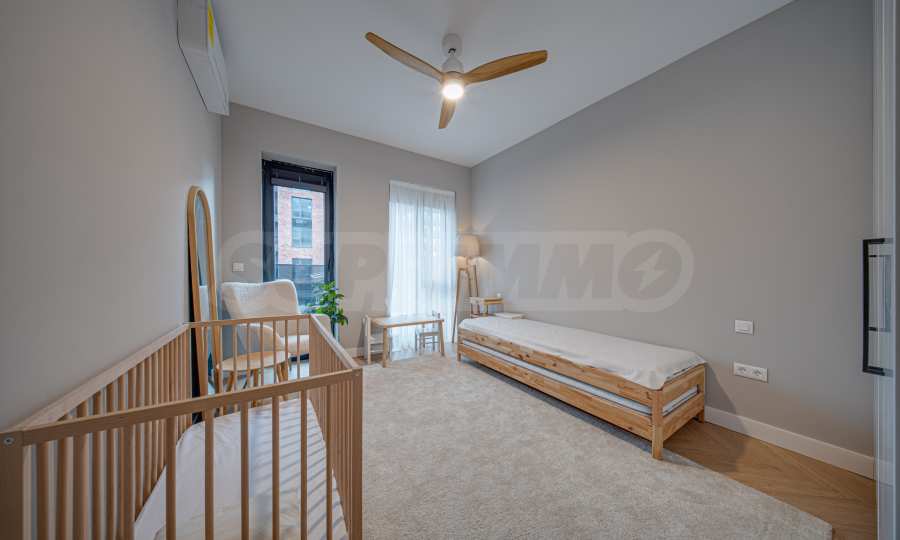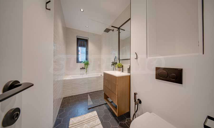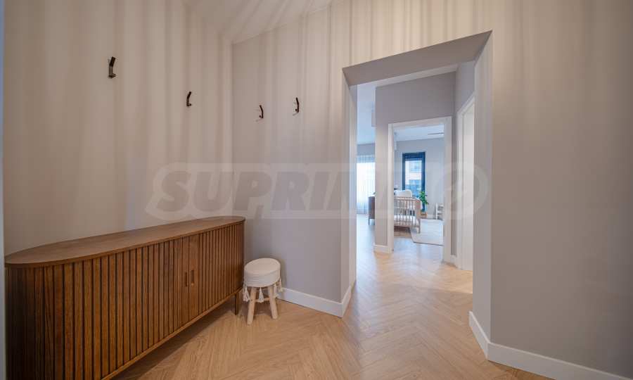 The 162.98 sq m apartment is located on the 2nd floor, overlooking the courtyard. The property is bright, offers a modern look and an interior with clean lines. The large windows contribute to an abundance of space and light, and the quality materials and refined furniture - to coziness and elegance. Heating and cooling are solved by underfloor heating powered by a heat pump, with air conditioners additionally installed.