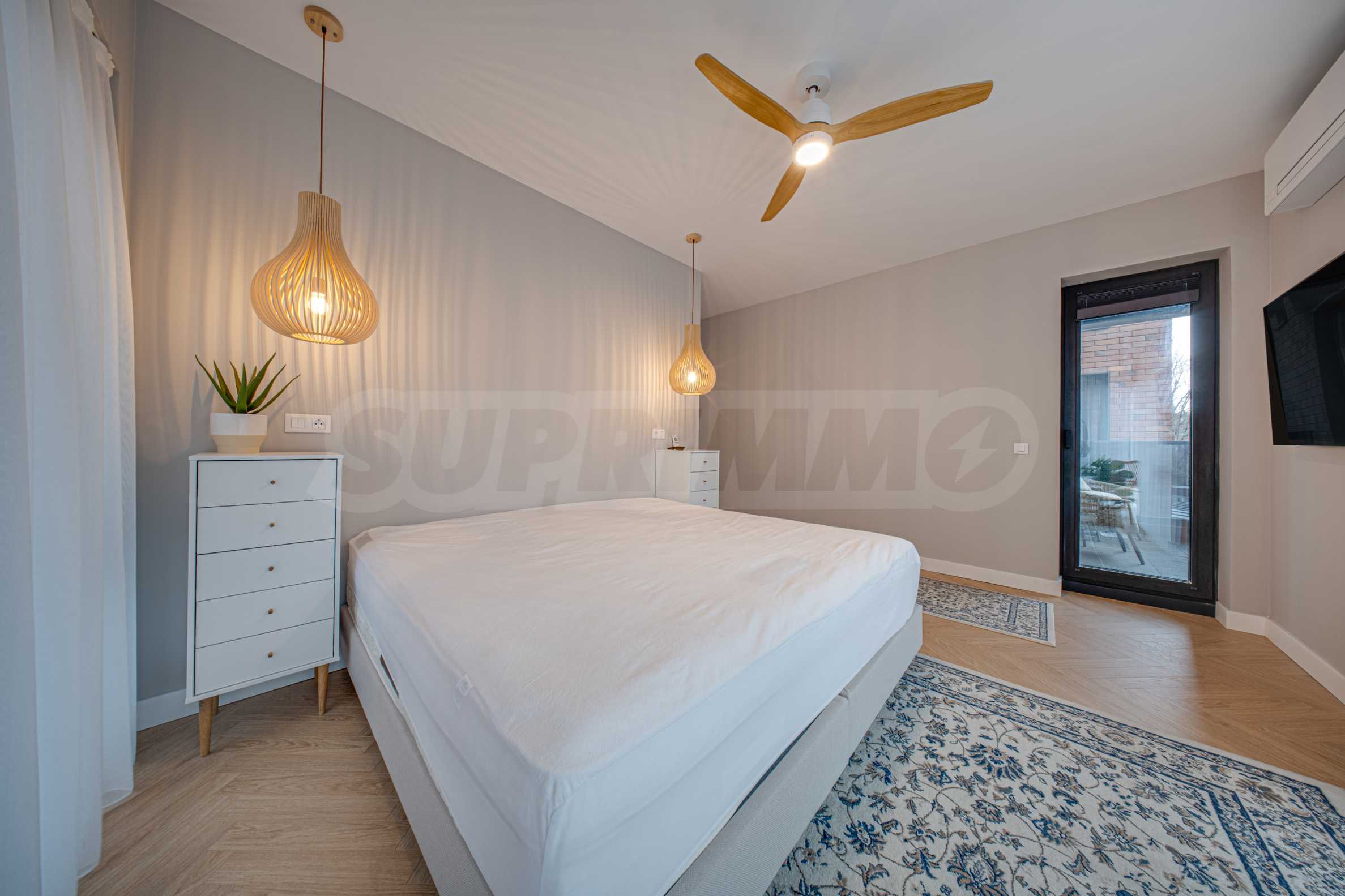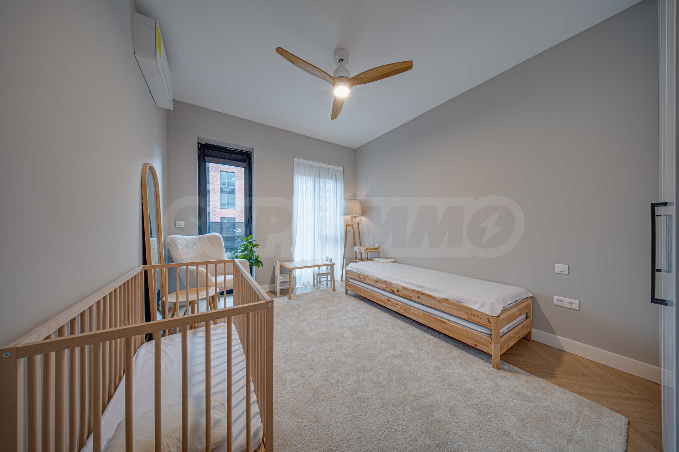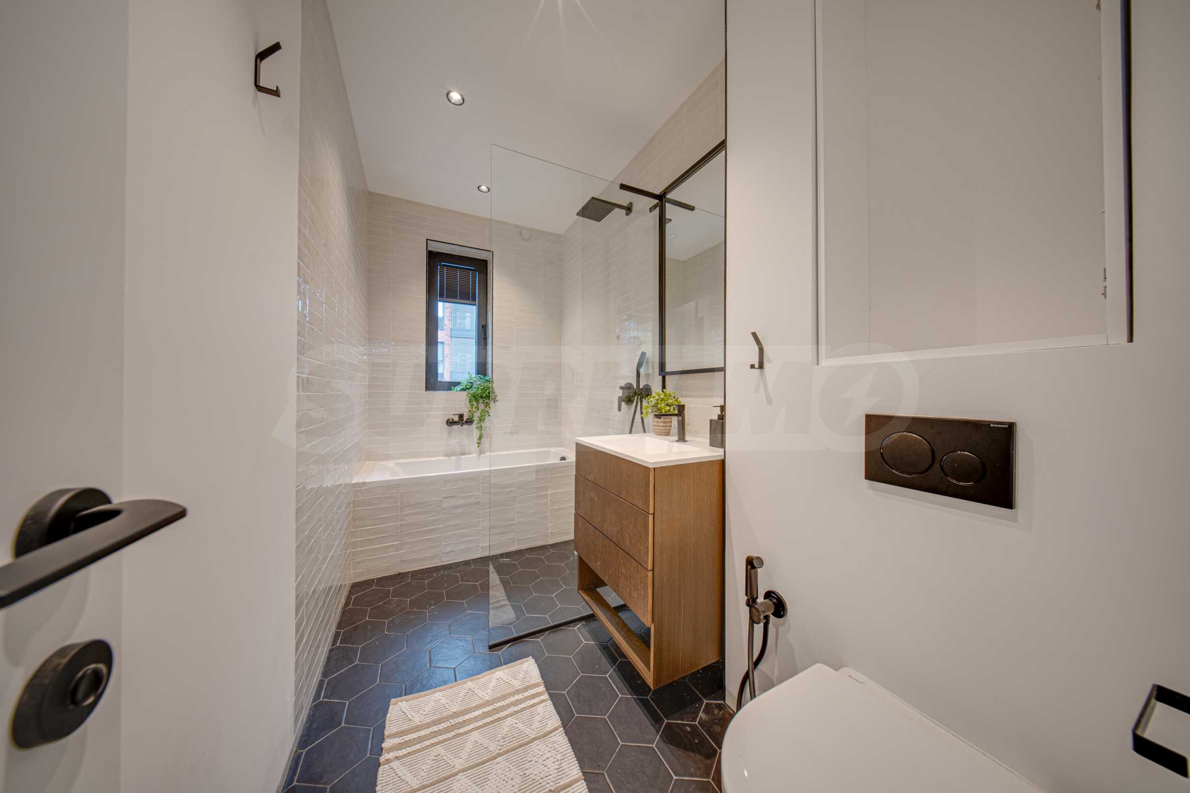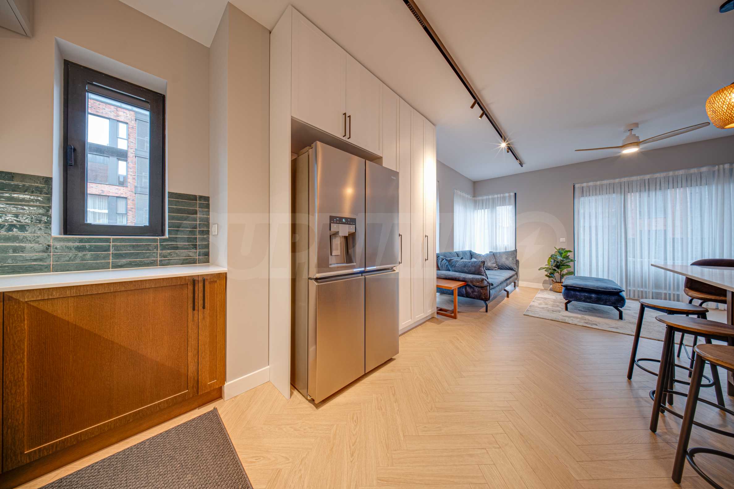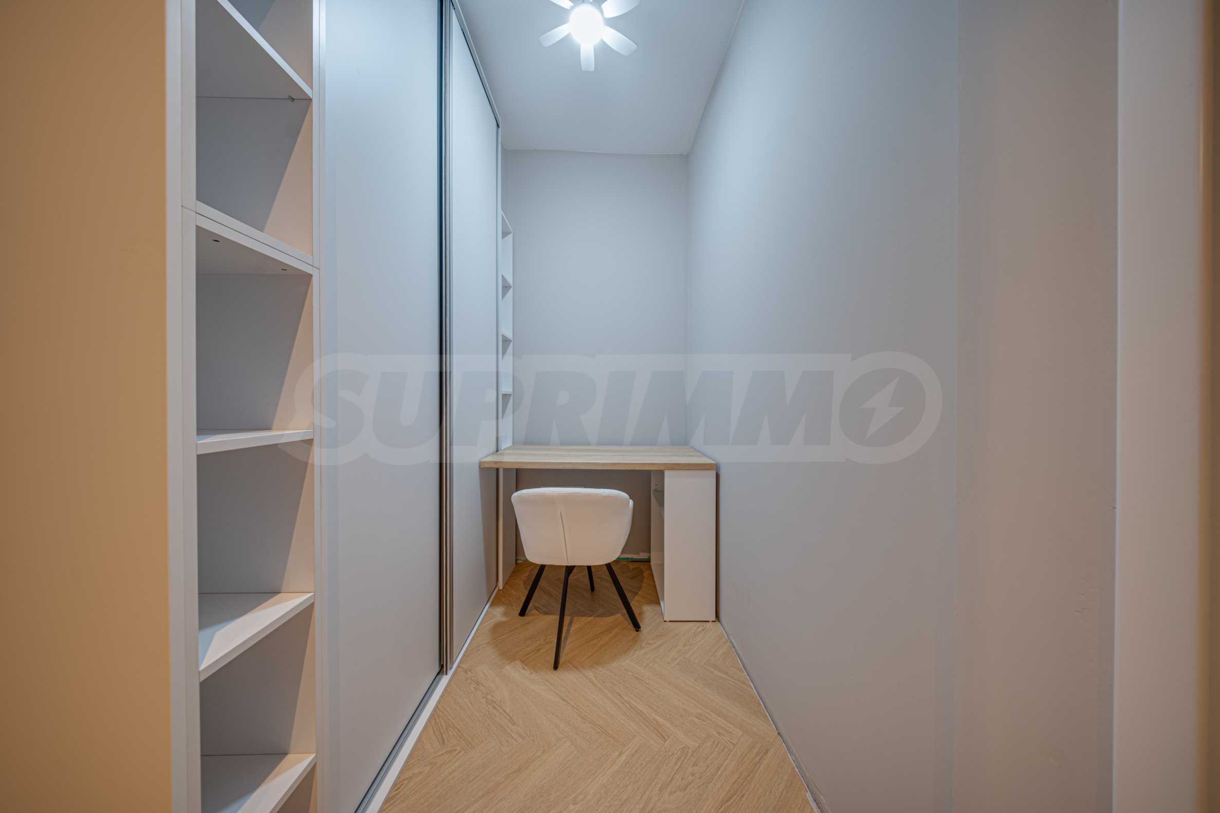 The 162.98 sq m apartment is located on the 2nd floor, overlooking the courtyard. The property is bright, offers a modern look and an interior with clean lines. The large windows contribute to an abundance of space and light, and the quality materials and refined furniture - to coziness and elegance. Heating and cooling are solved by underfloor heating powered by a heat pump, with air conditioners additionally installed.