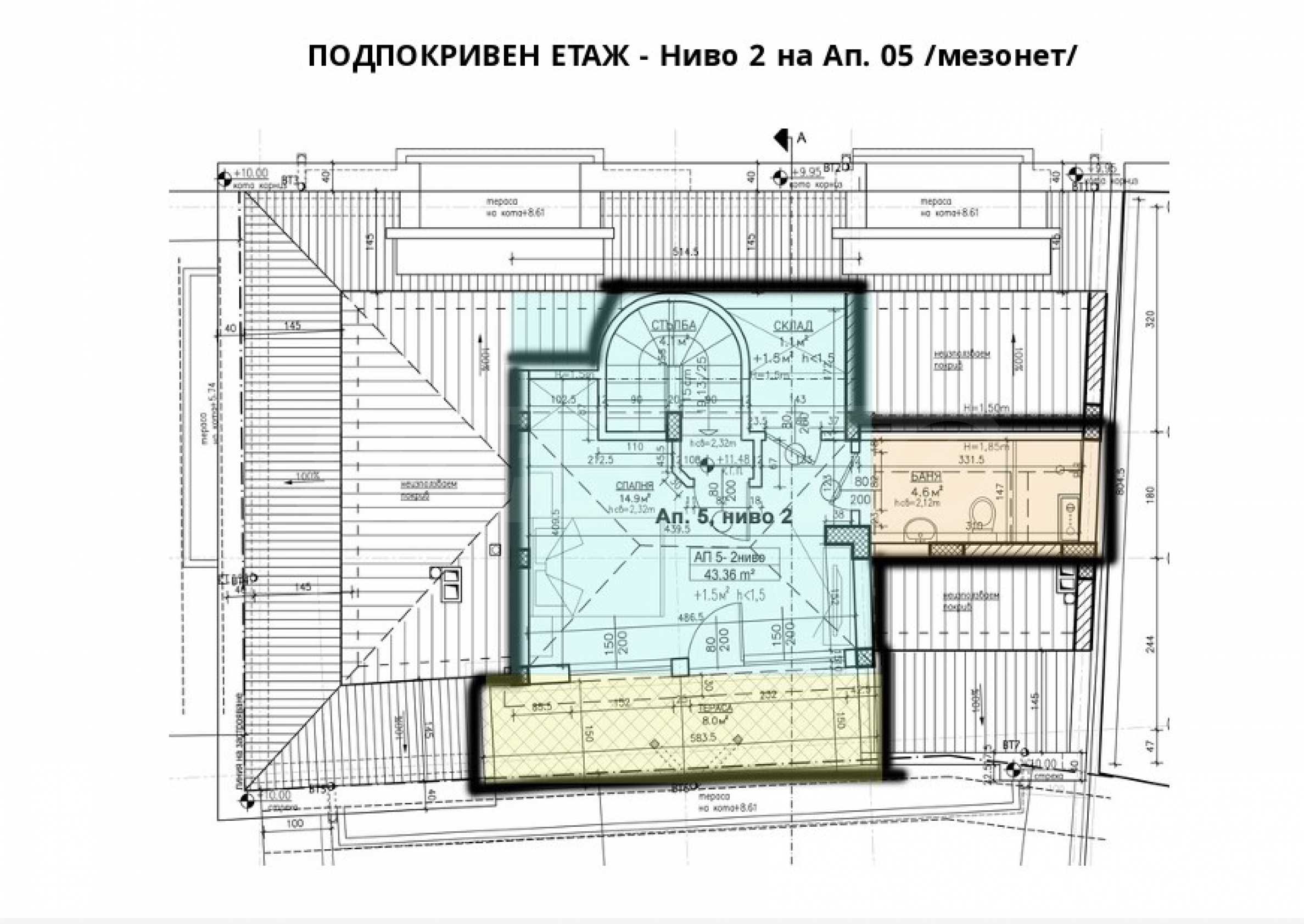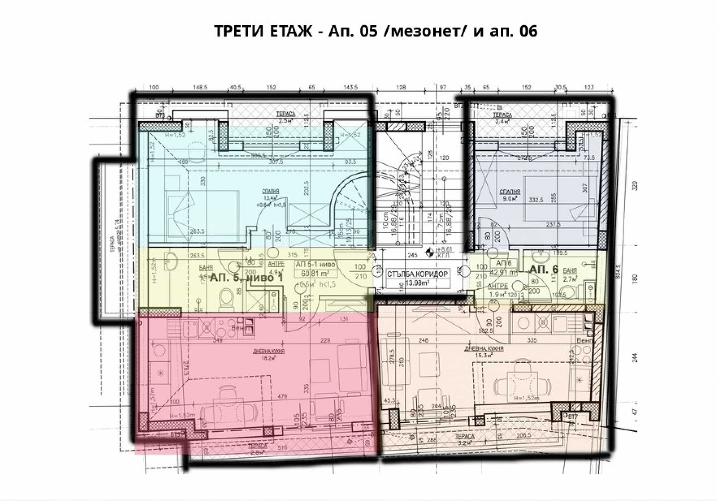 The offer is for the following property: Three-bedroom maisonette, floors 3 and 4 with a total area of 134.04 m2., built-up area 104.17 and an adjacent warehouse.
